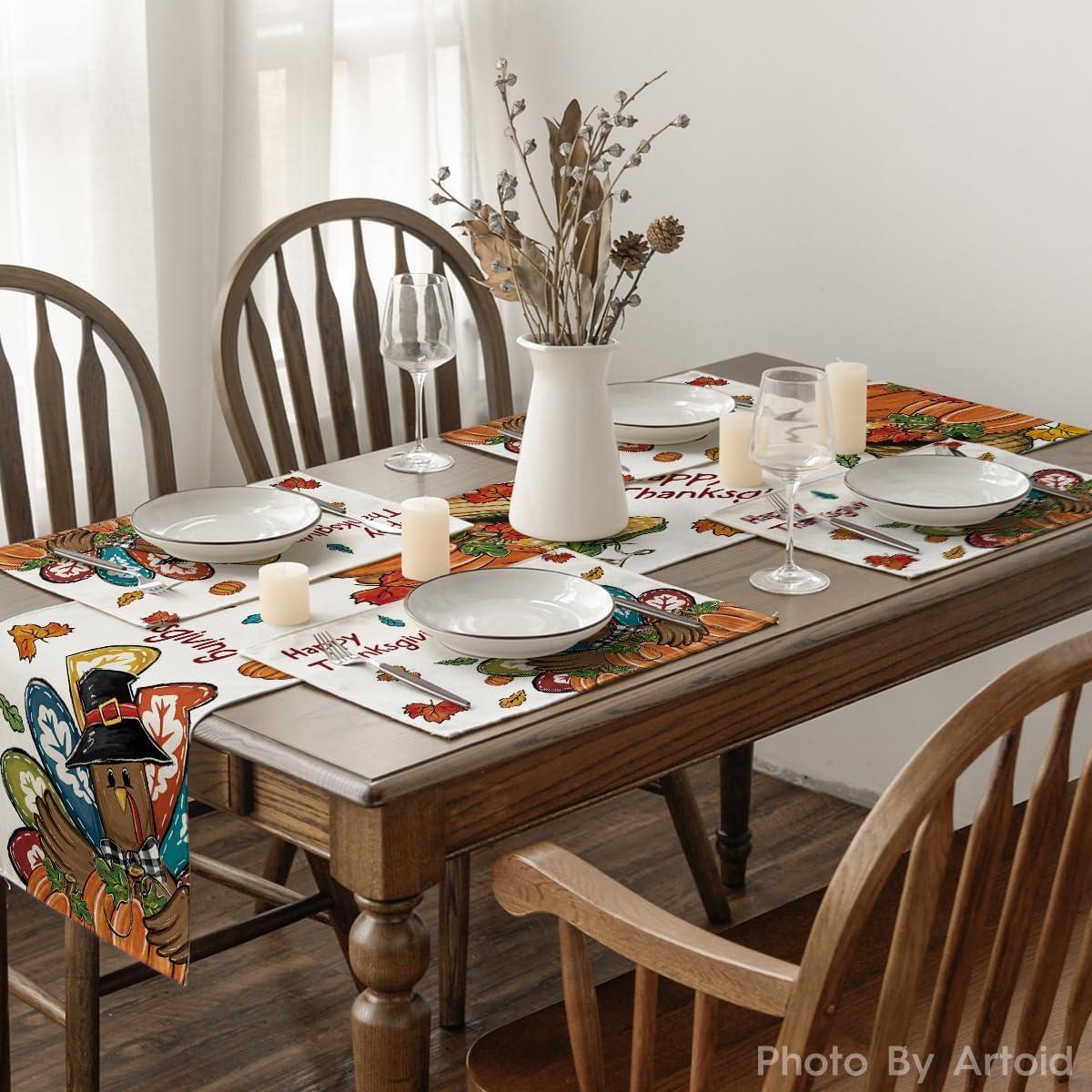 Artoid Mode Turkey Happy Thanksgiving Placemats Set of 4, 12×18 Inch Seasonal Table Mats for Party Kitchen Dining Decoration