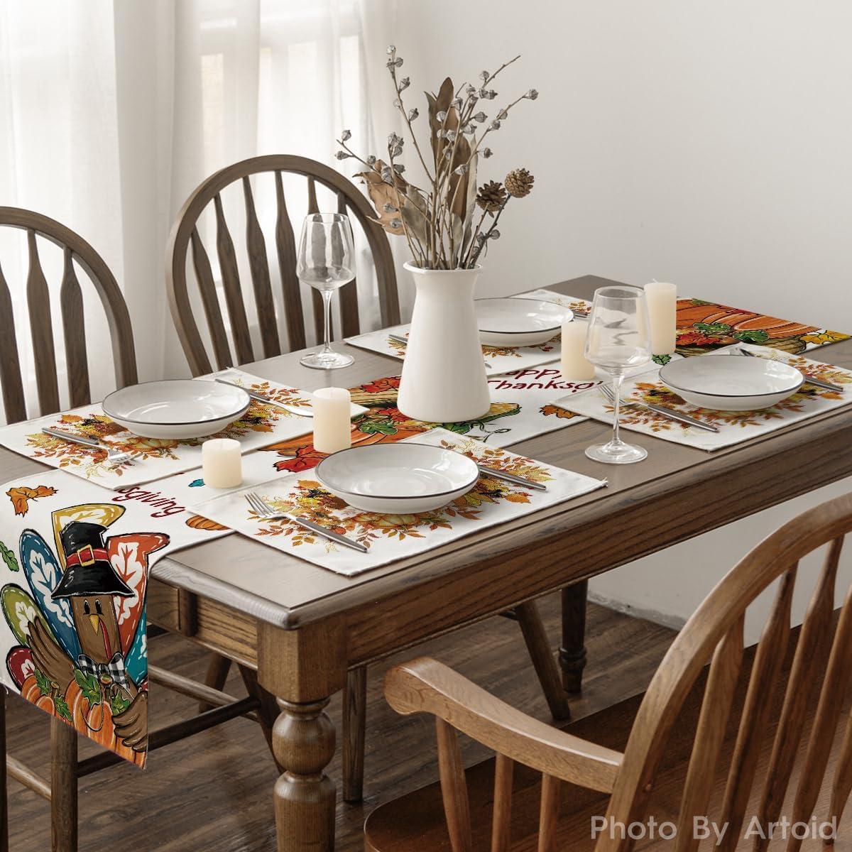 Artoid Mode Turkey Harvest Thanksgiving Placemats Set of 4, 12×18 Inch Seasonal Table Mats for Party Kitchen Dining Decoration