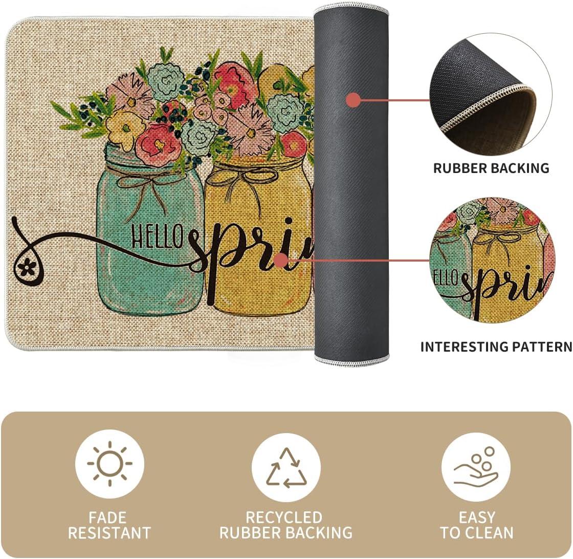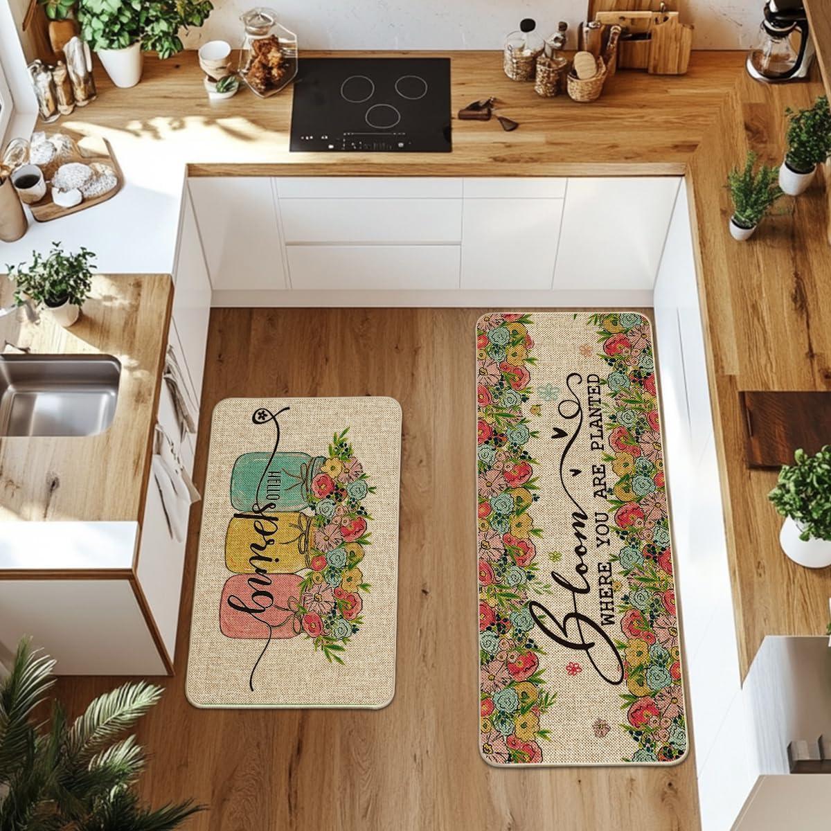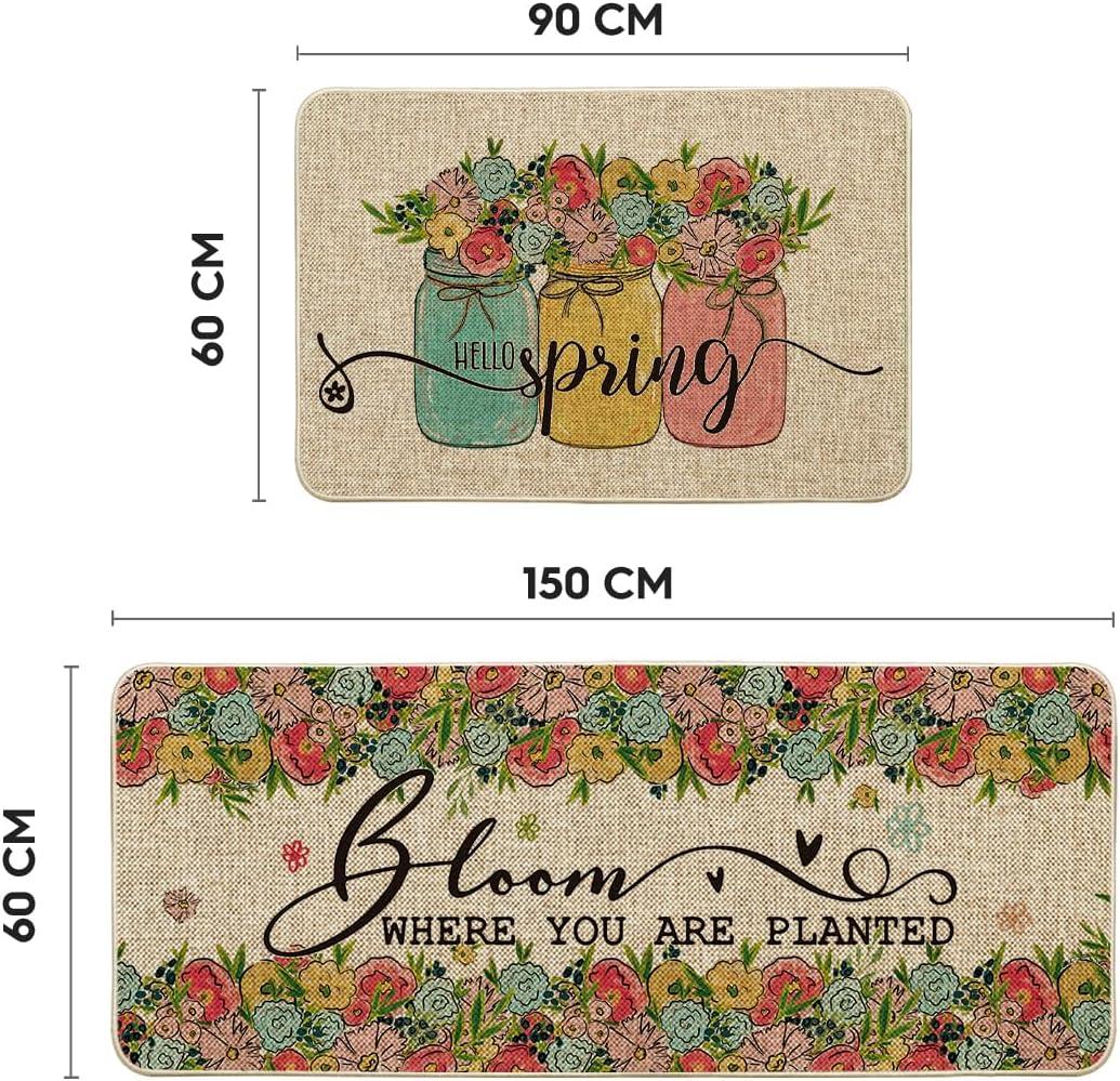 Artoid Mode Vases Flowers Hello Spring Kitchen Mats Set of 2, Home Decor Low-Profile Kitchen Rugs for Floor – 17×29 and 17×47 Inch(Beige)