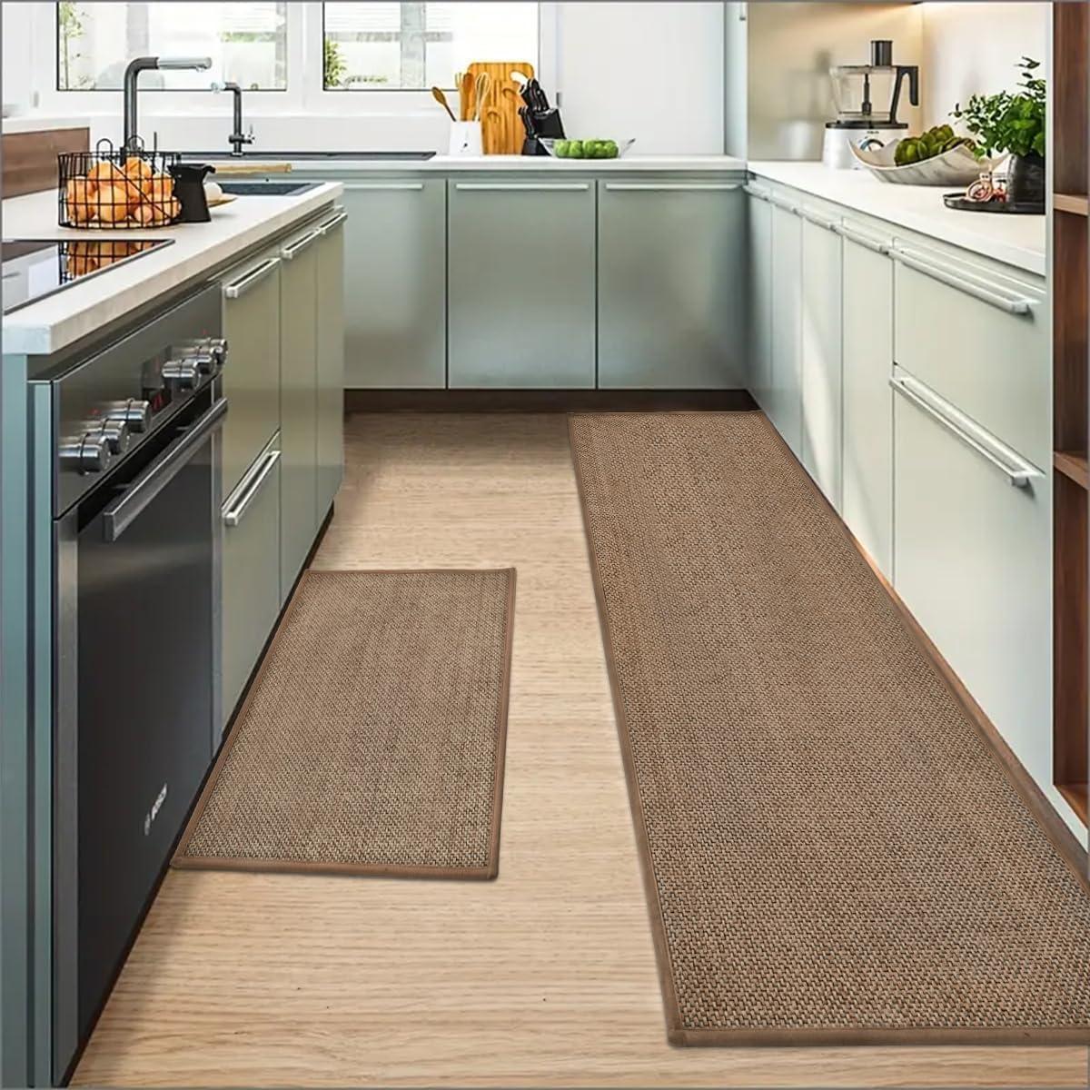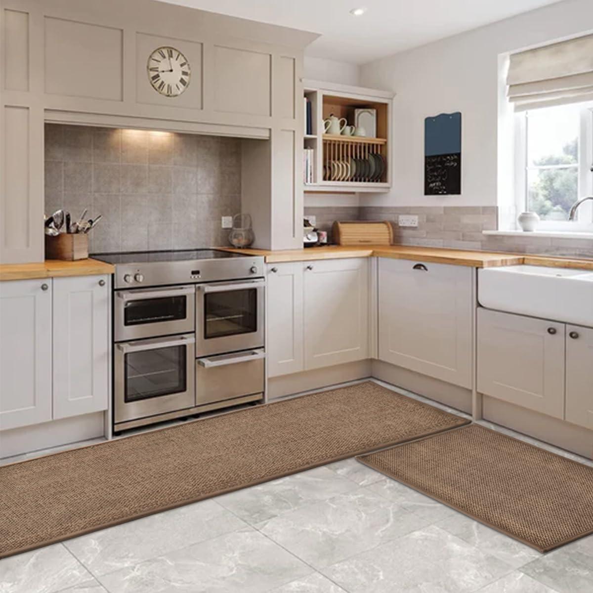 NO-SLIP KITCHEN MAT: Open rug fully and place on even, flat, dry floor. The super non-slip rubber backing provides safety for your family, It's light and the grip effect can keep the kitchen mat fixed and non-slip during use.