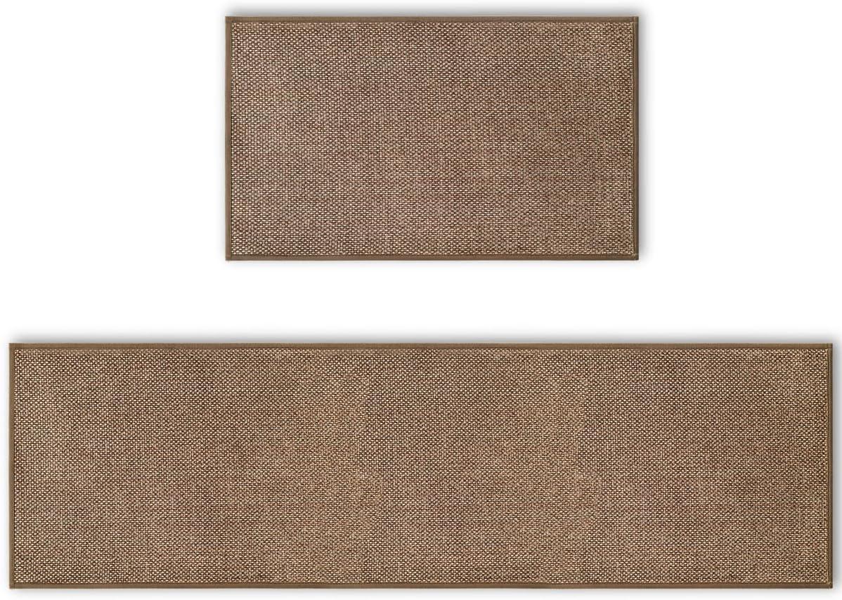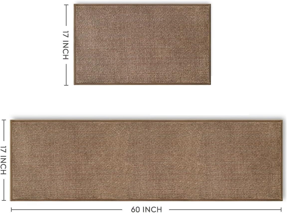 Artoid Mode Washable Non Slip Kitchen Rugs and Mats Set of 2, Rubber Backing Absorbent Kitchen Mats for Floor Front of Sink – 17×29 and 17×47 Inch(Coffee)
