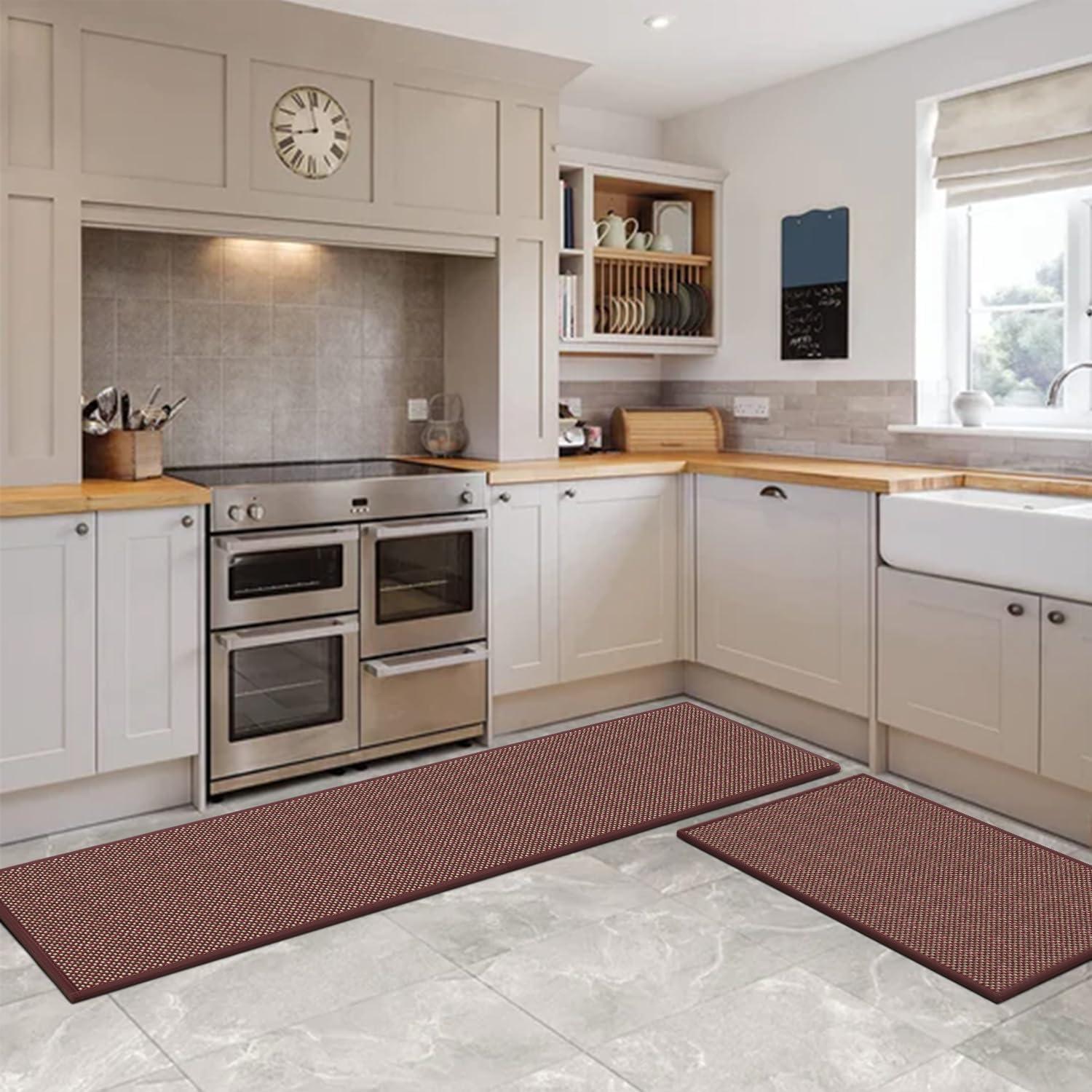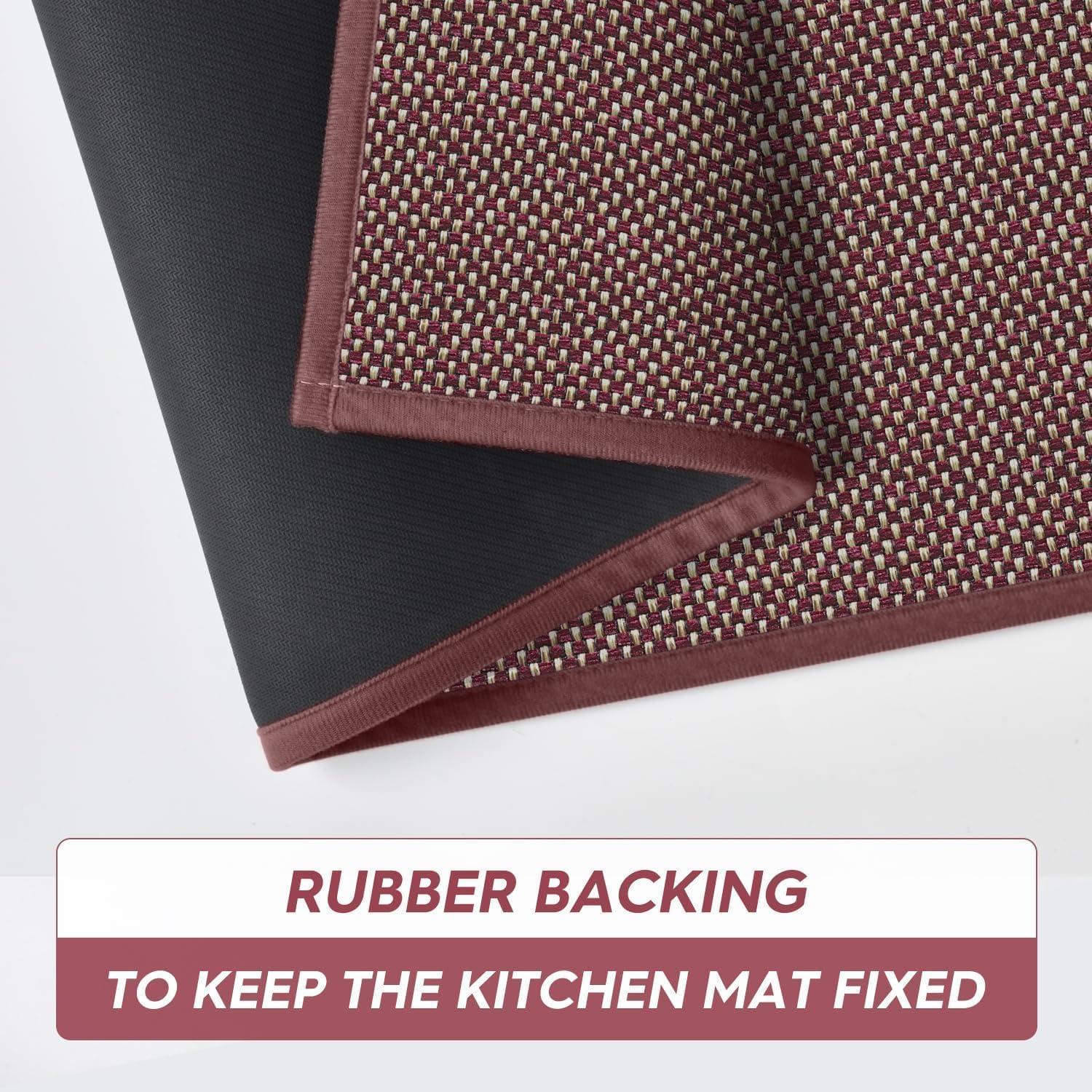 NO-SLIP KITCHEN MAT: Open rug fully and place on even, flat, dry floor. The super non-slip rubber backing provides safety for your family, It's light and the grip effect can keep the kitchen mat fixed and non-slip during use.