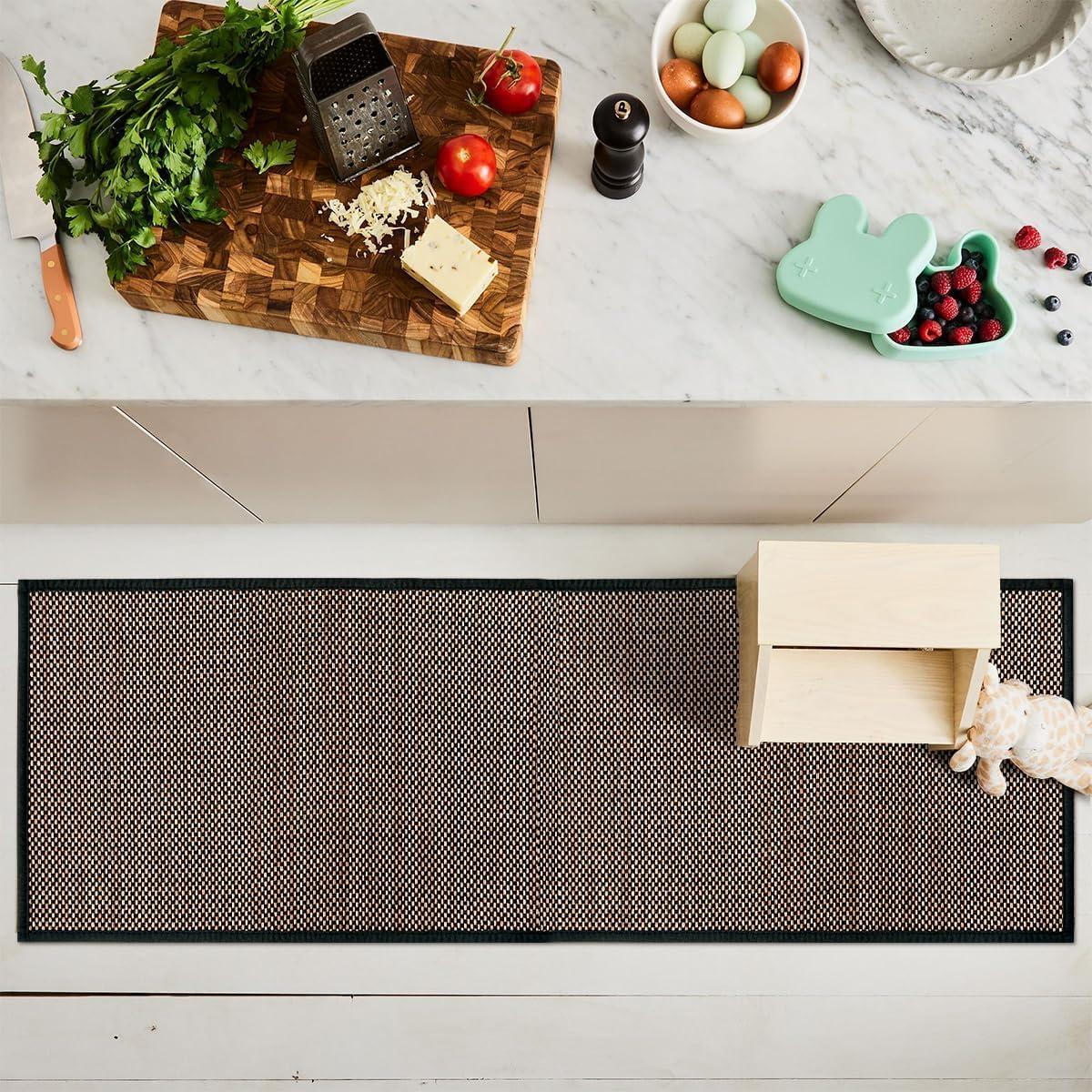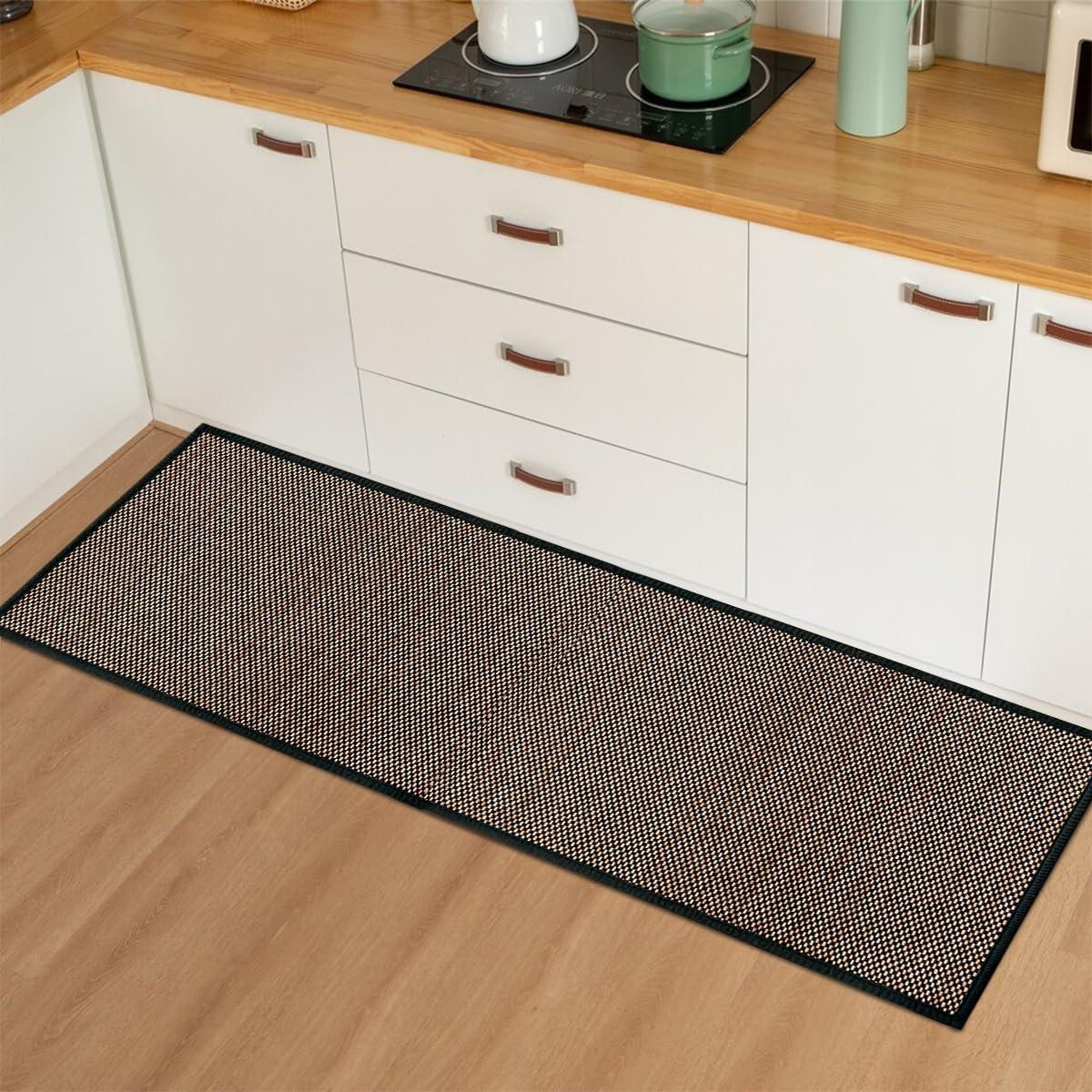 RUGS FOR KITCHEN FLOOR: The surface of the kitchen mat is chenille, and the tight edging makes this carpet look more elegant, The premium tightly woven fabric prevents pets from scratching, convenient storage and beautiful kitchen decoration.