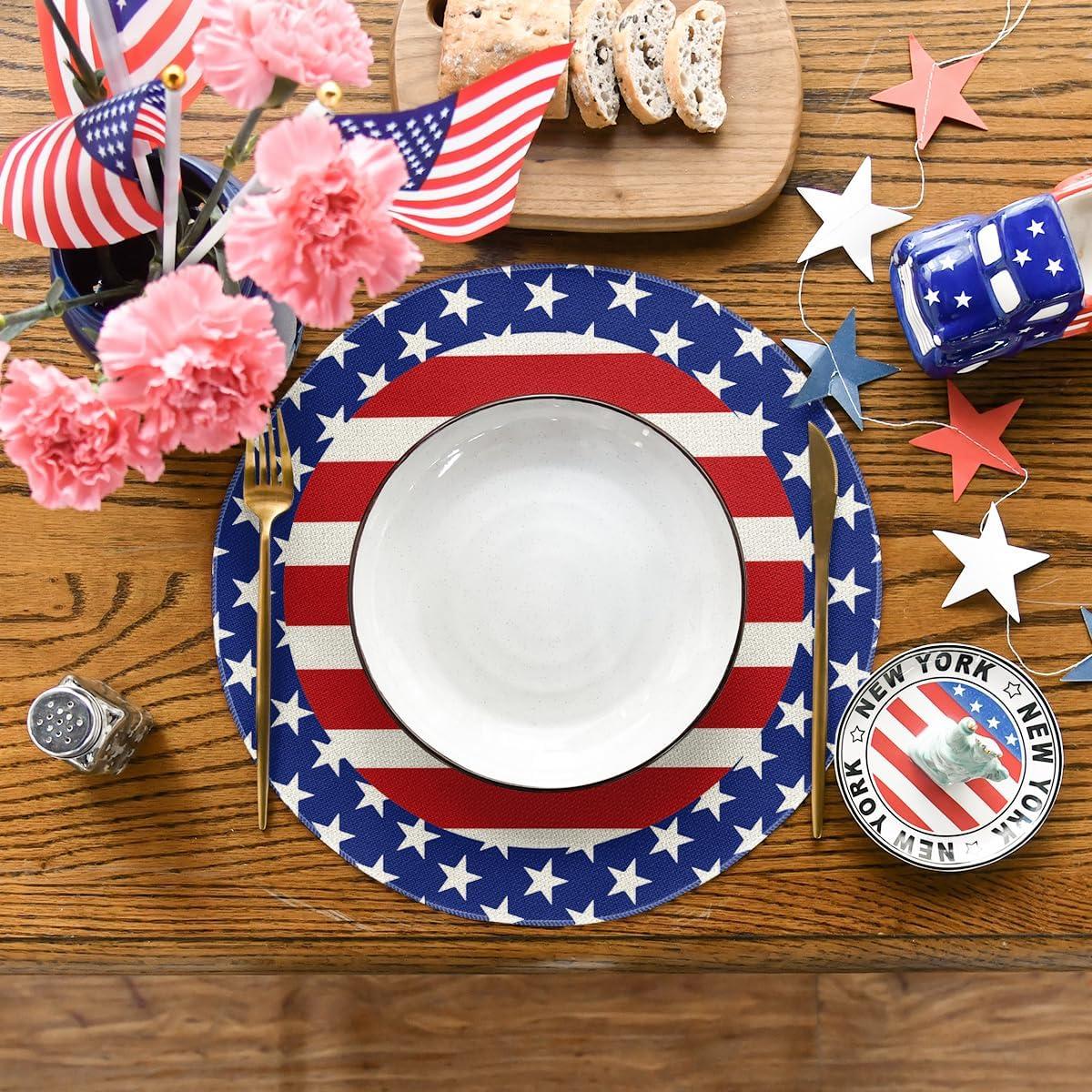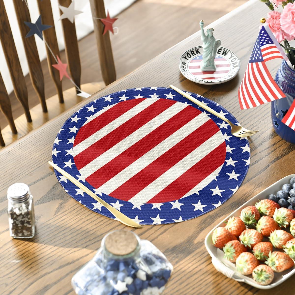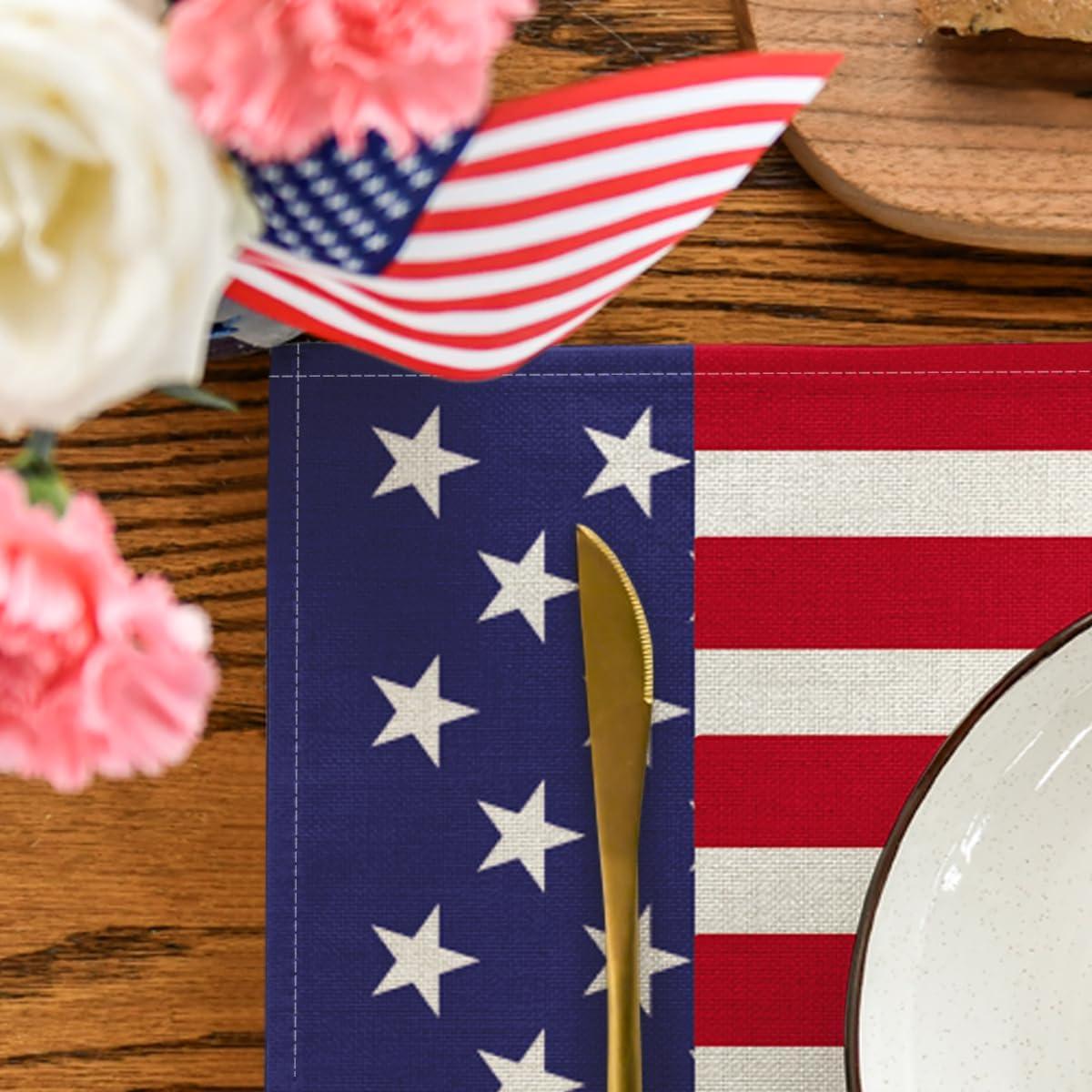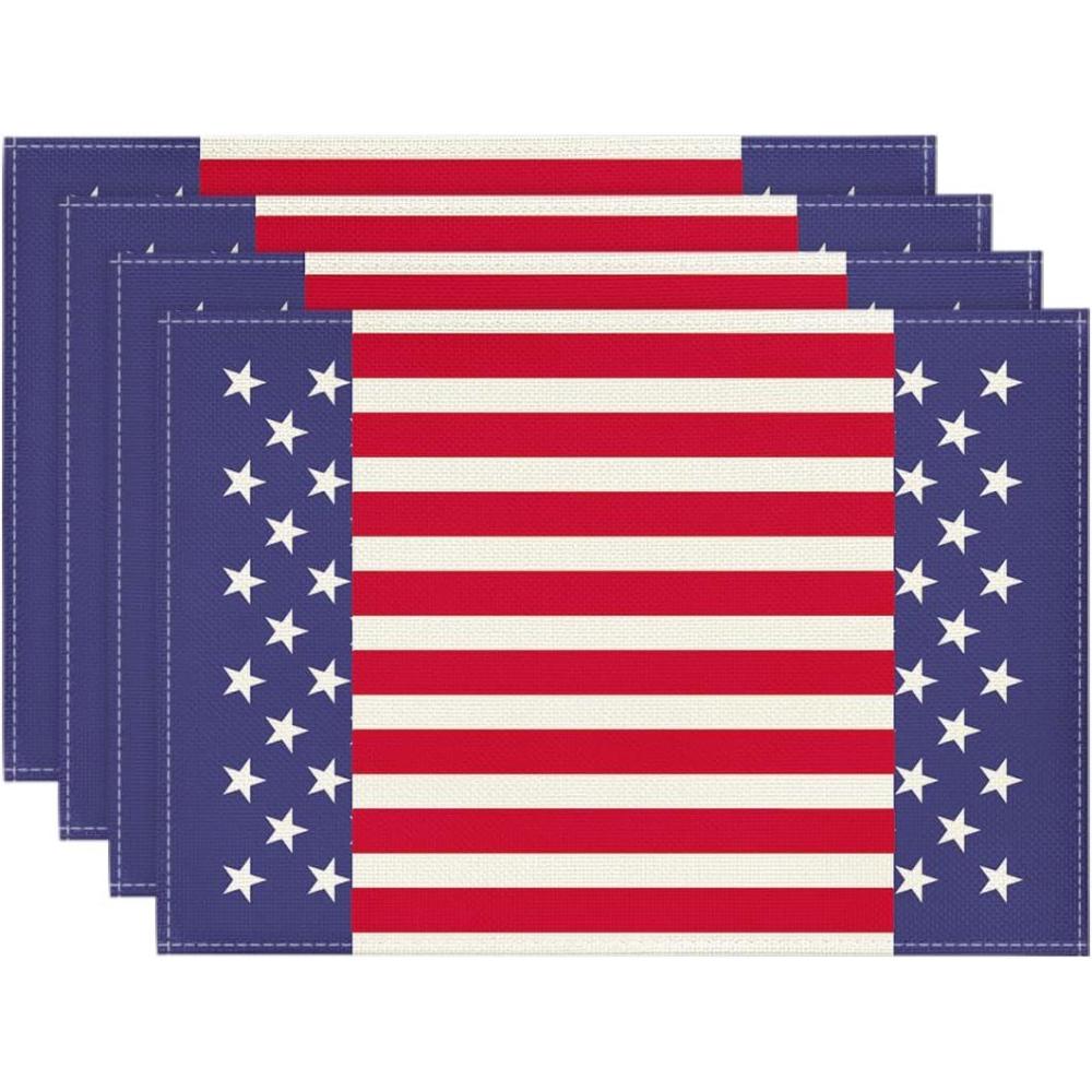 Artoid Mode Watercolor Stripes and Stars 4th of July Placemats Set of 4, 12 x 18 Inch Patriotic Memorial Day Seasonal Holiday Table Mats for Dining Table Decoration(Blue/Red)