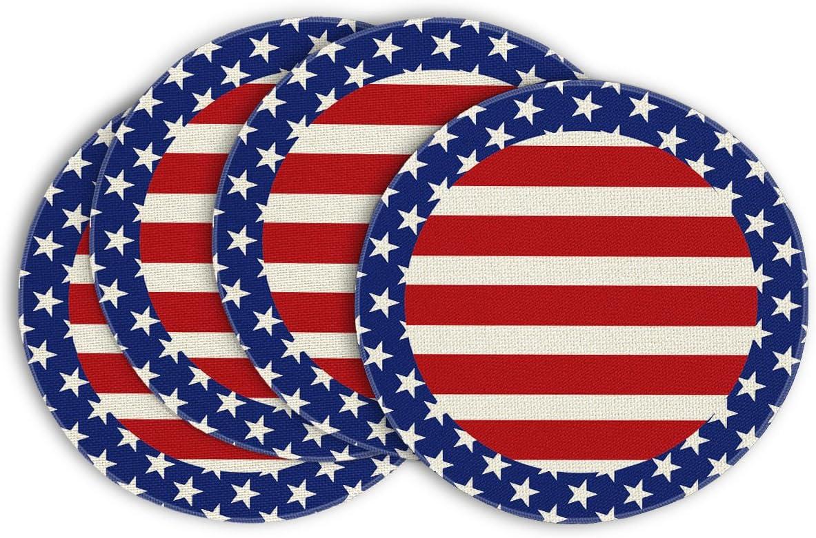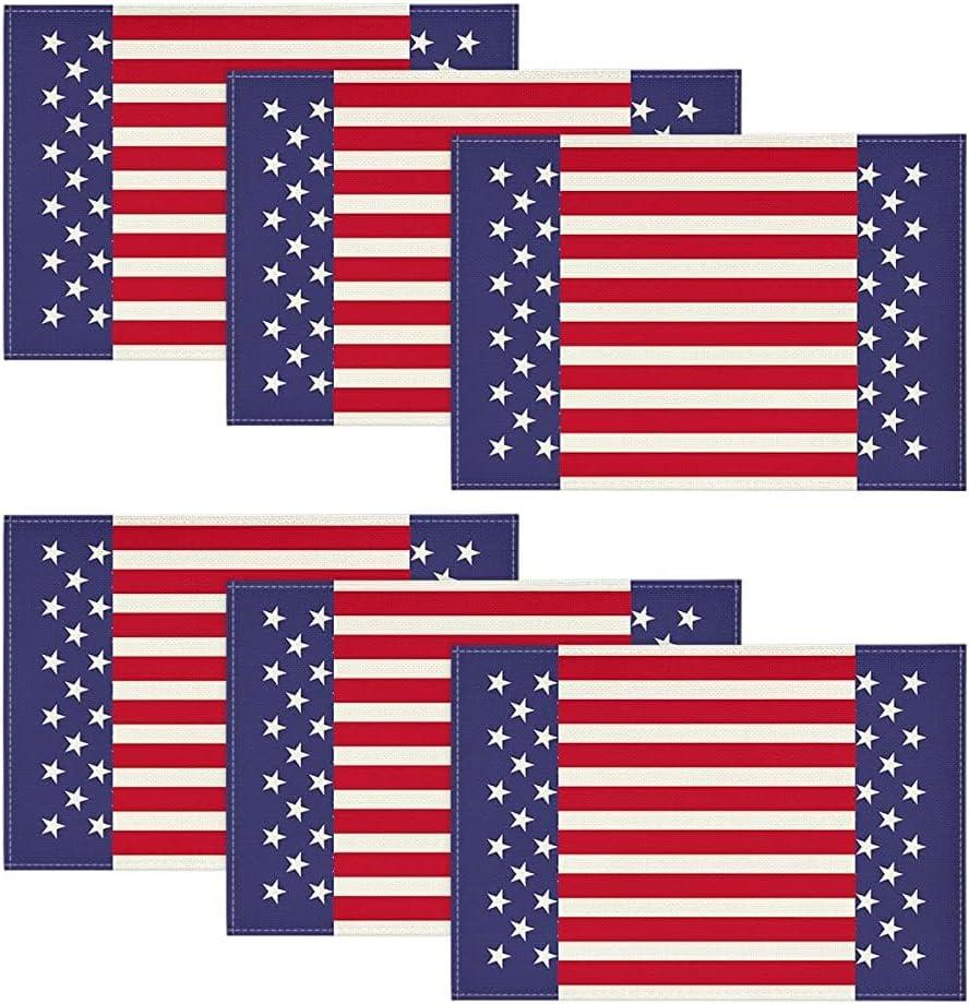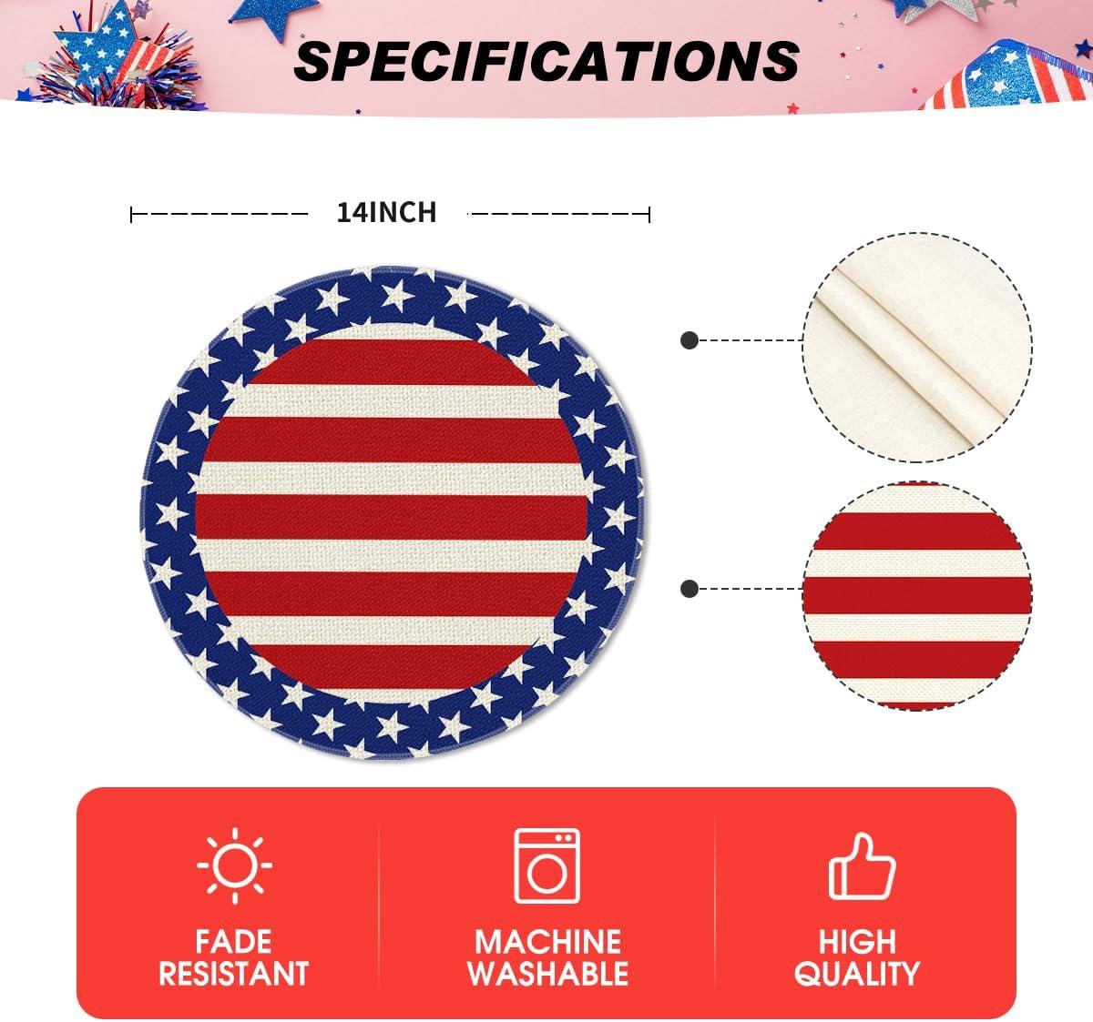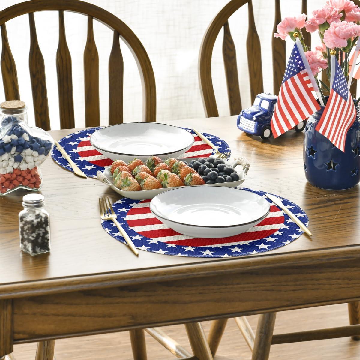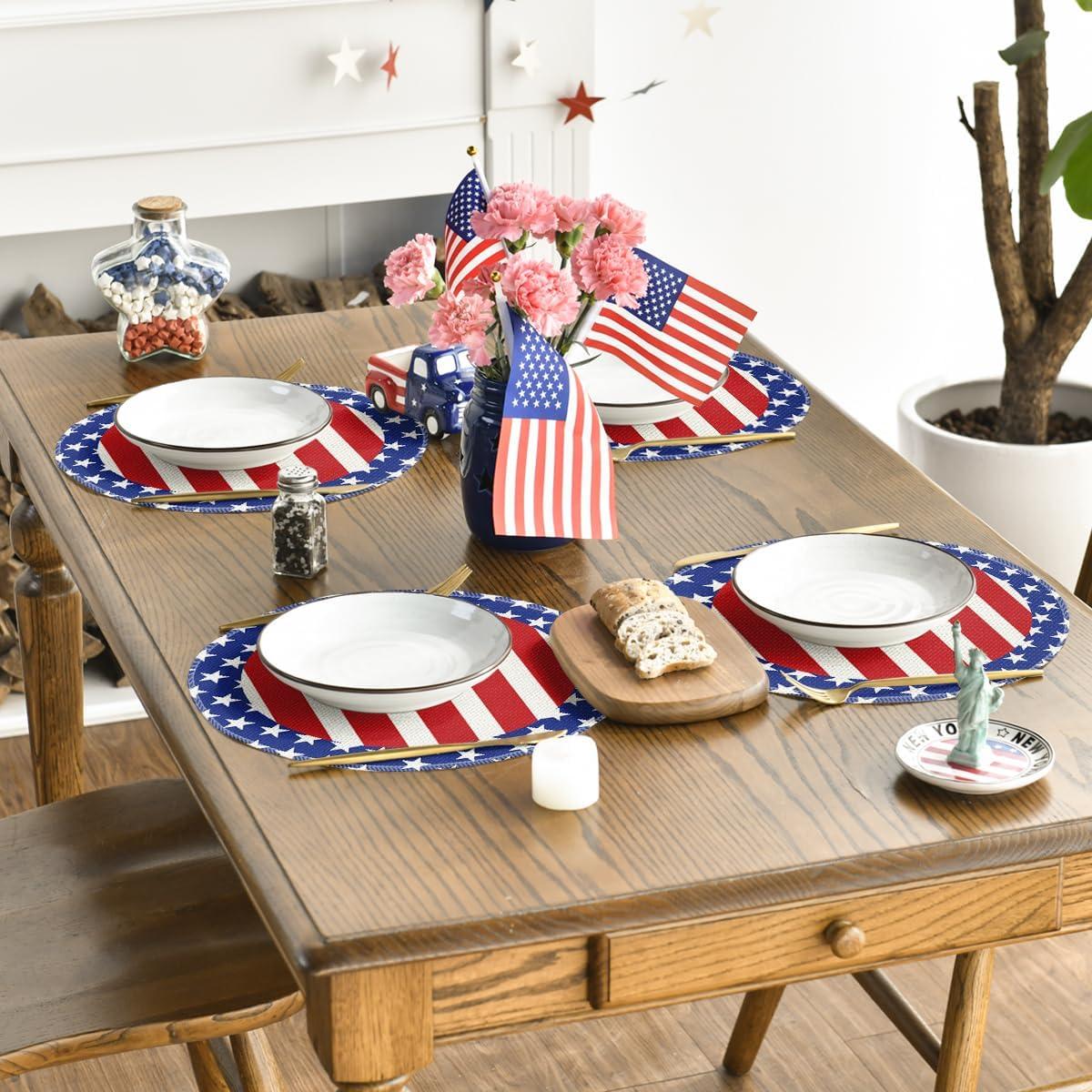 Artoid Mode Watercolor Stripes and Stars 4th of July Placemats Set of 4, 12 x 18 Inch Patriotic Memorial Day Seasonal Holiday Table Mats for Dining Table Decoration(Blue/Red)