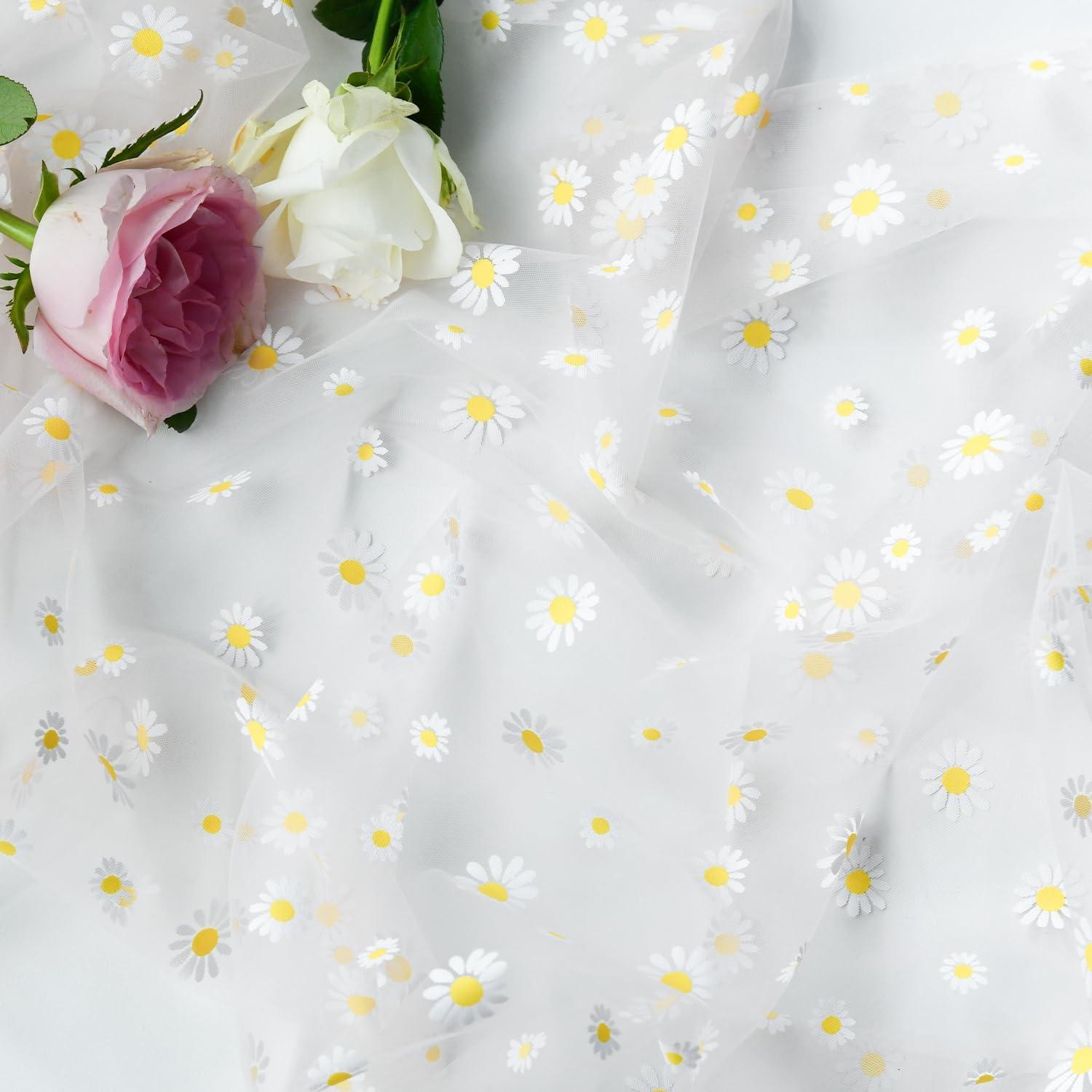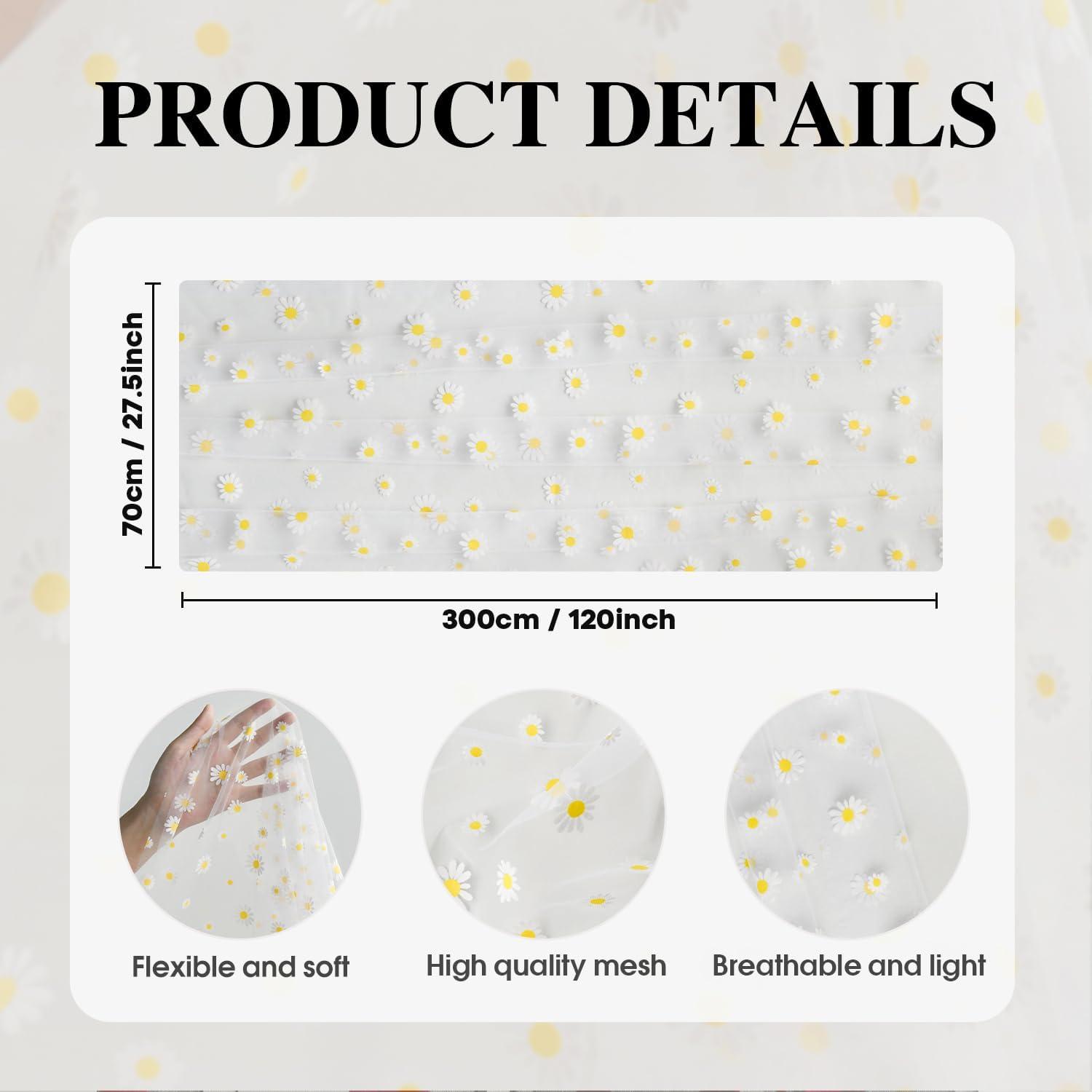 Artoid Mode White Daisy Summer Gauze Table Runner 120 Inch 10FT, Seasonal Sheer Dining Wedding Holiday Birthday Table Decor for Home Party(White)