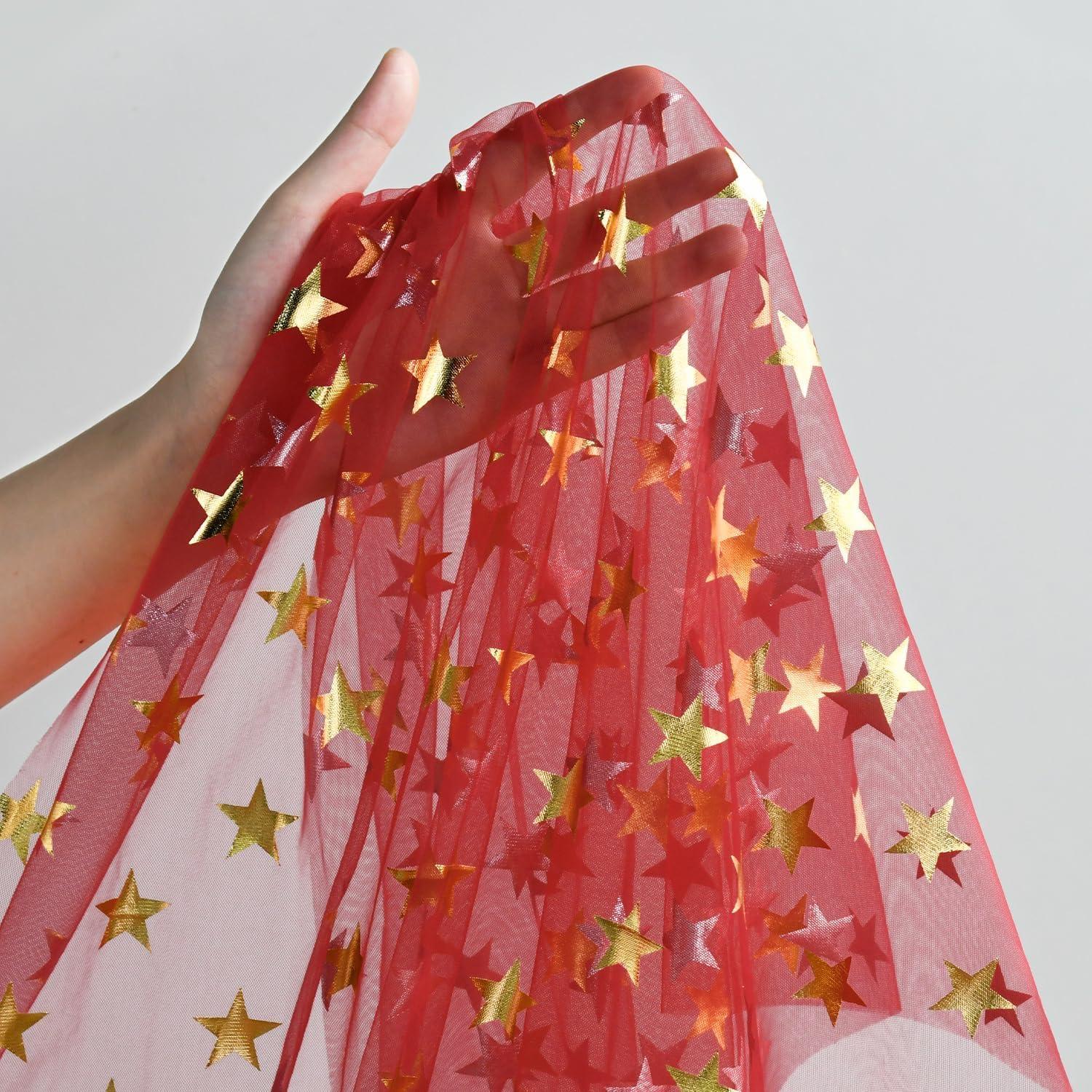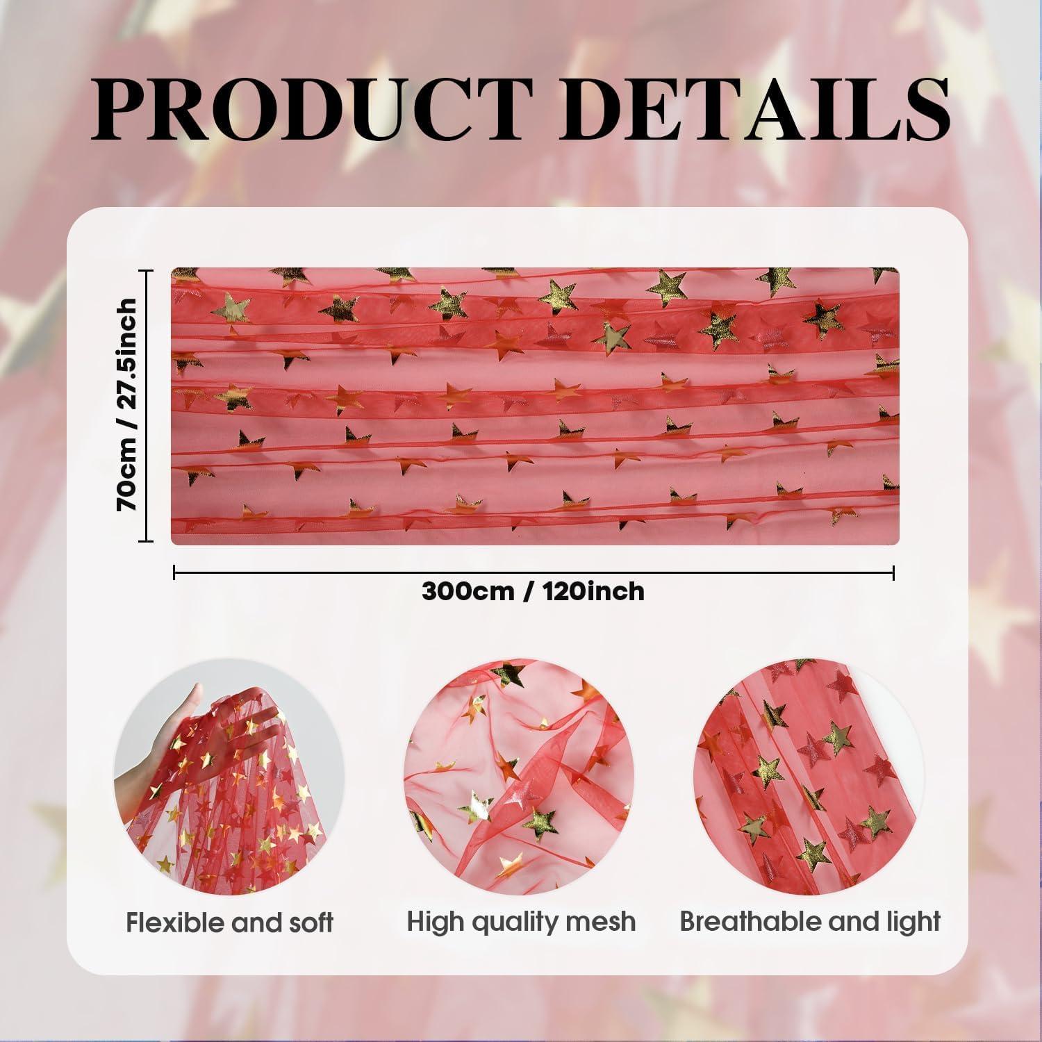 Artoid Mode White Stars Blue Gauze Table Runner 120 Inch 10FT, 4th of July Sheer Dining Wedding Holiday Birthday Table Decor for Home Party(Red)