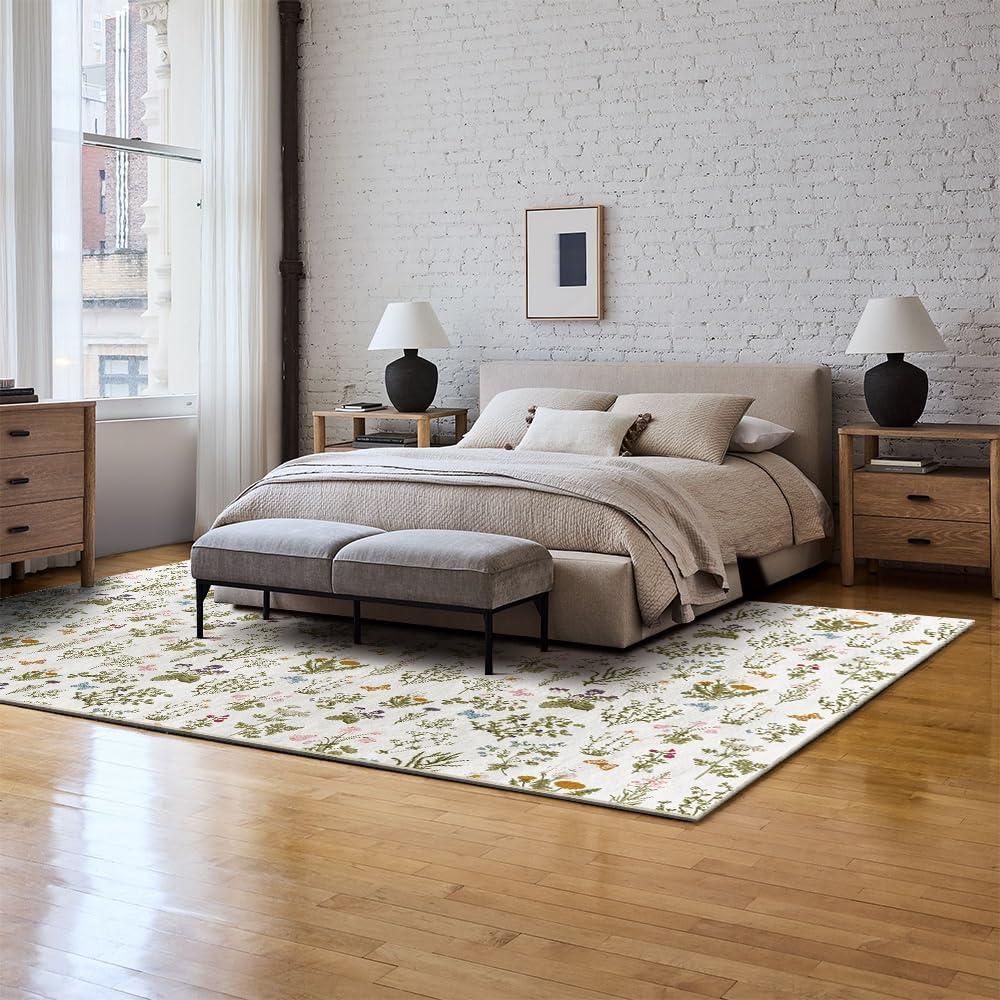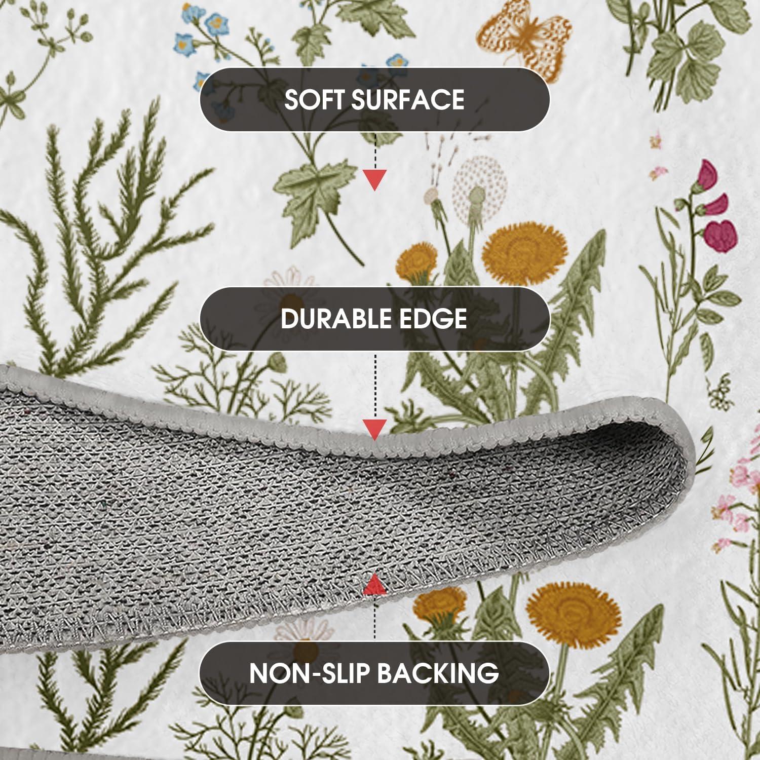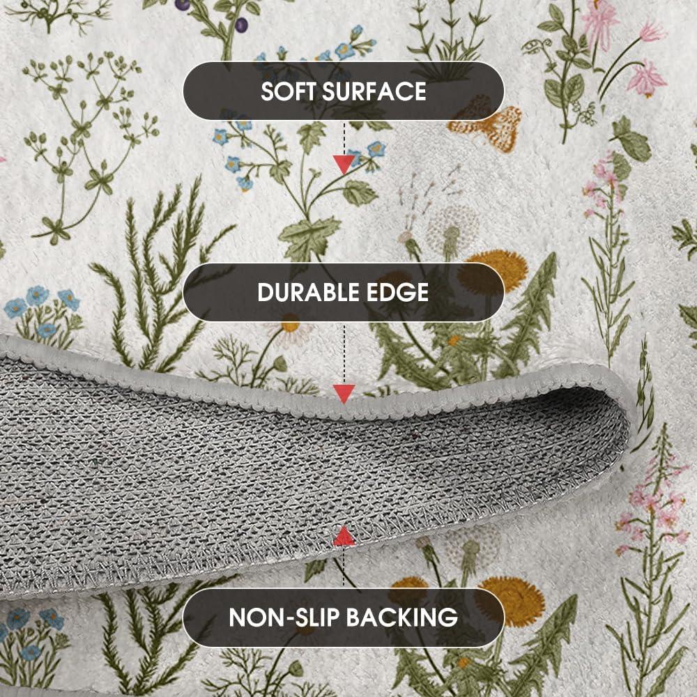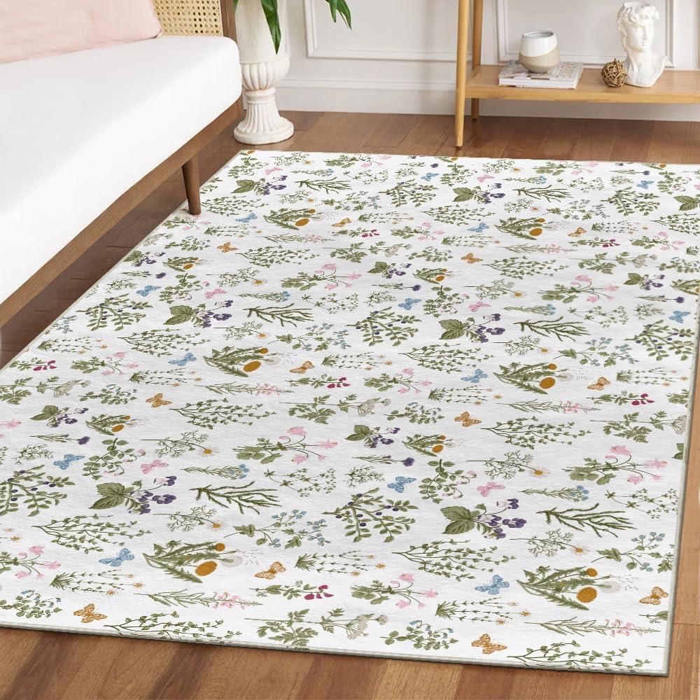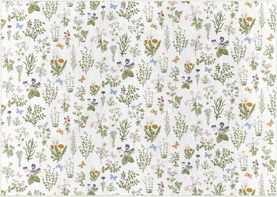 Artoid Mode Wild Floral Antique Herbs Area Rug, Home Decor Low-Profile Area Rugs for Entryway Bedroom Living Room Laundry Room Indoor 5×7 Feet(Wildflower-1)