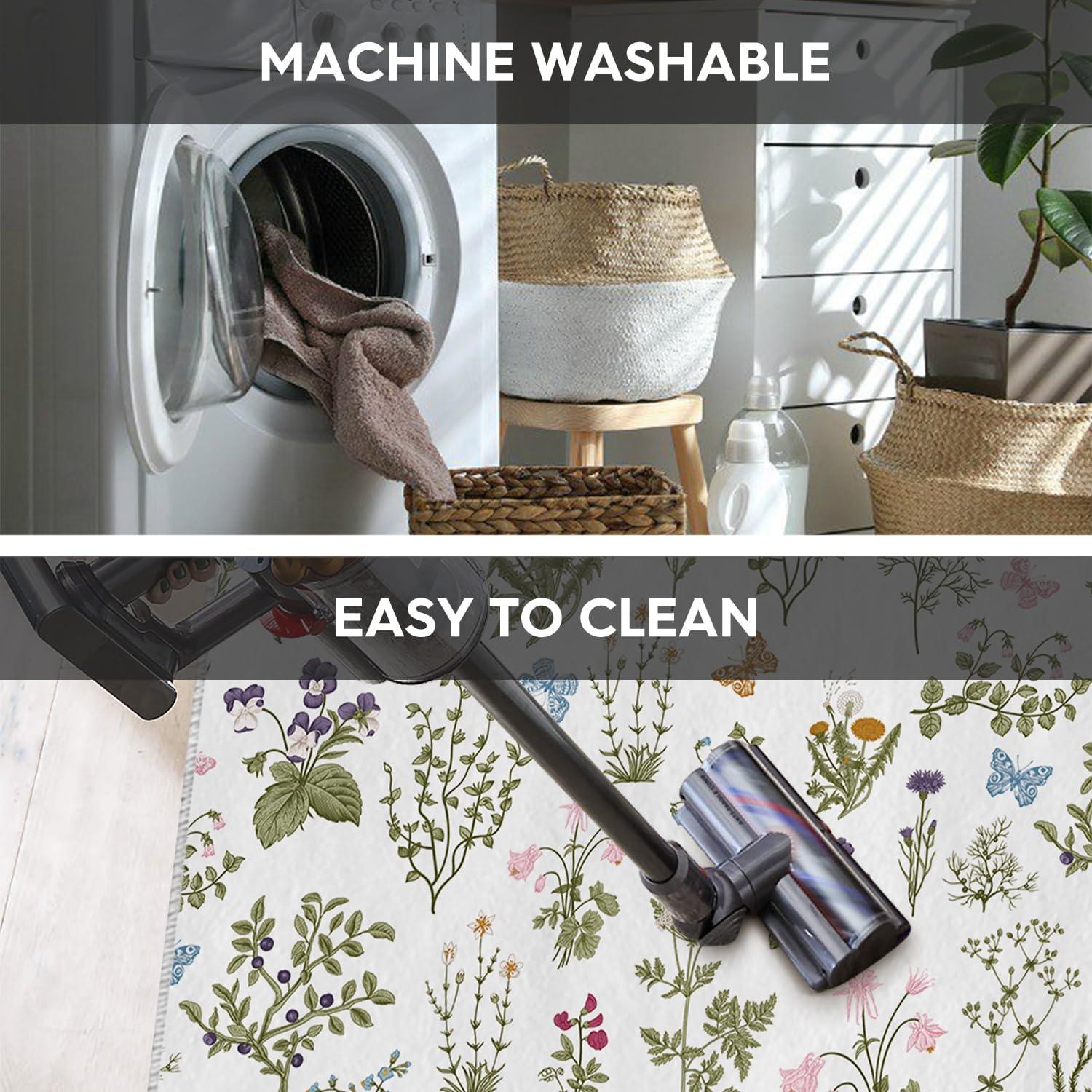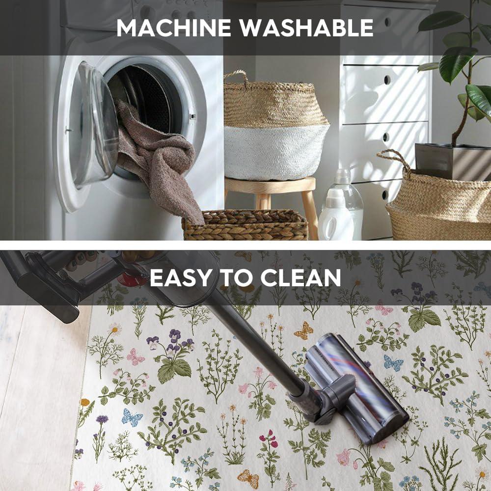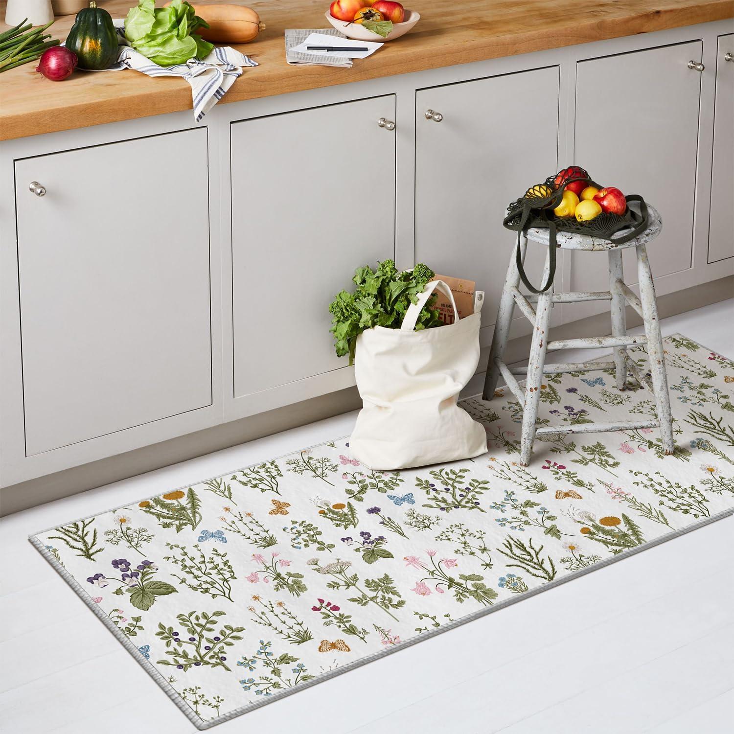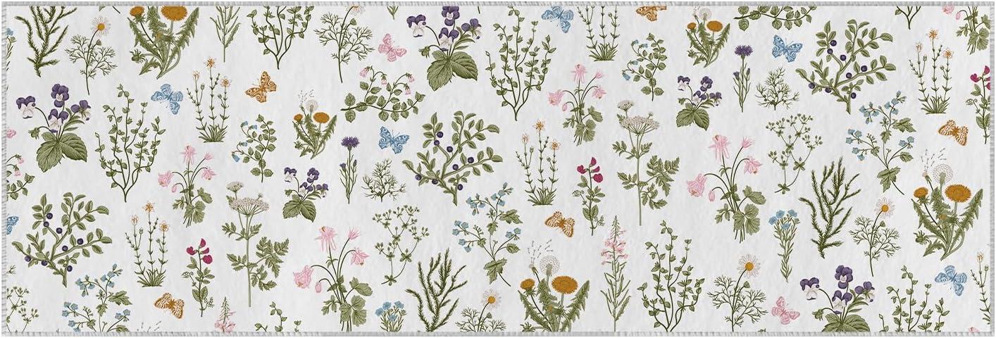 Artoid Mode Wild Floral Antique Herbs Area Rug, Home Decor Low-Profile Area Rugs for Entryway Bedroom Living Room Laundry Room Indoor 5×7 Feet(Wildflower-1)