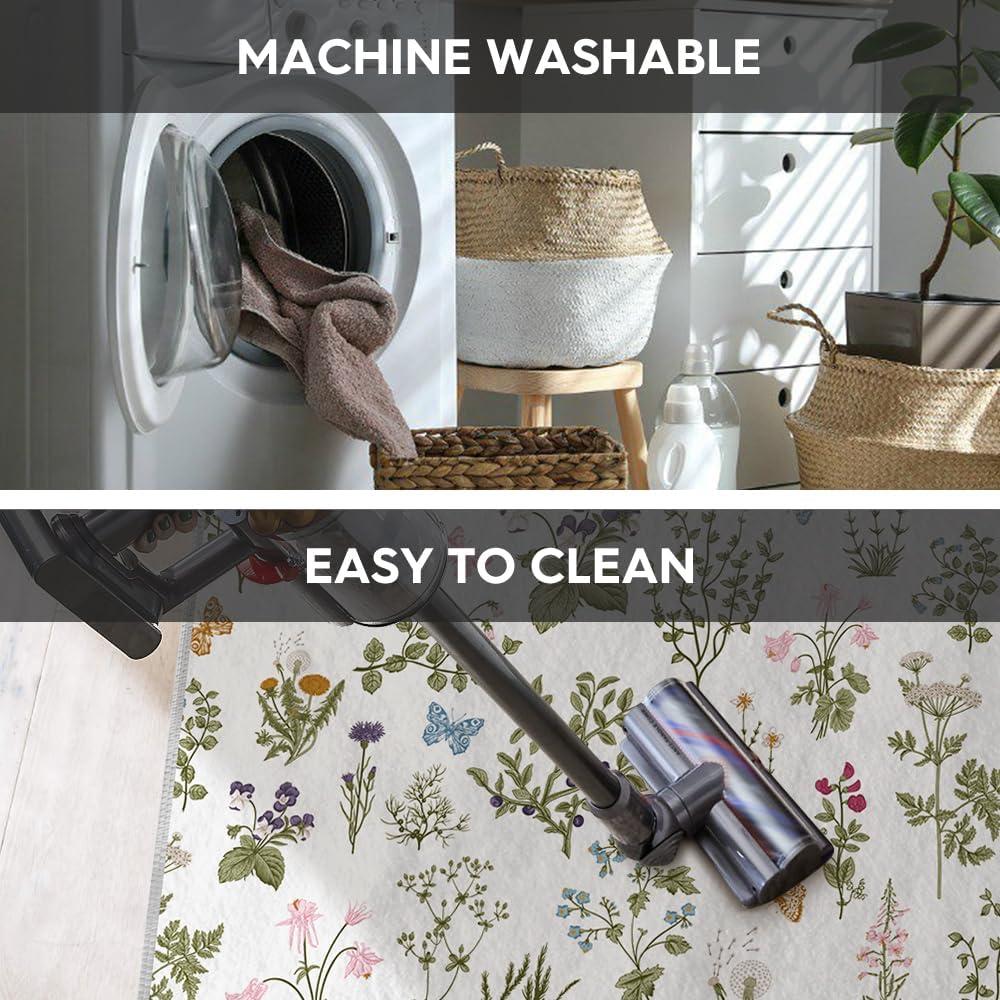 AREA RUGS WASHABLE:The washing machine and vacuum cleaner is friendly to these area rug. Rugs are quick and easy to clean and maintain which is durable, just regular vacuuming and gently blotting out minor stains with a mild detergent or carpet cleaner. A clean rug for living room can be obtained without taking a long time.