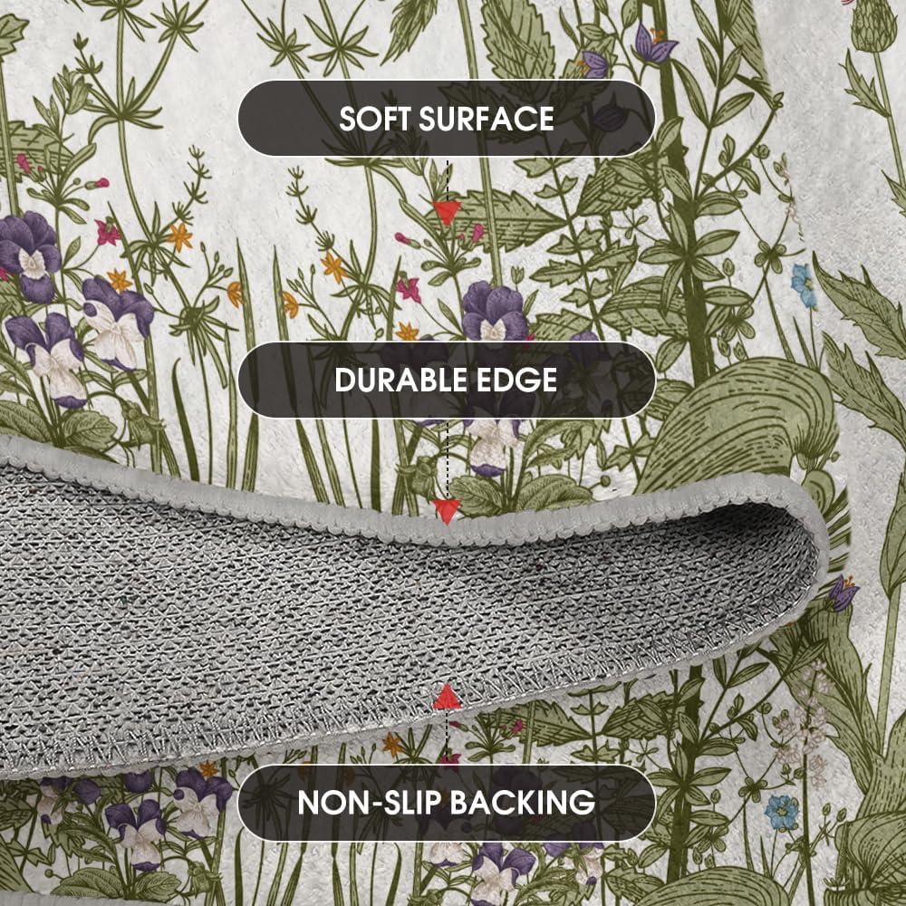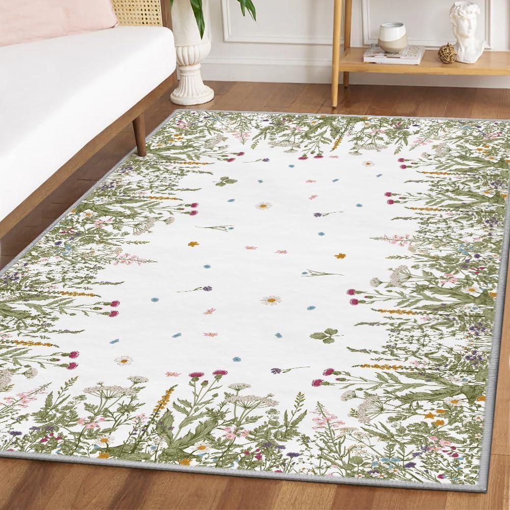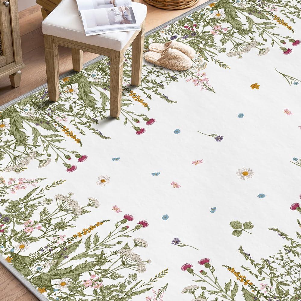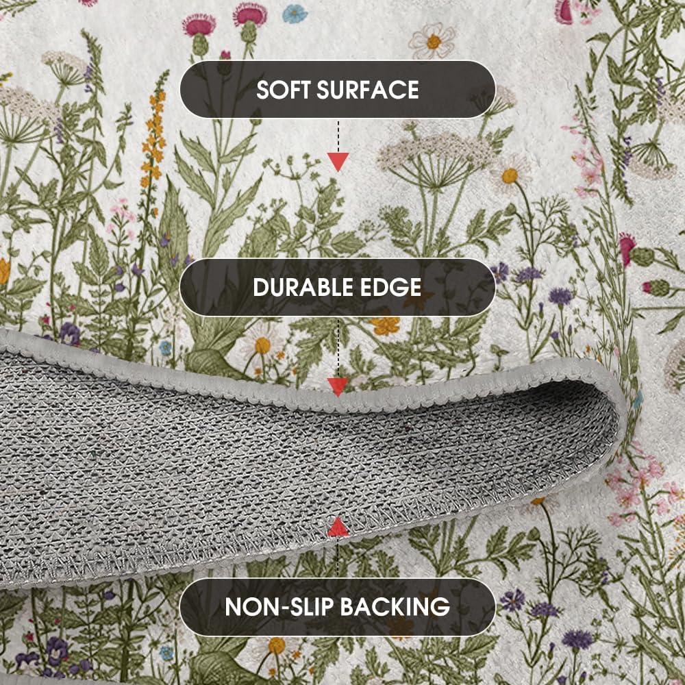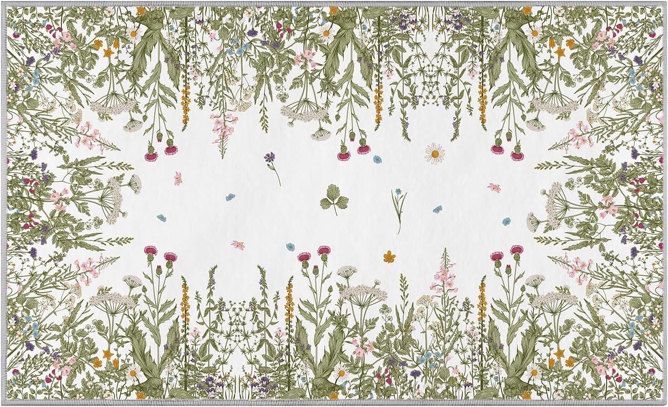 Artoid Mode Wild Floral Antique Herbs Area Rug, Home Decor Low-Profile Area Rugs for Entryway Bedroom Living Room Laundry Room Indoor 5×7 Feet(Wildflower-2)