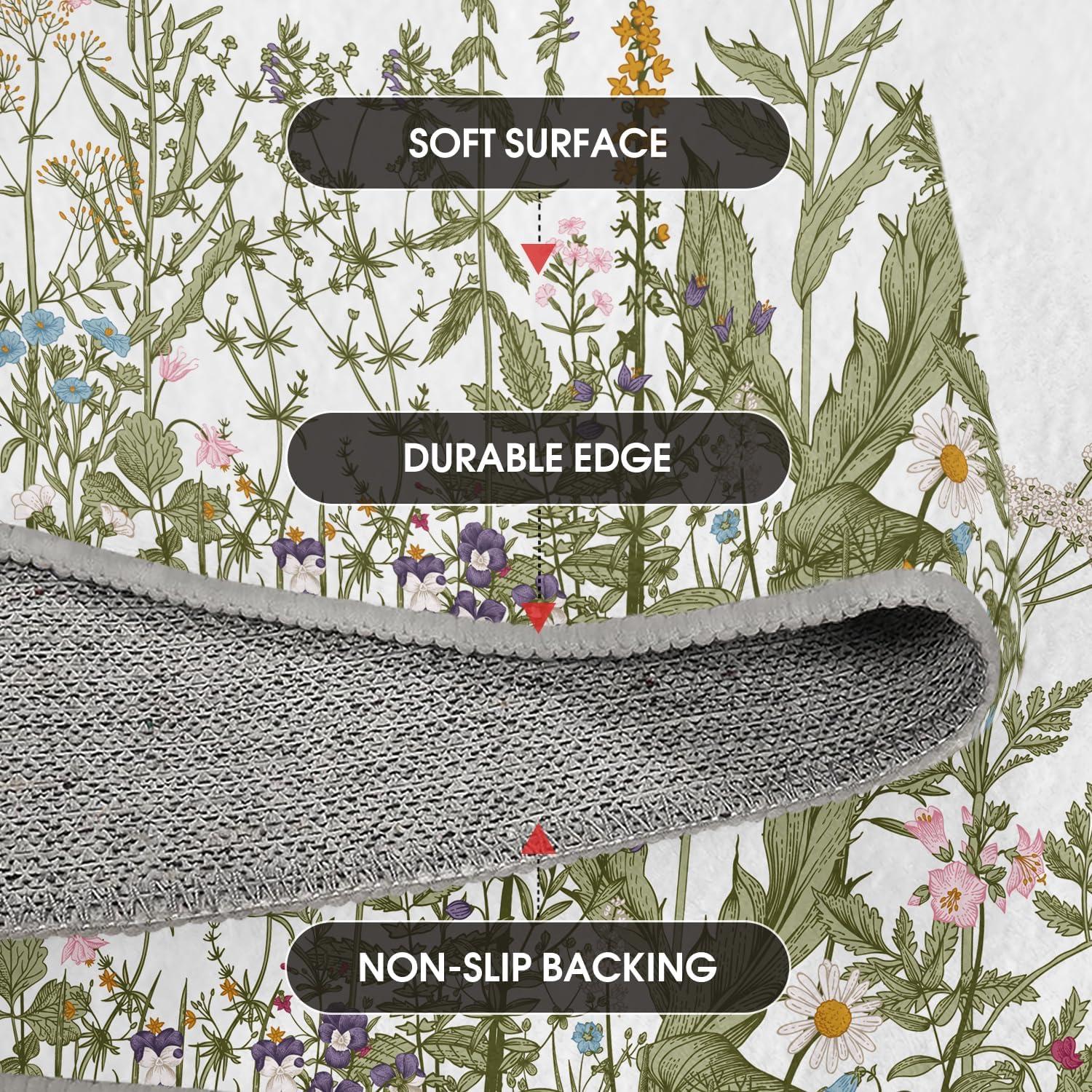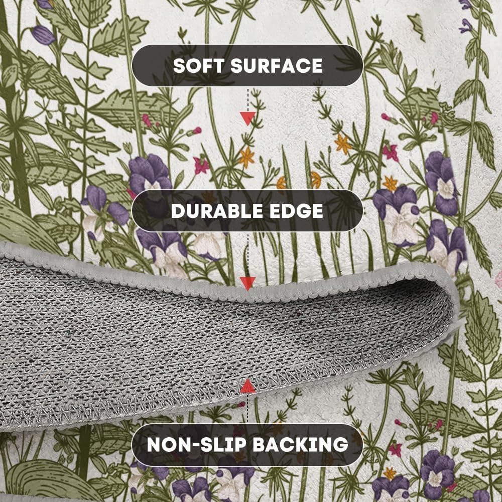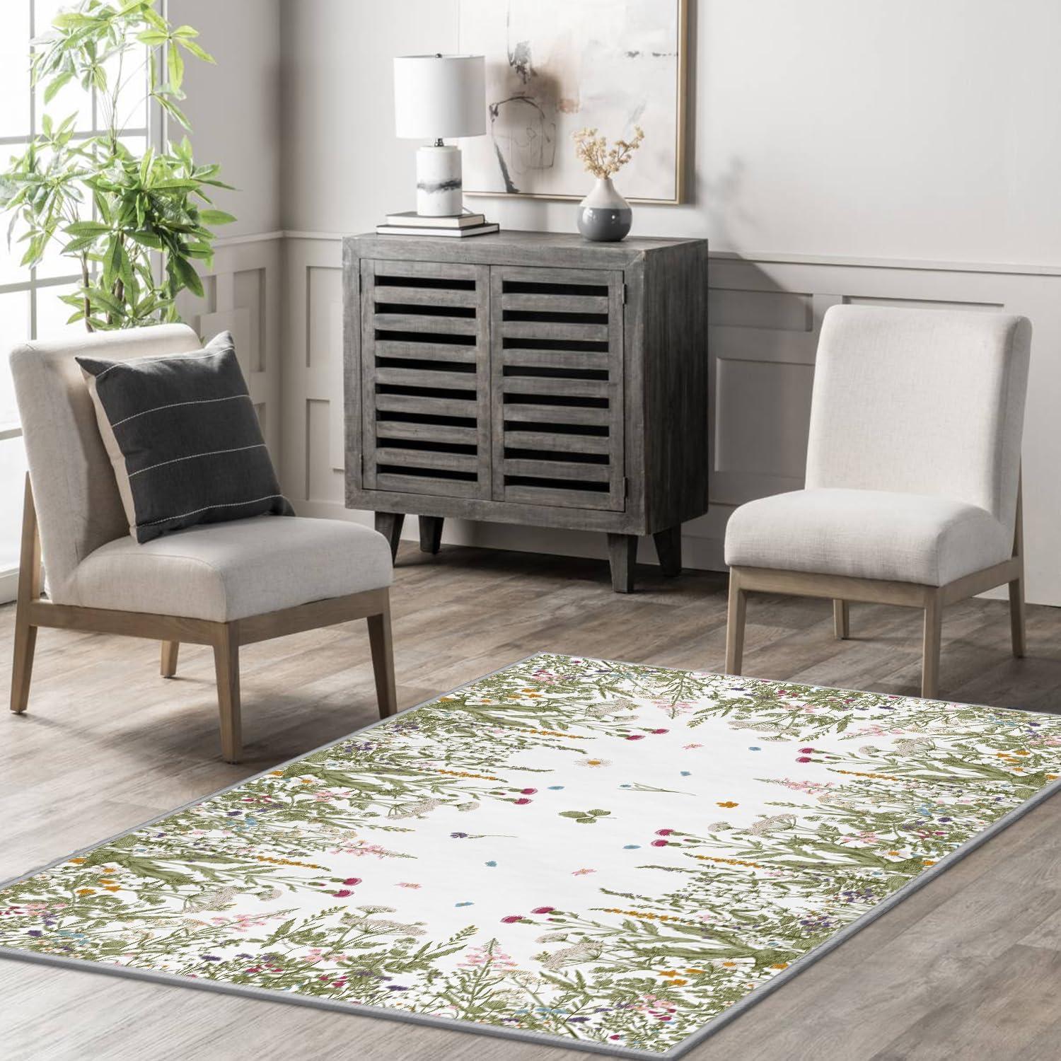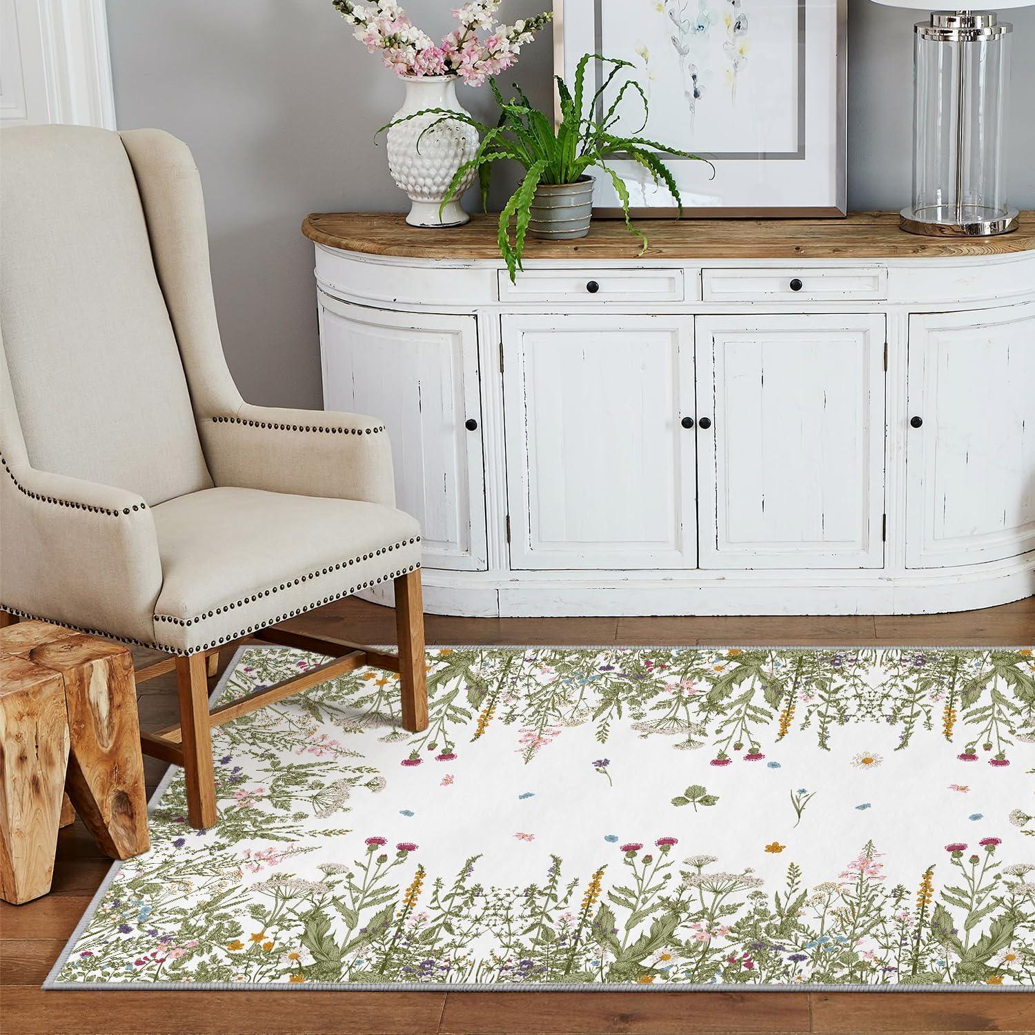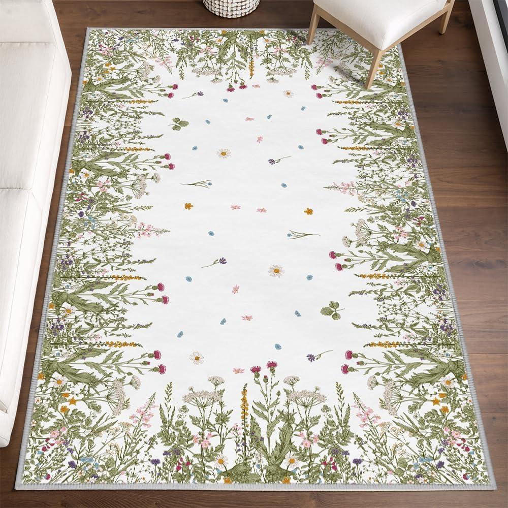 Artoid Mode Wild Floral Antique Herbs Area Rug, Home Decor Low-Profile Area Rugs for Entryway Bedroom Living Room Laundry Room Indoor 5×7 Feet(Wildflower-2)