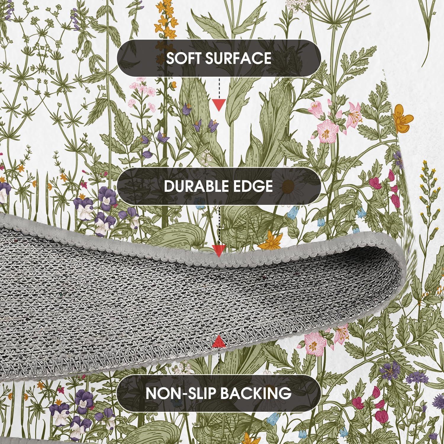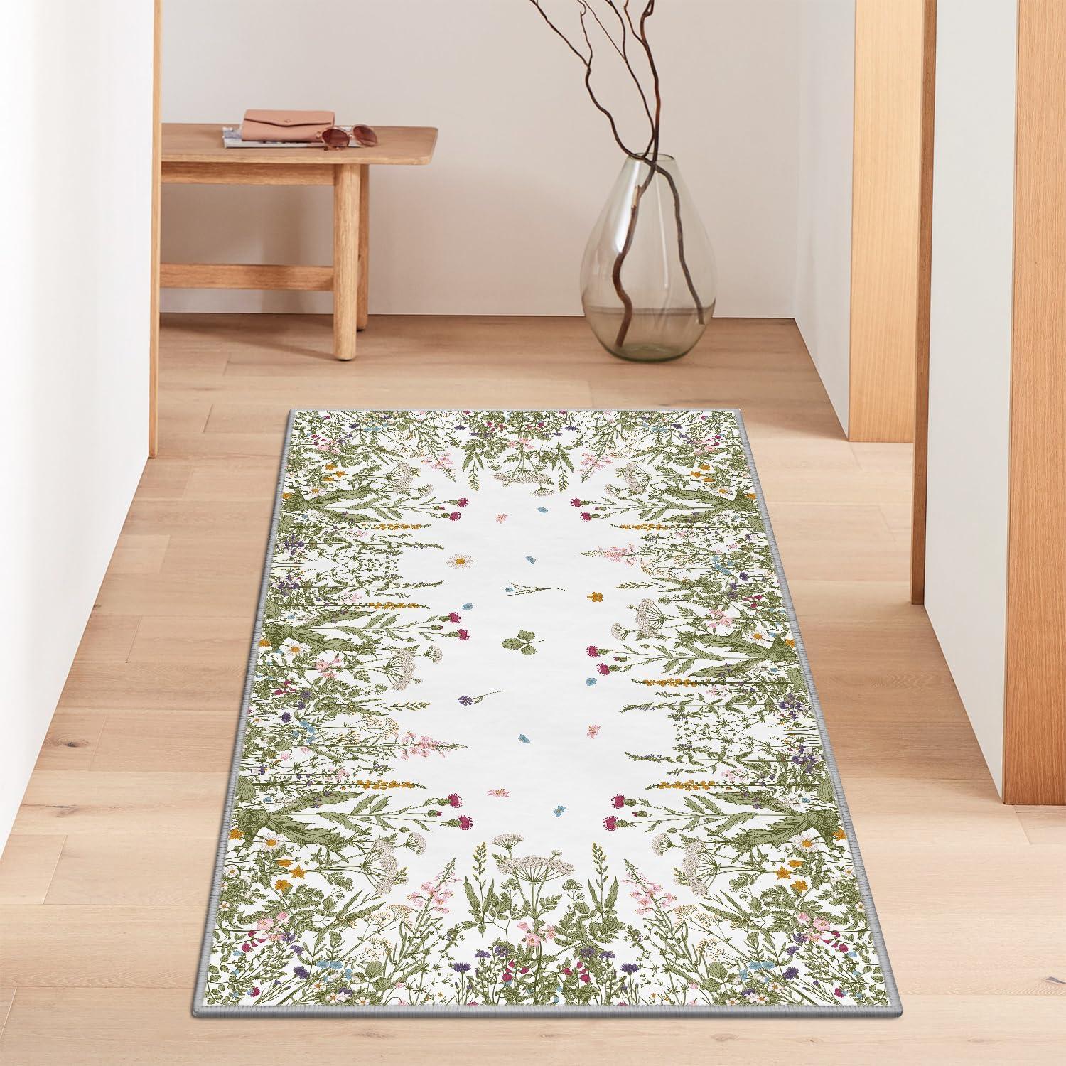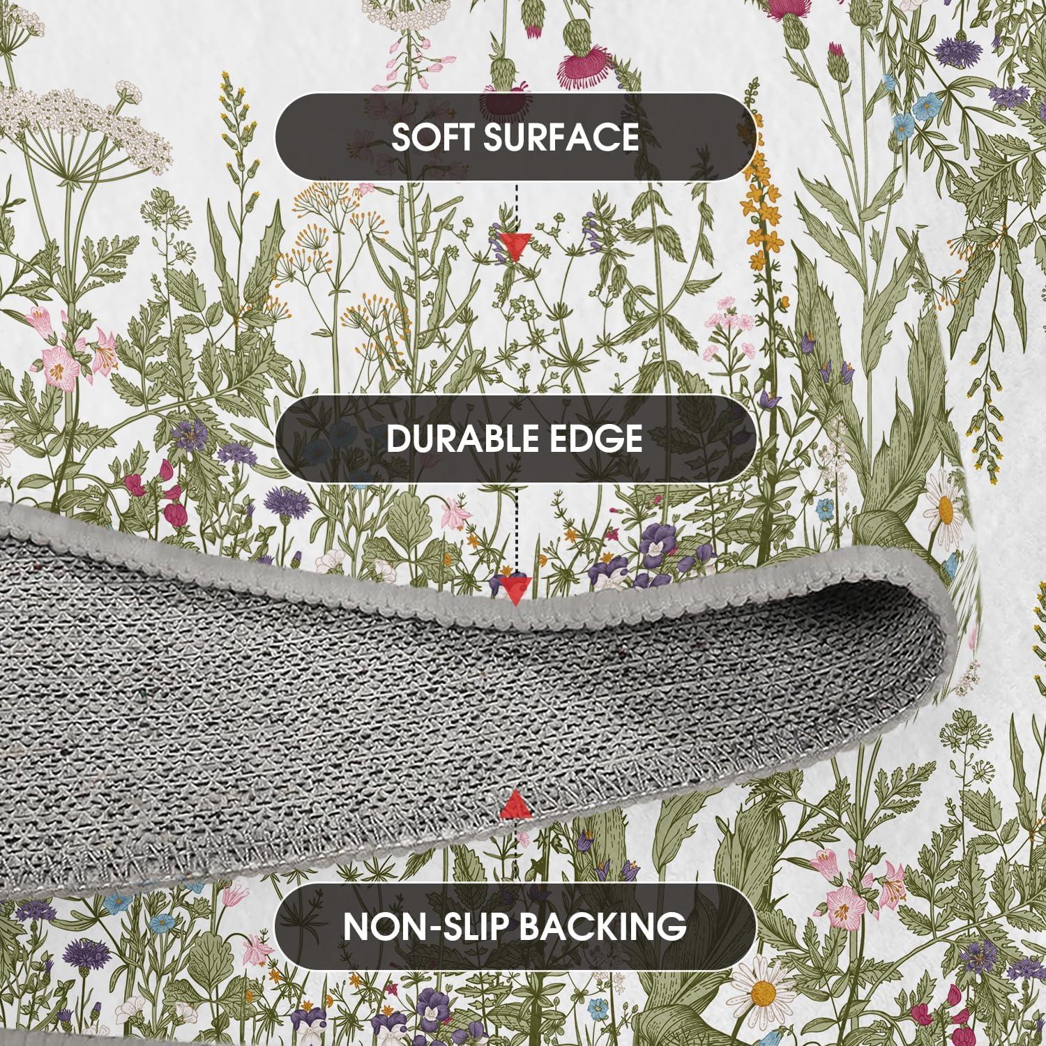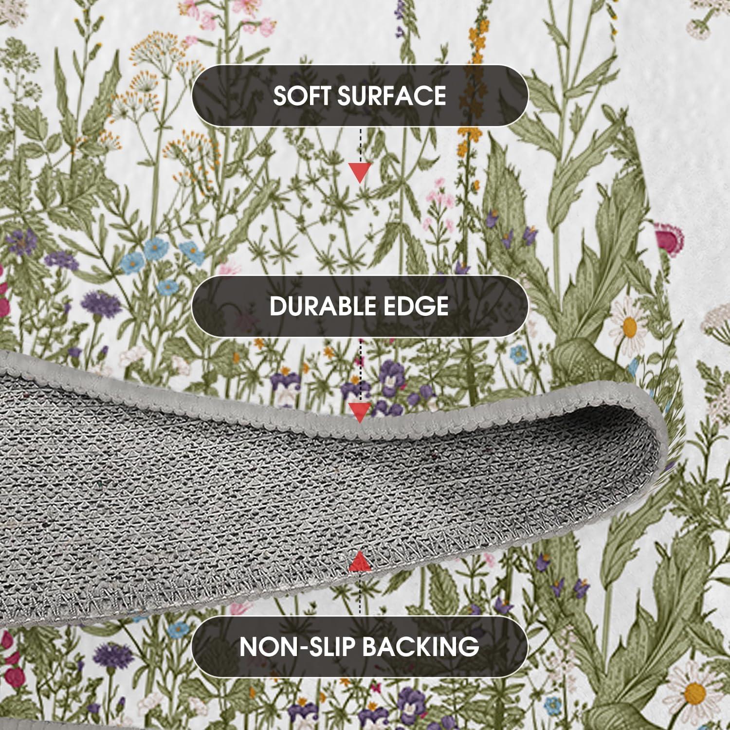 Artoid Mode Wild Floral Antique Herbs Area Rug, Home Decor Low-Profile Area Rugs for Entryway Bedroom Living Room Laundry Room Indoor 5×7 Feet(Wildflower-2)