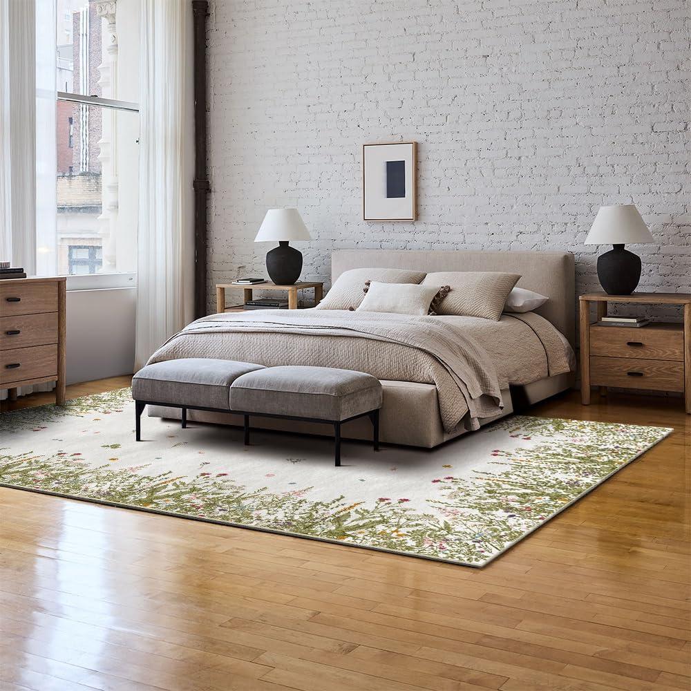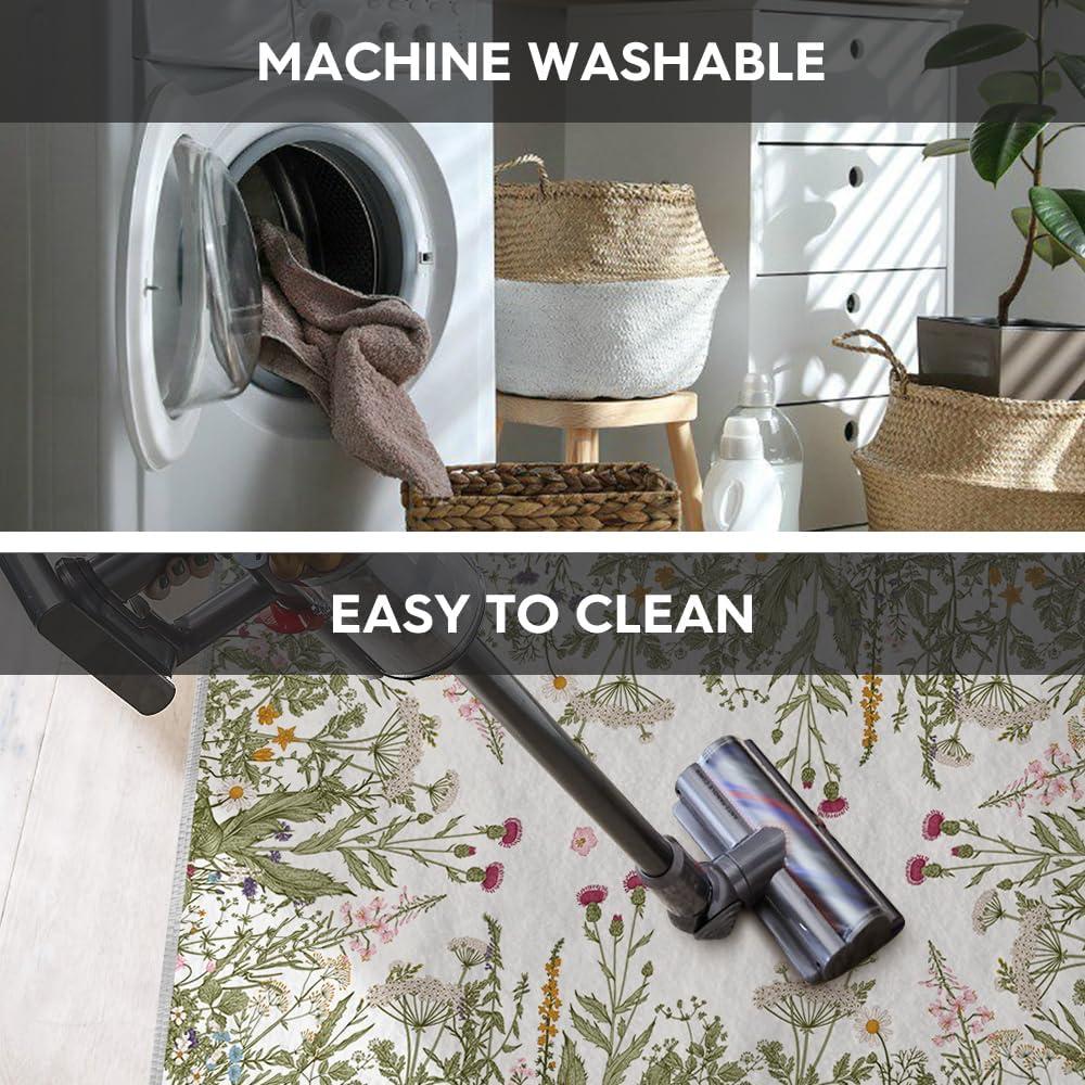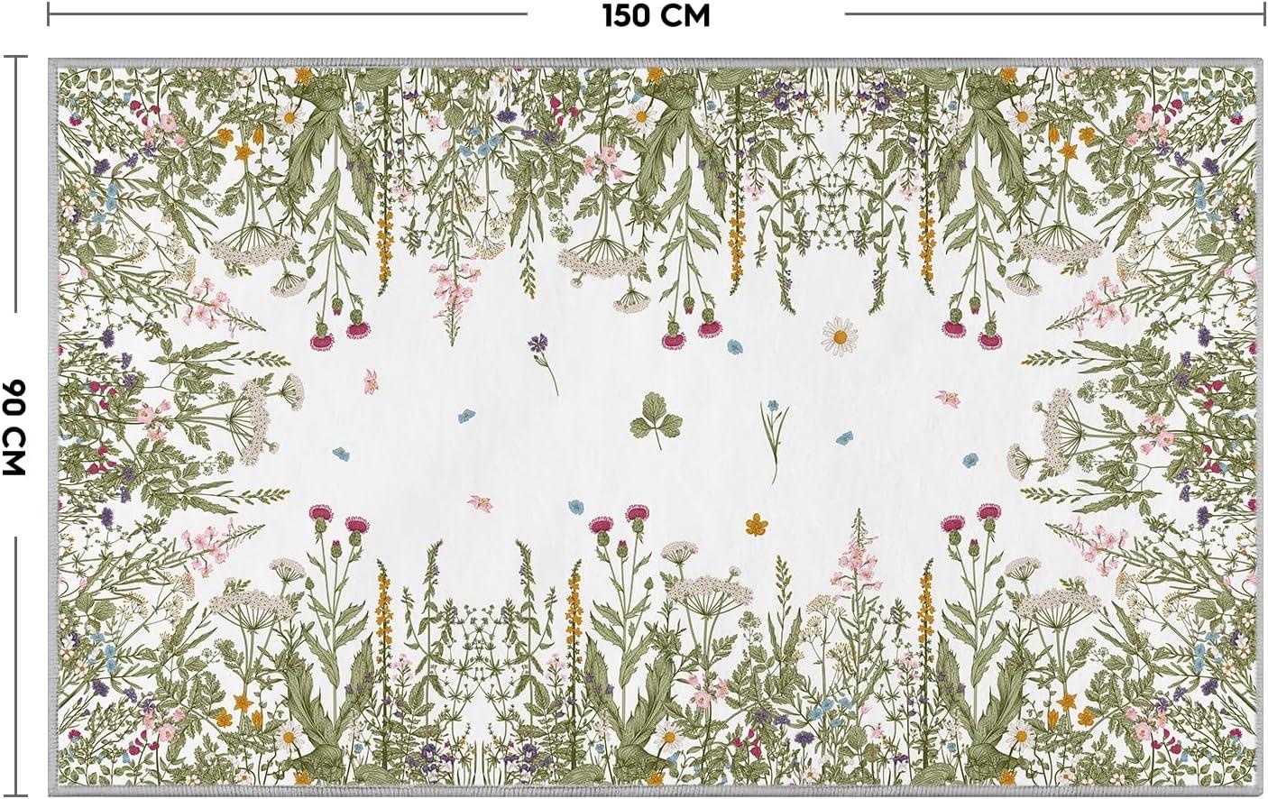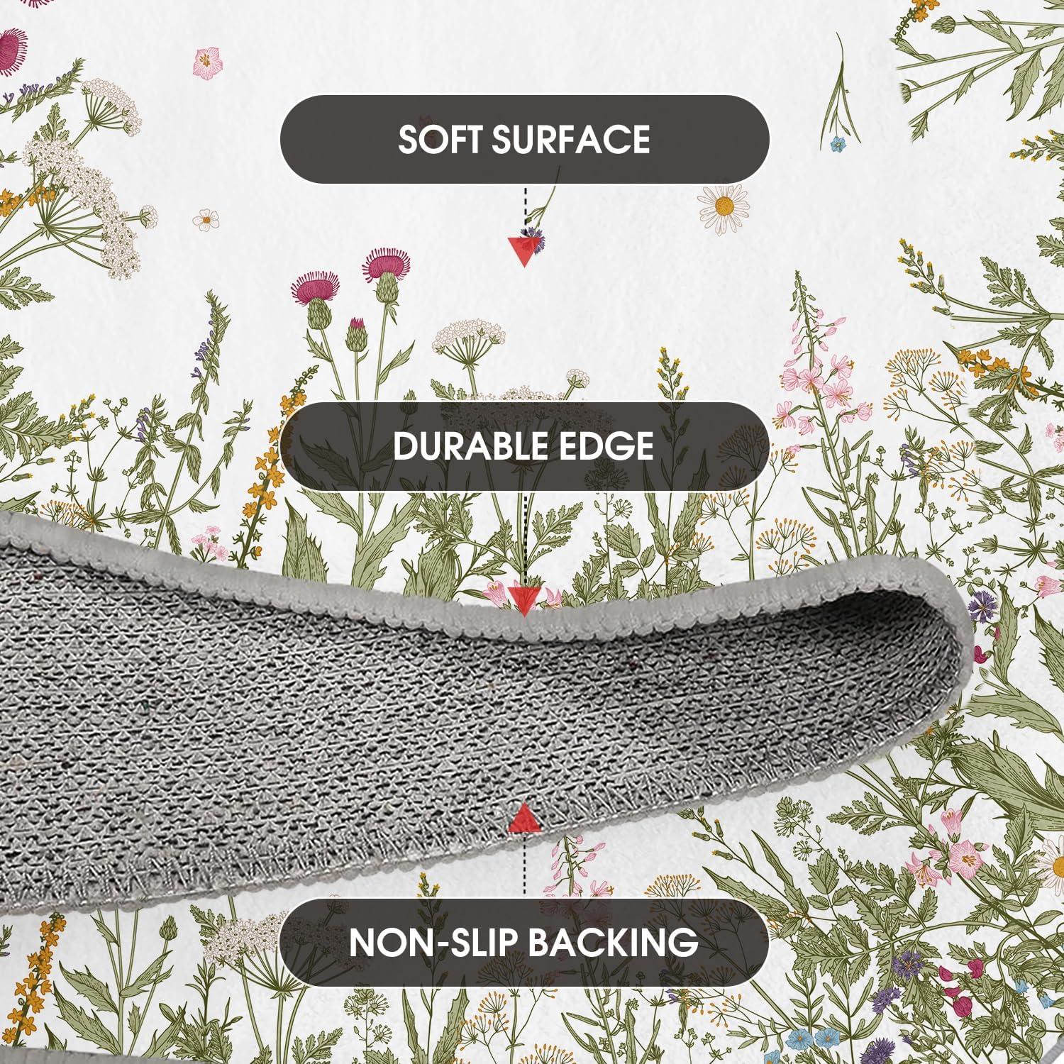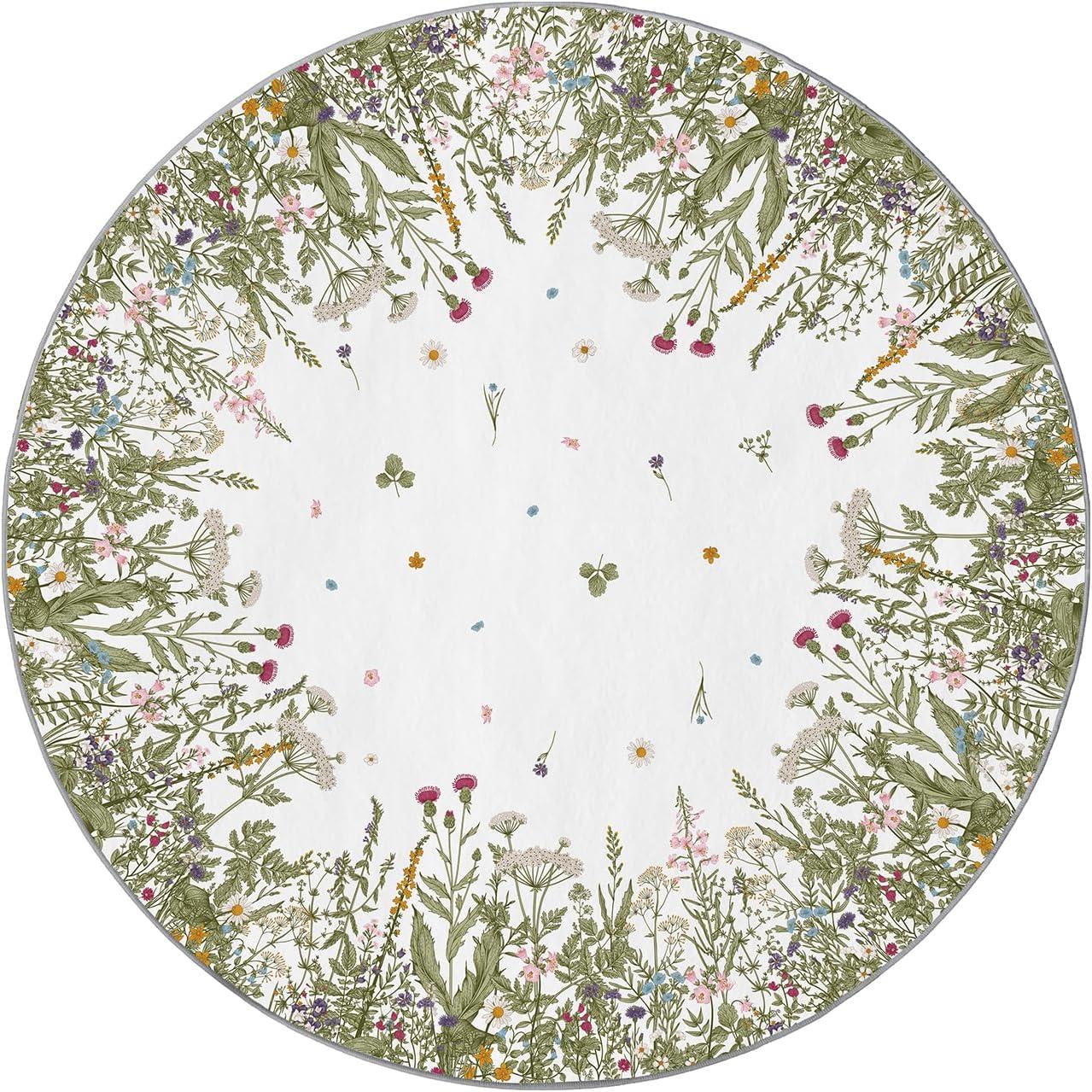 Artoid Mode Wild Floral Antique Herbs Area Rug, Home Decor Low-Profile Area Rugs for Entryway Bedroom Living Room Laundry Room Indoor 5×7 Feet(Wildflower-2)