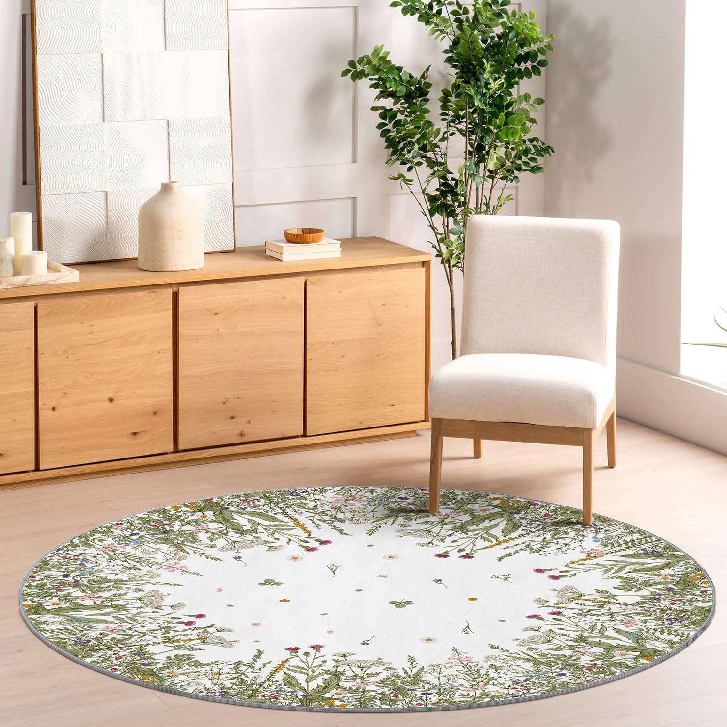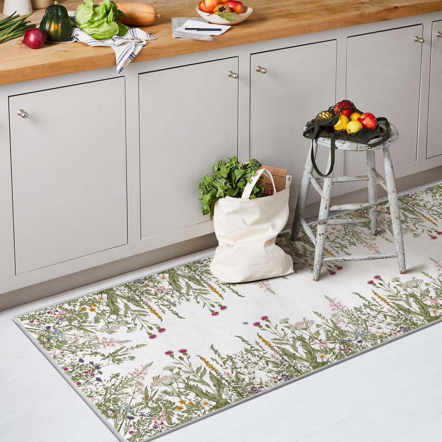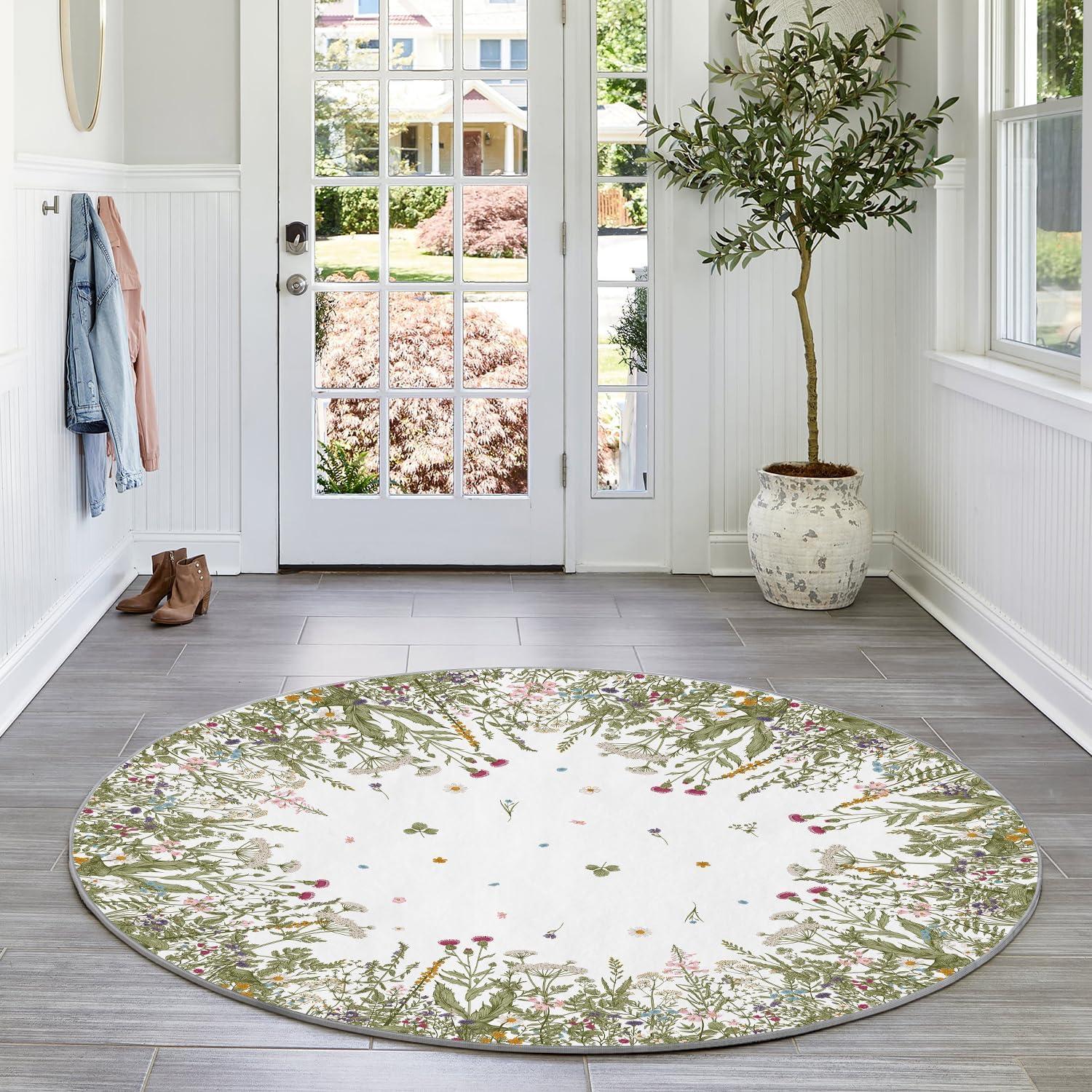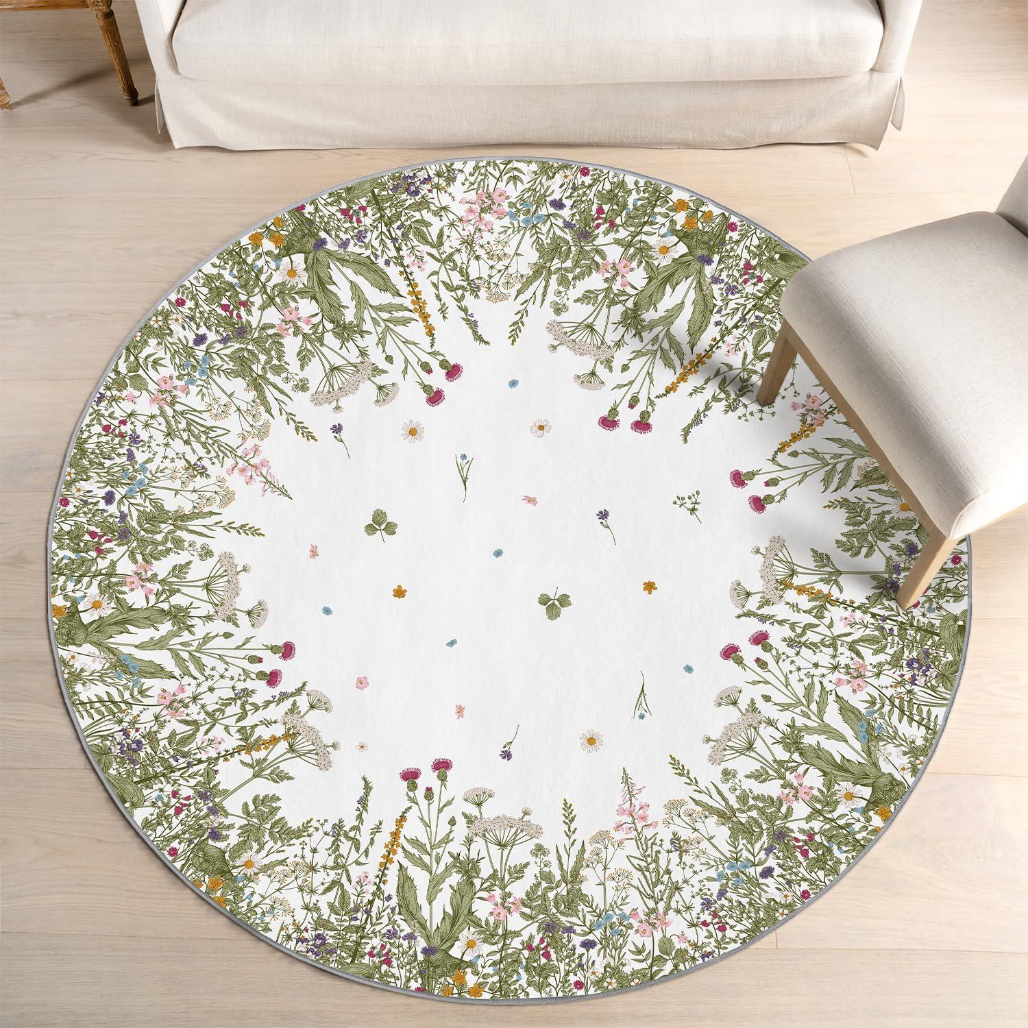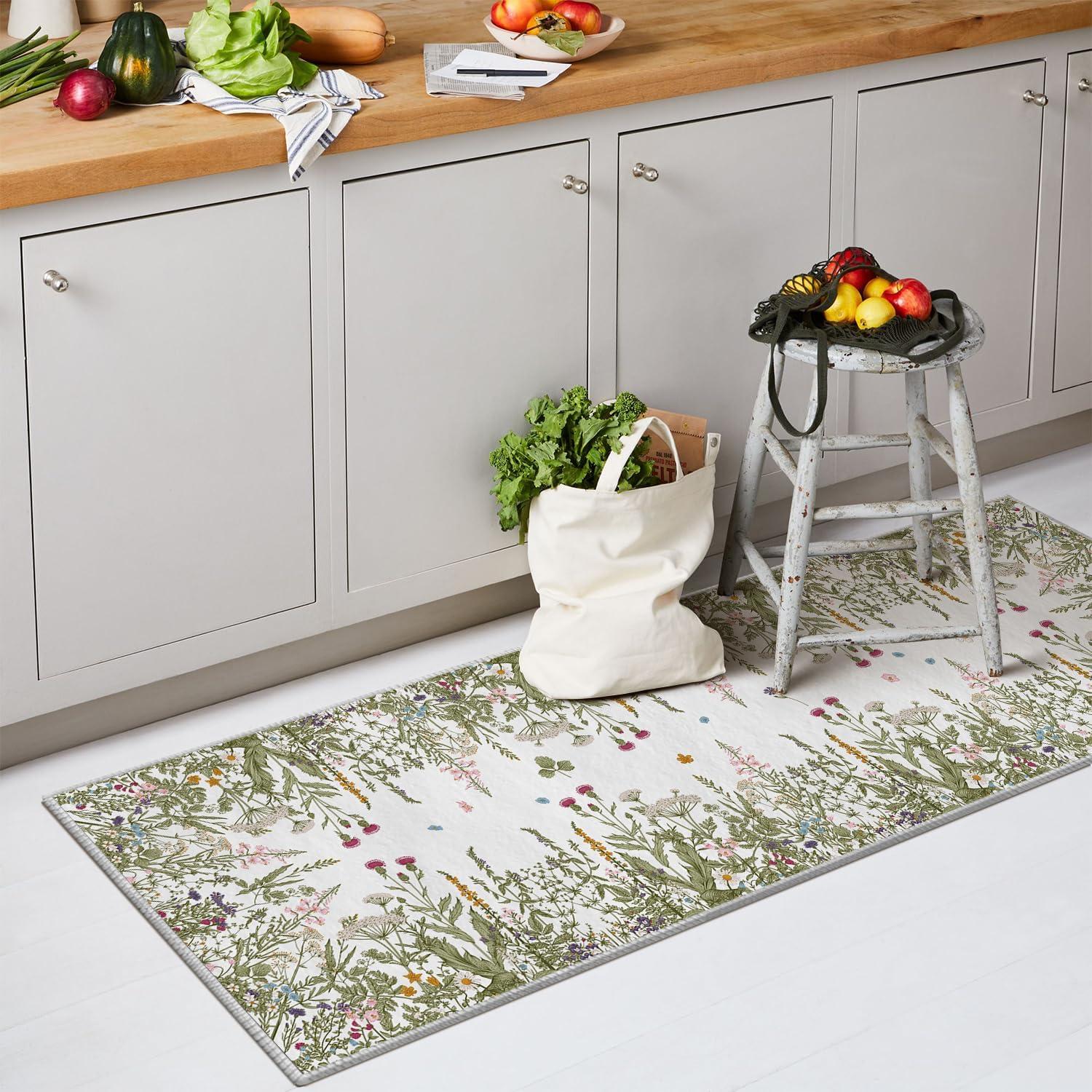 Artoid Mode Wild Floral Antique Herbs Area Rug, Home Decor Low-Profile Area Rugs for Entryway Bedroom Living Room Laundry Room Indoor 5×7 Feet(Wildflower-2)