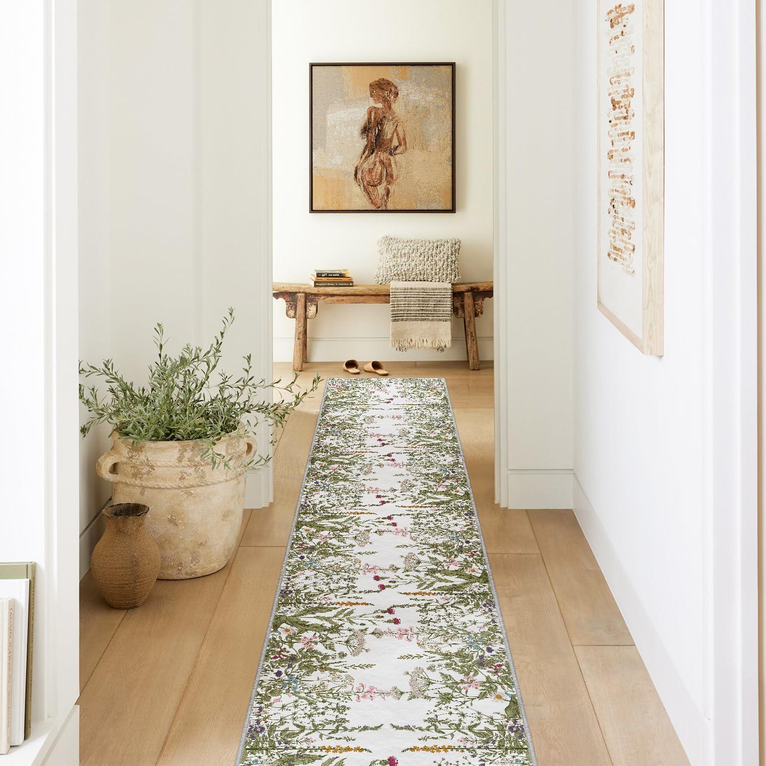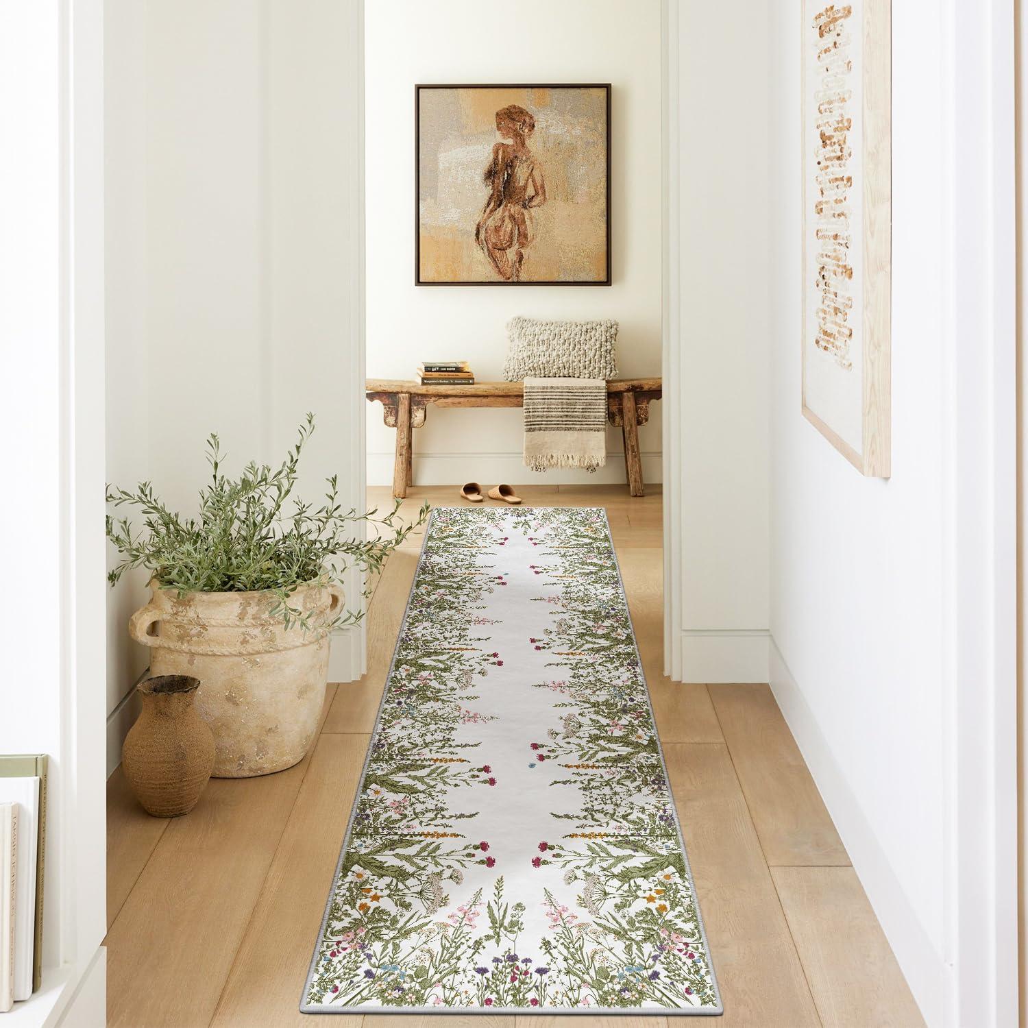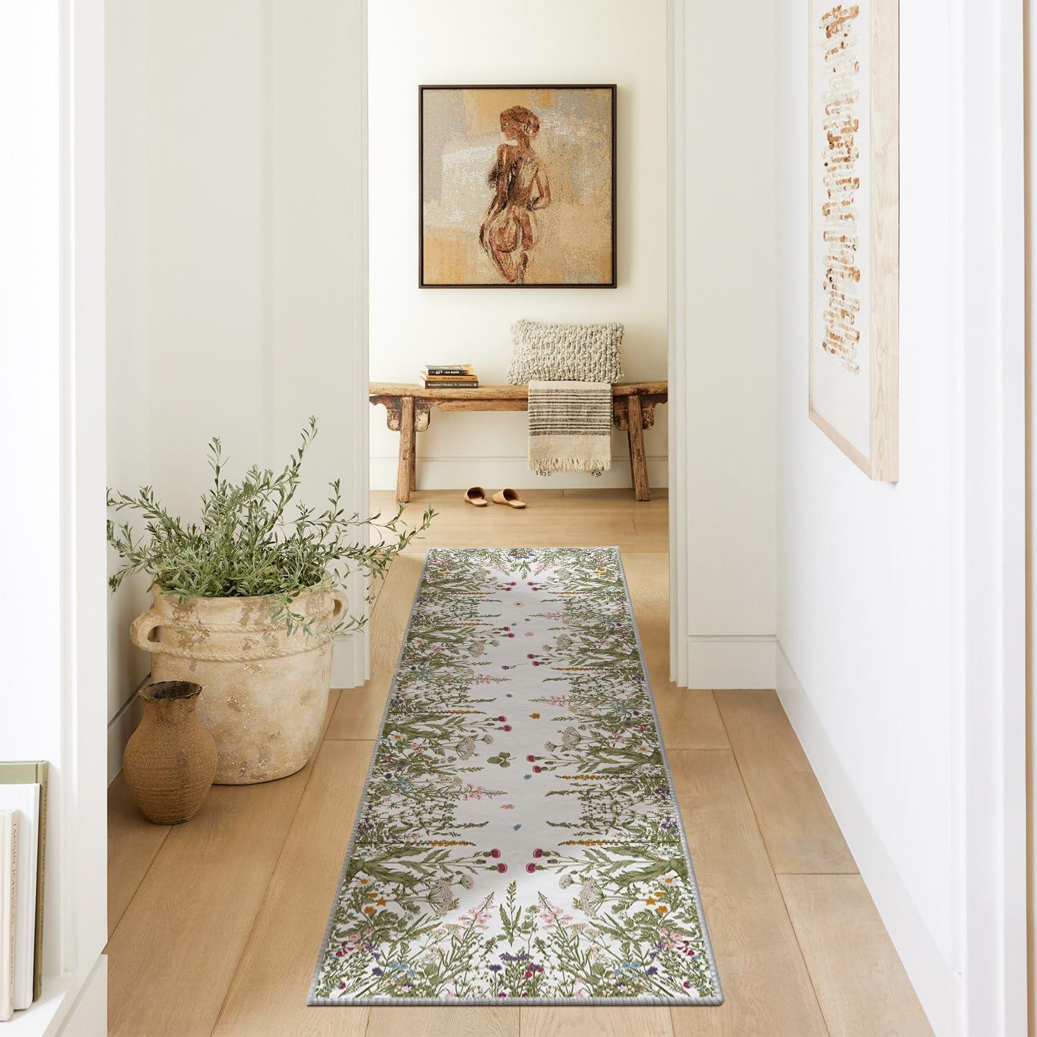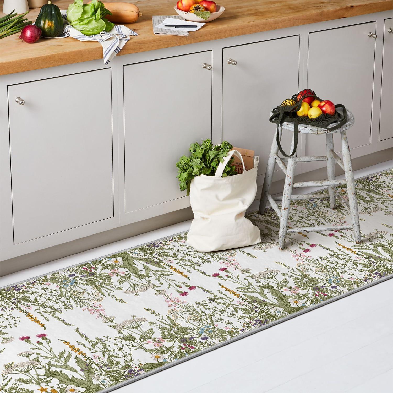 Artoid Mode Wild Floral Antique Herbs Area Rug, Home Decor Low-Profile Area Rugs for Entryway Bedroom Living Room Laundry Room Indoor 5×7 Feet(Wildflower-2)