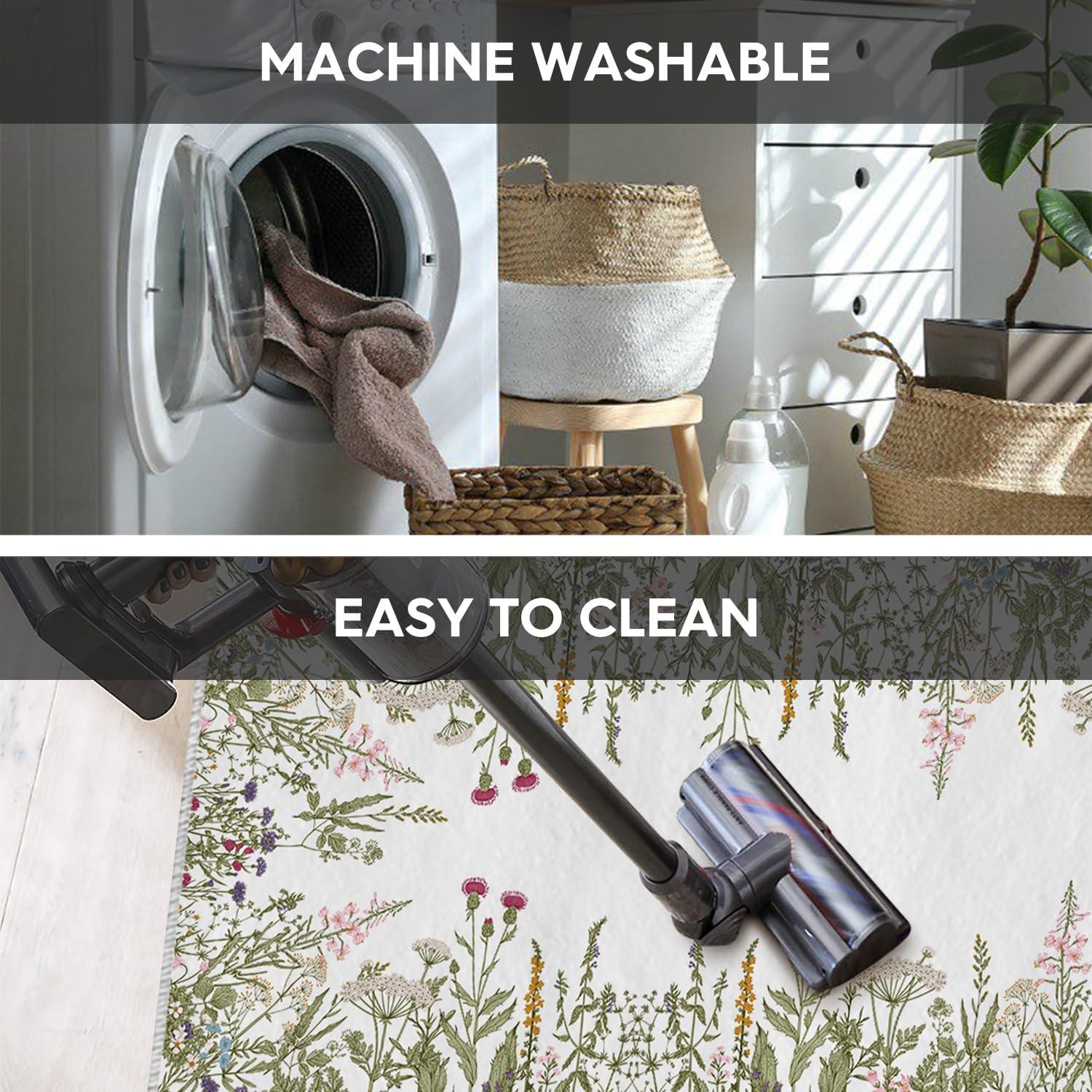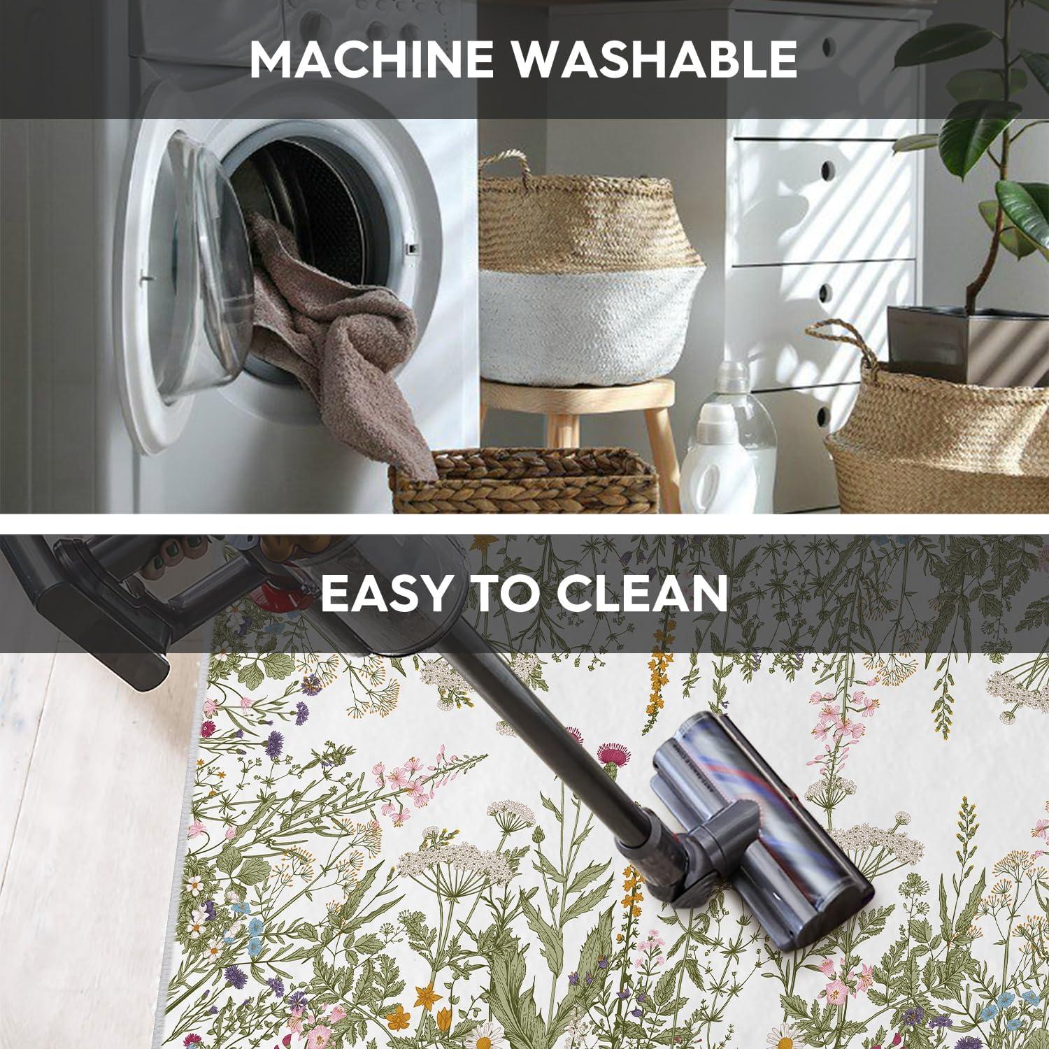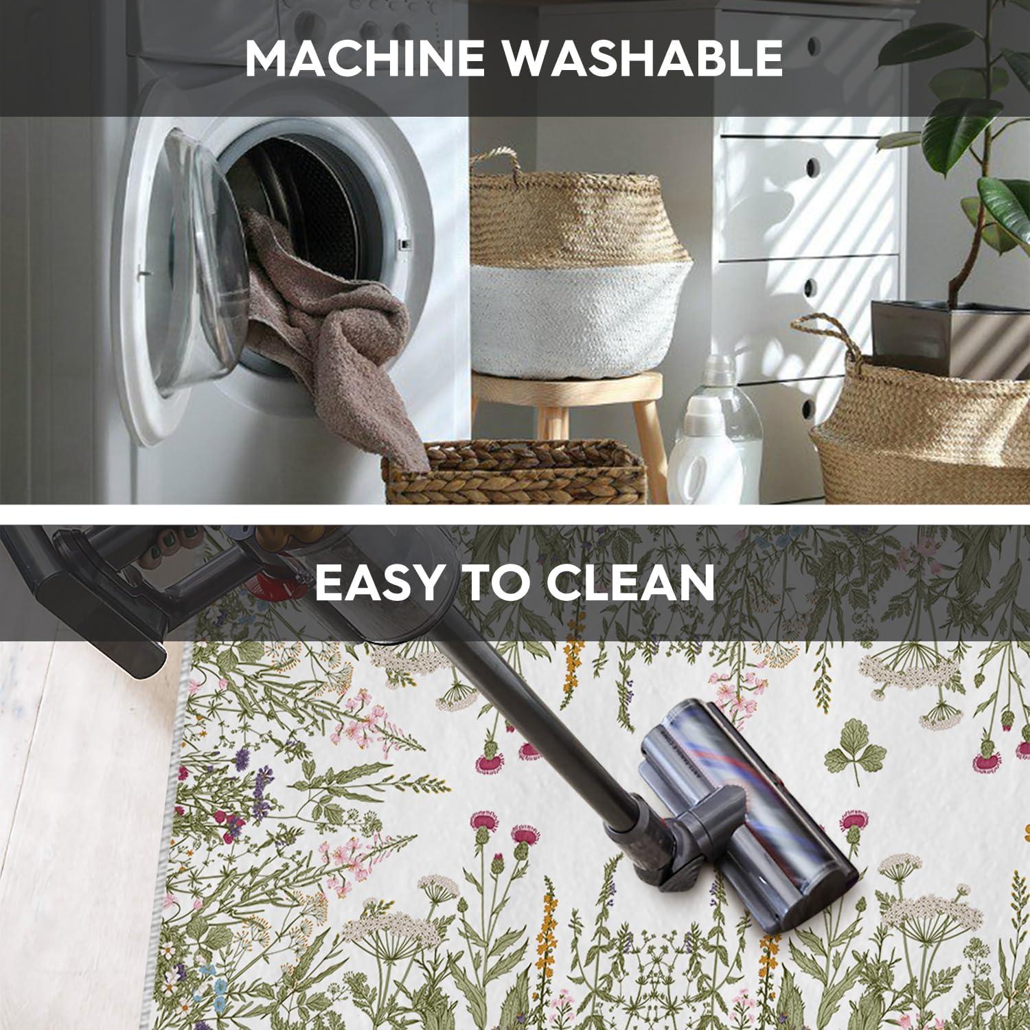 AREA RUGS WASHABLE:The washing machine and vacuum cleaner is friendly to these area rug. Rugs are quick and easy to clean and maintain which is durable, just regular vacuuming and gently blotting out minor stains with a mild detergent or carpet cleaner. A clean rug for living room can be obtained without taking a long time.