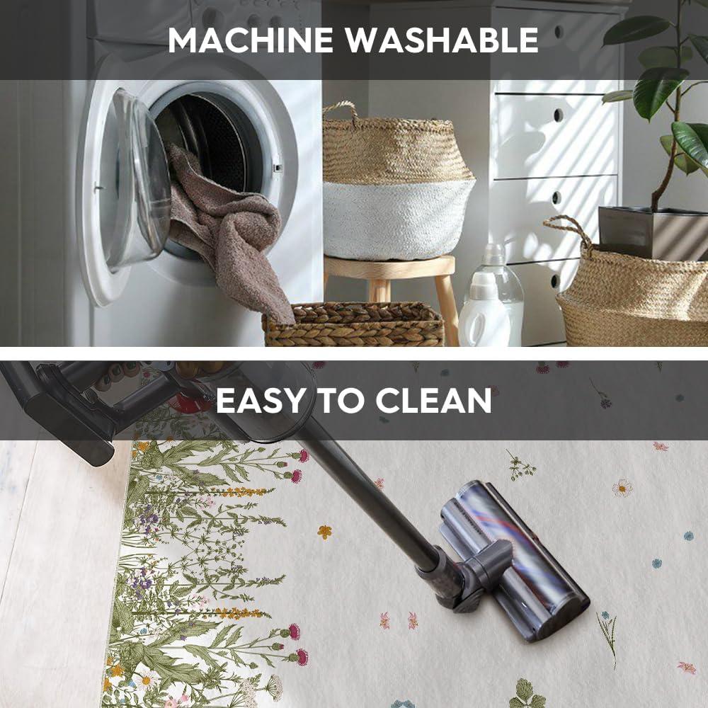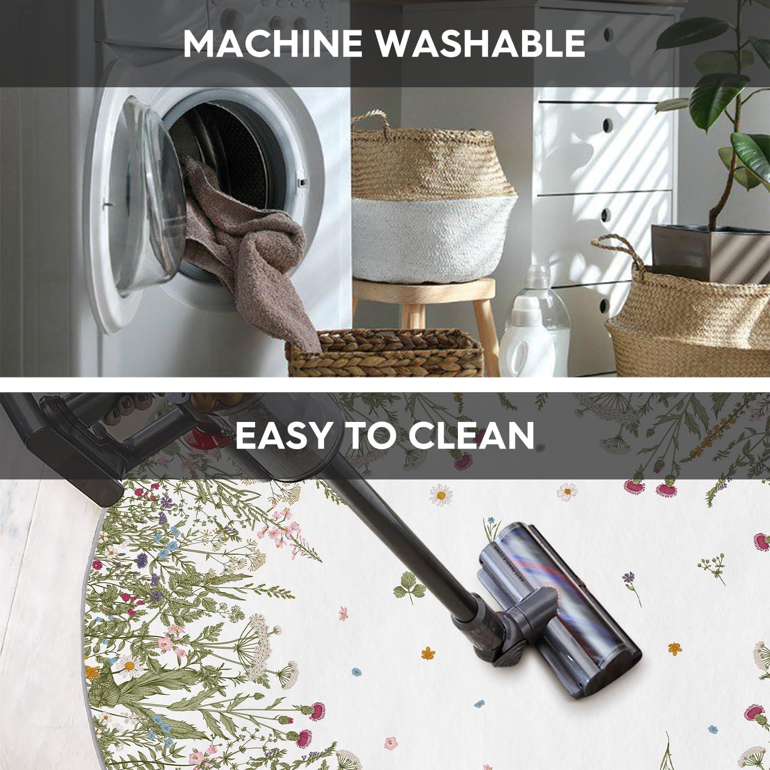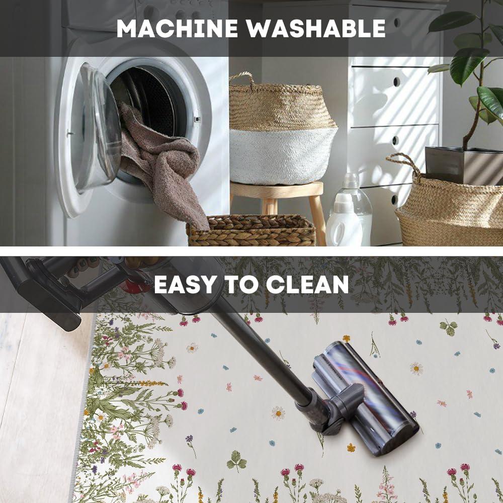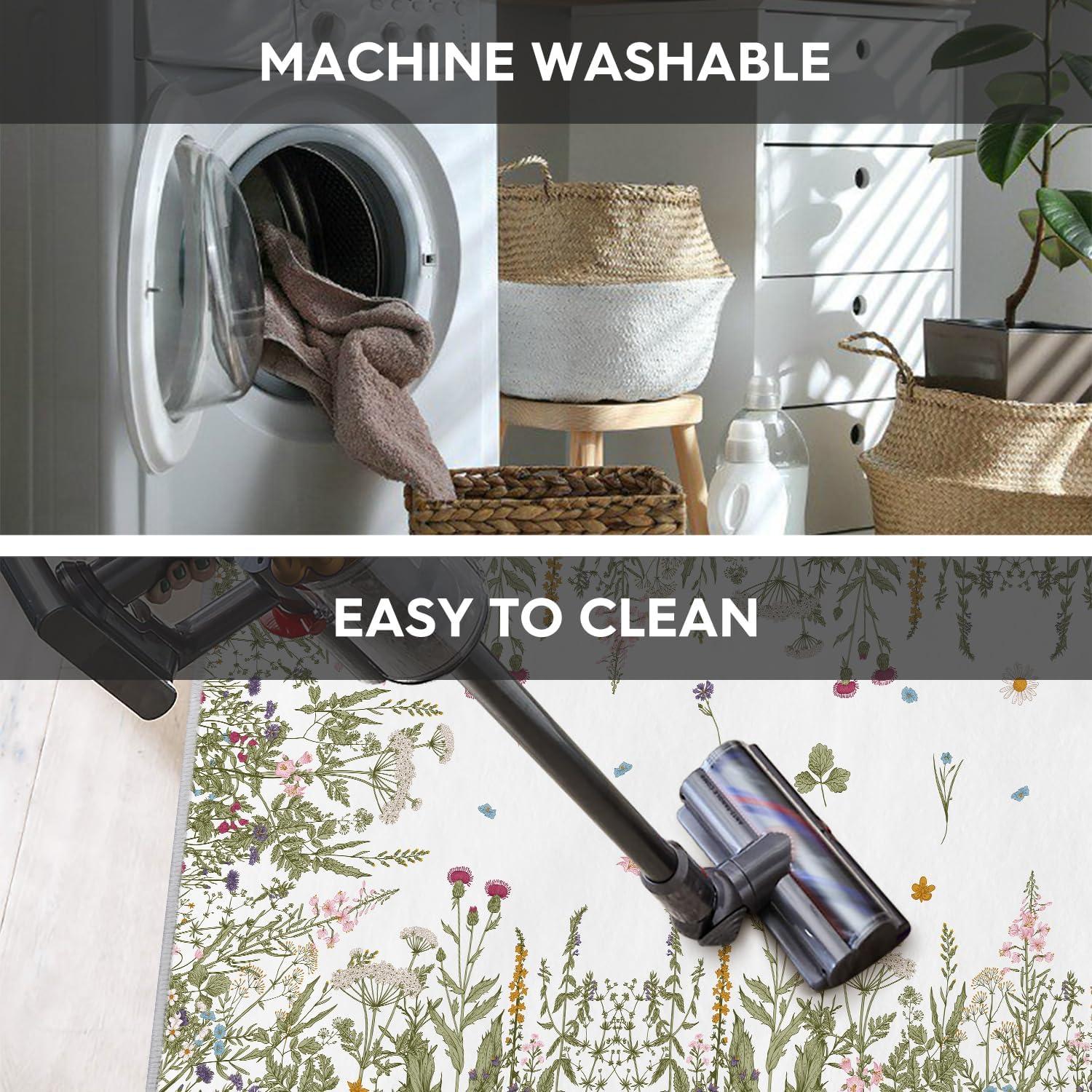 AREA RUGS WASHABLE:The washing machine and vacuum cleaner is friendly to these area rug. Rugs are quick and easy to clean and maintain which is durable, just regular vacuuming and gently blotting out minor stains with a mild detergent or carpet cleaner. A clean rug for living room can be obtained without taking a long time.