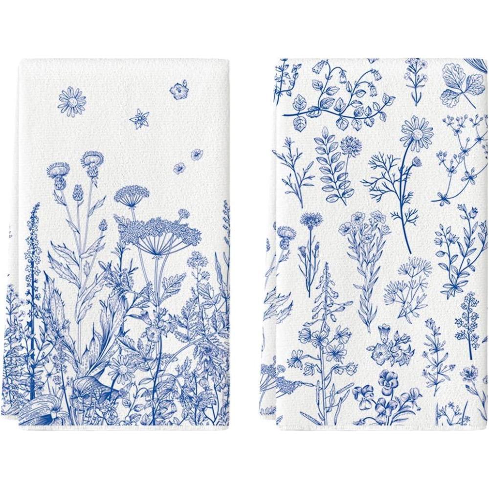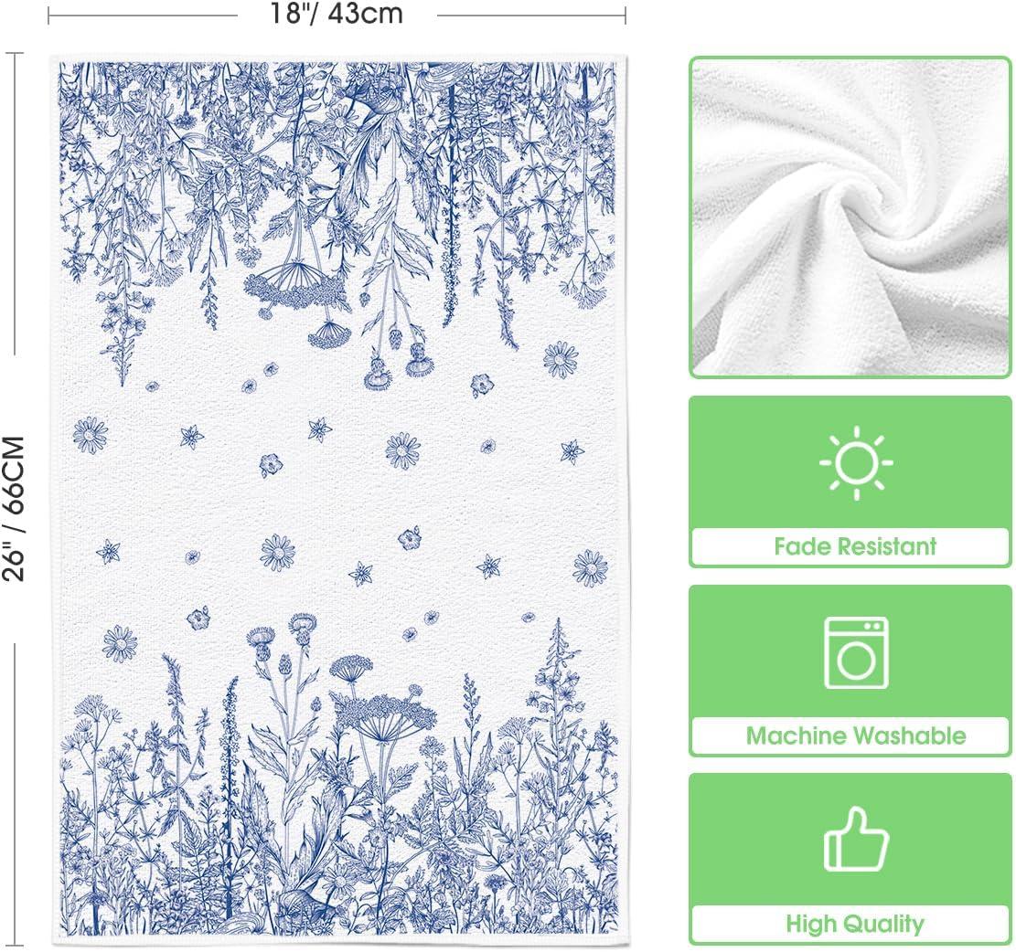 Artoid Mode Wildflower Floral Kitchen Towels Dish Towels, 18×26 Inch Leaves Holiday Decoration Hand Towels Set of 2(Blue)