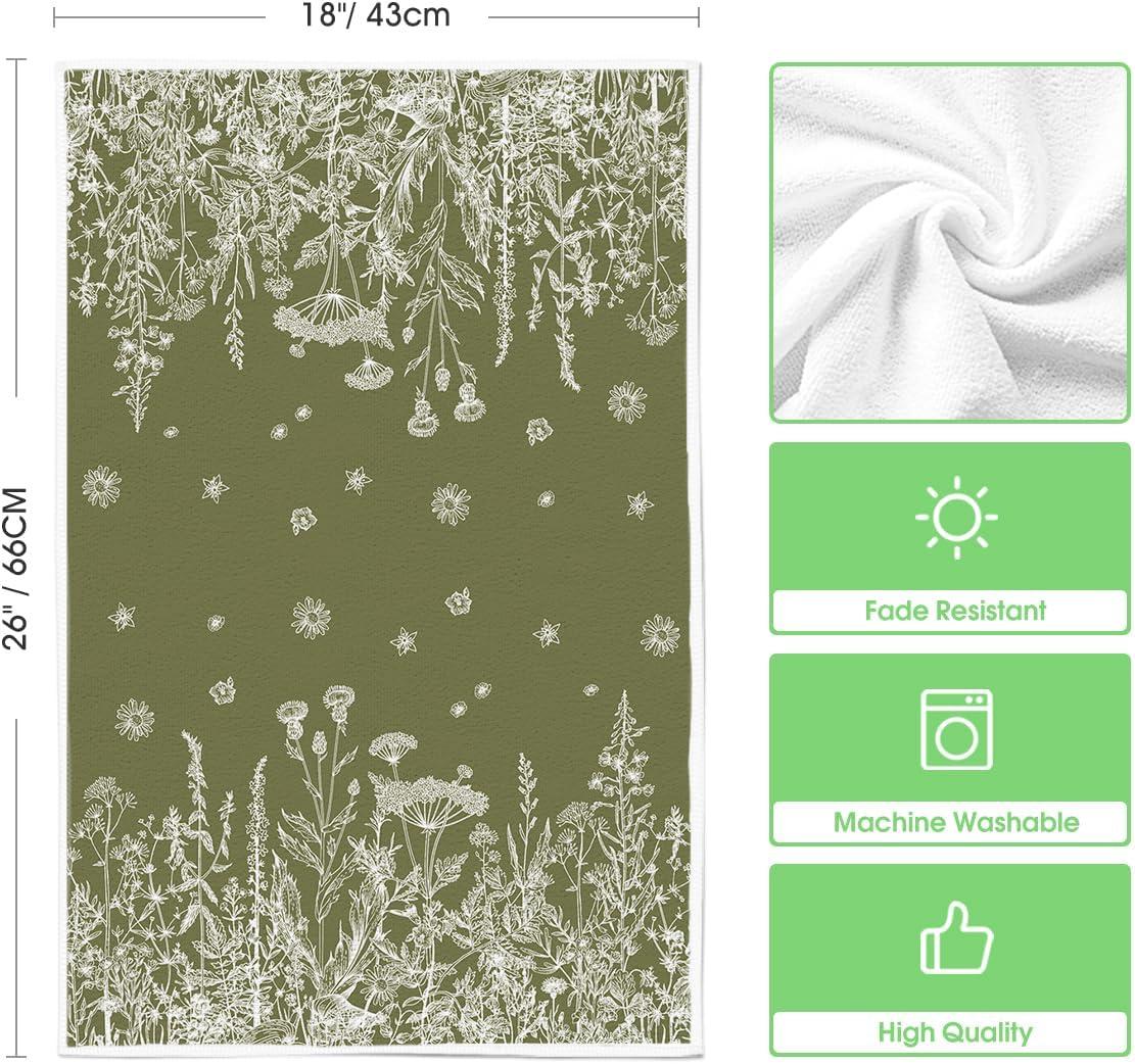 Artoid Mode Wildflower Floral Kitchen Towels Dish Towels, 18×26 Inch Leaves Holiday Decoration Hand Towels Set of 2(Green)