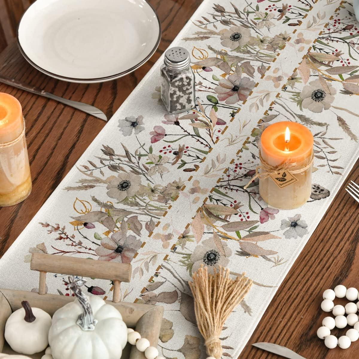 Artoid Mode Wildflower Leaves Floral Fall Table Runner, Autumn Thanksgiving Kitchen Dining Table Decoration for Indoor Outdoor Home Party 13×72 Inch(Brown)