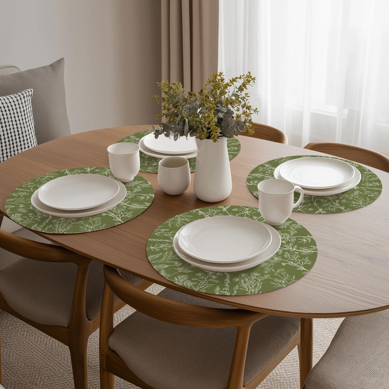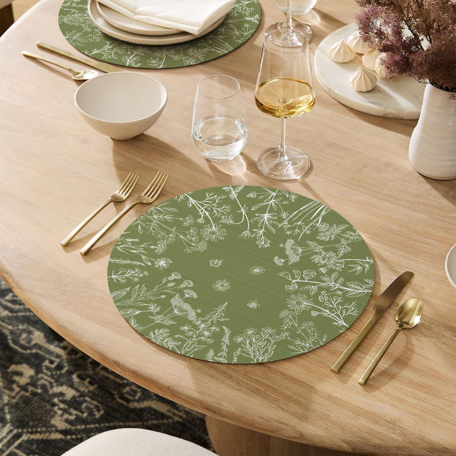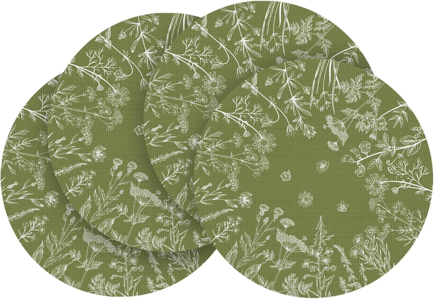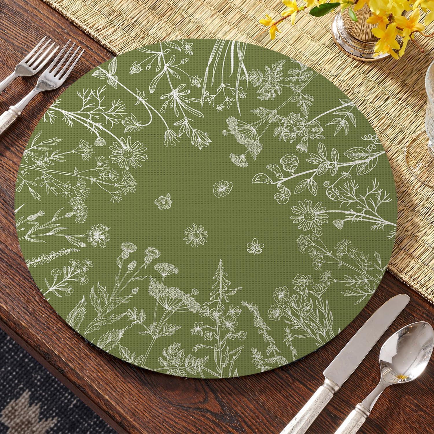 Artoid Mode Wildflower Vinyl Placemats Set of 4, Washable Non-Slip Plastic PVC Table Mats for Spring Party Kitchen Dining Decor, 12×18 Inch(Green)