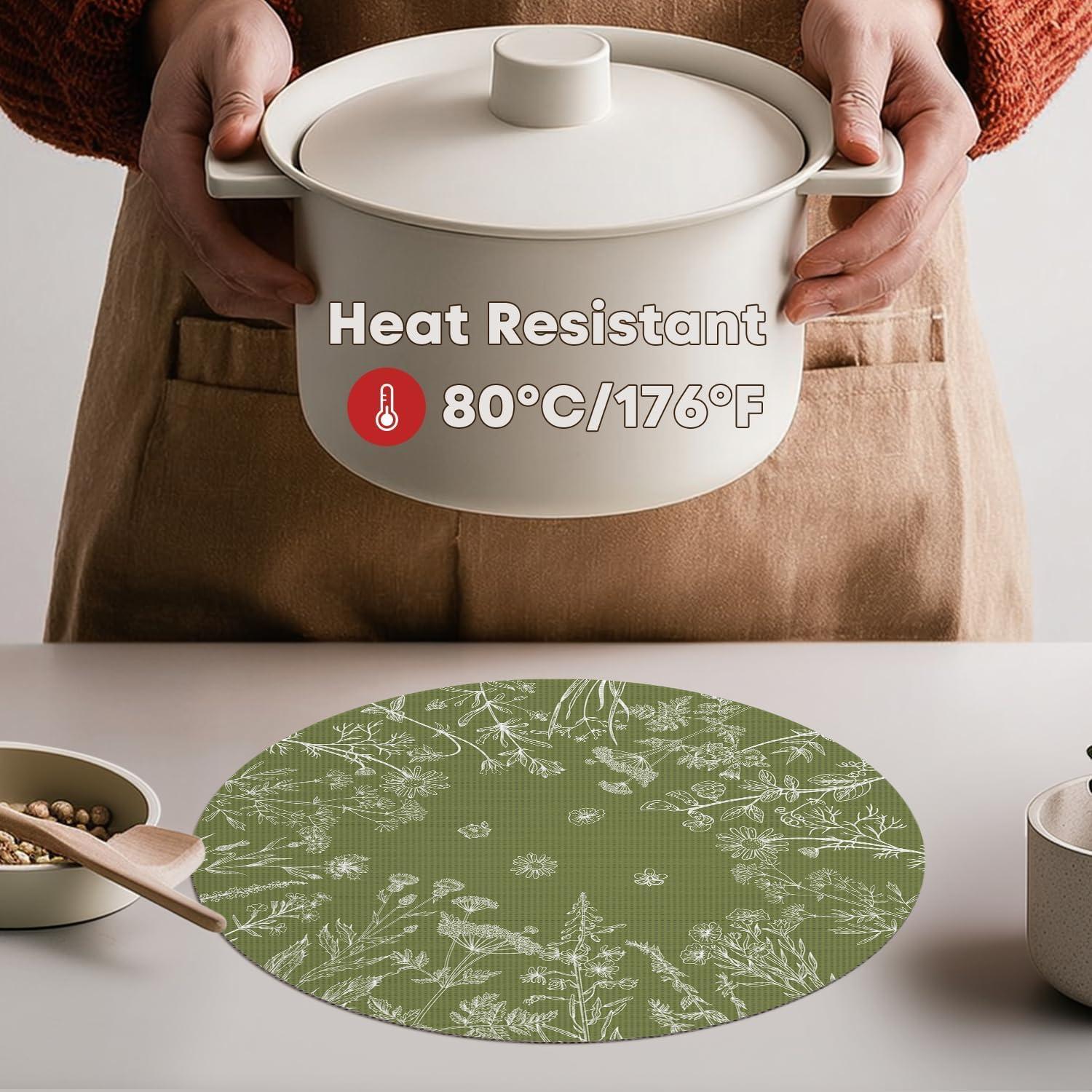 Protect Your Table:The wipeable placemat Heat-resistant up to 176°F (80°C), perfect to protect your dining table from food stains and burns