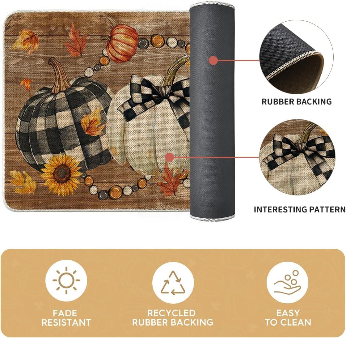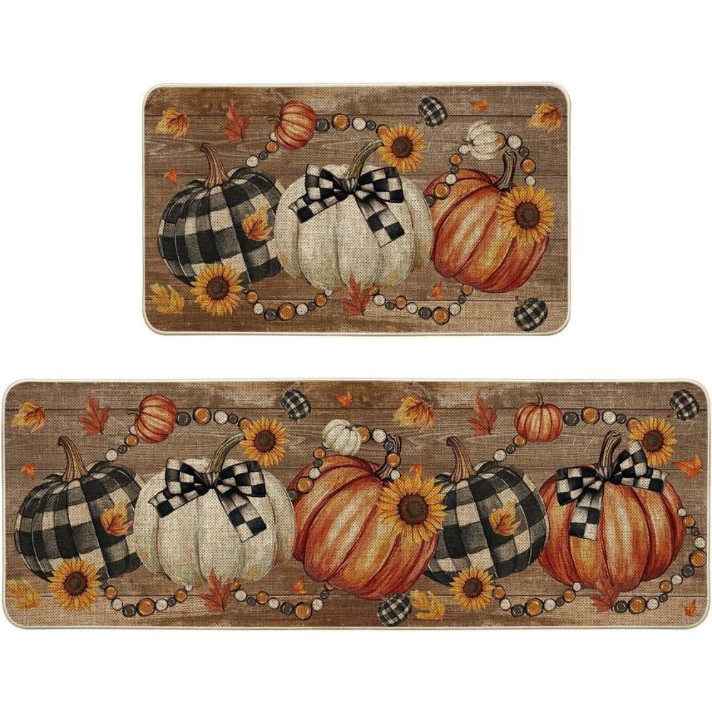Artoid Mode Wood Beads Pumpkin Sunflower Fall Kitchen Mats Set of 2, Autumn Home Decor Low-Profile Kitchen Rugs for Floor – 17×29 and 17×47 Inch