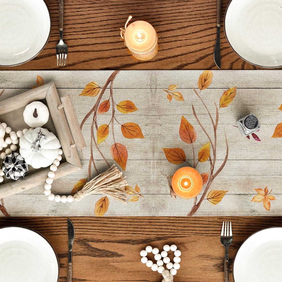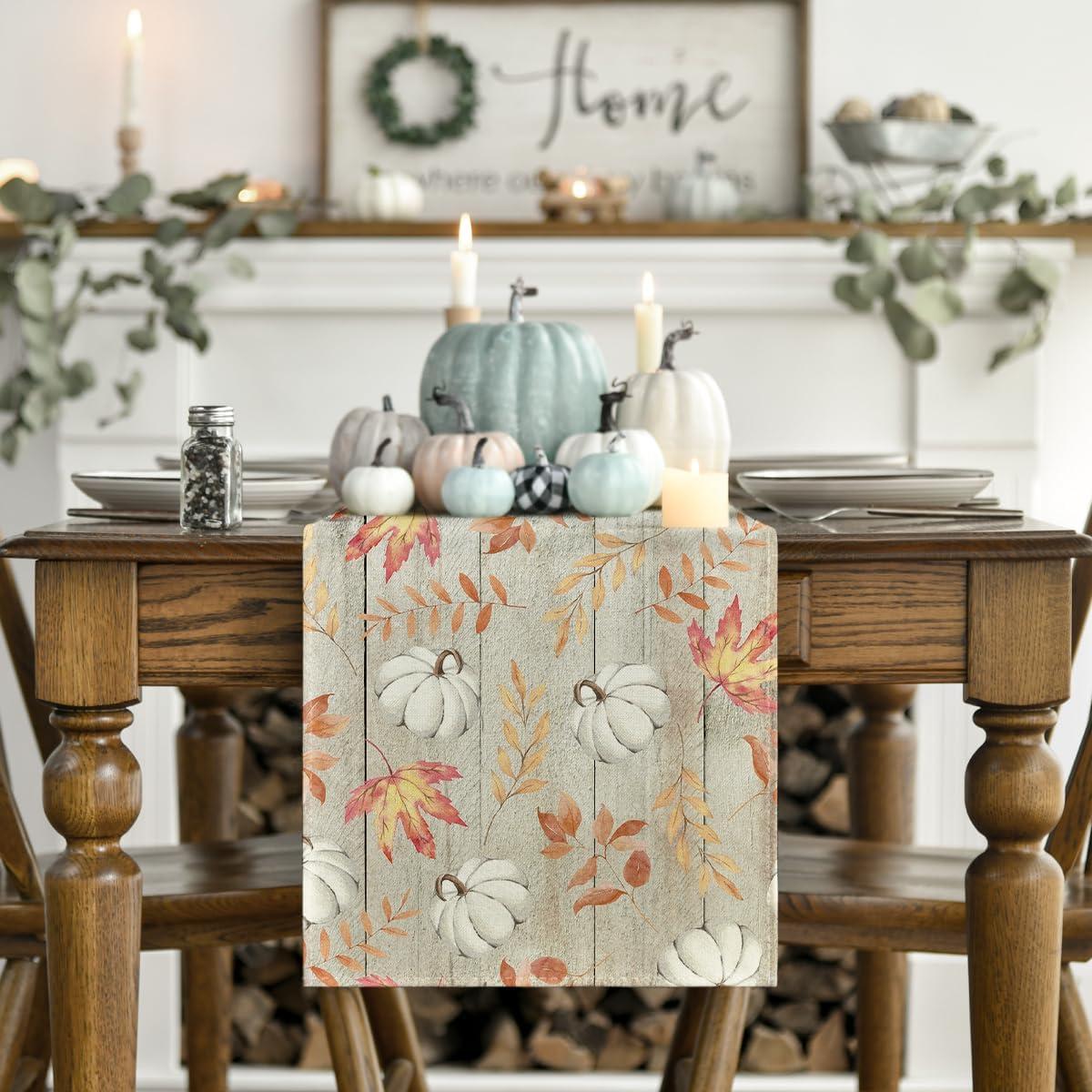 Artoid Mode Wood Gnomes Pumpkins Sunflower Leaves Fall Table Runner, Seasonal Autumn Kitchen Dining Table Decoration for Home Party Decor 13×72 Inch(Wood)
