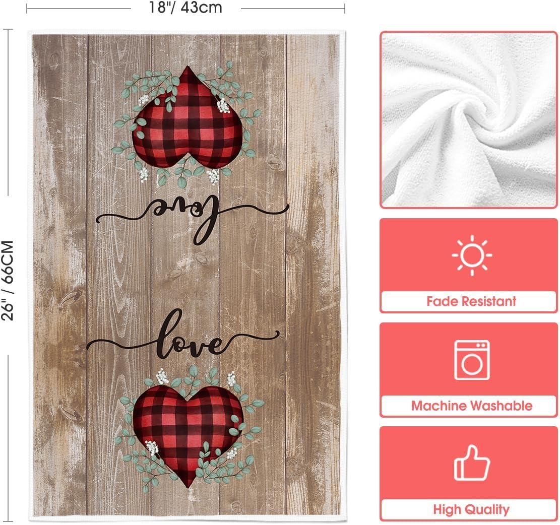 Artoid Mode Wood Heart Love Valentine’s Kitchen Towels Dish Towels, 18×26 Inch Farmhouse Wedding Anniversary Decoration Hand Towels Set of 2(Wood)