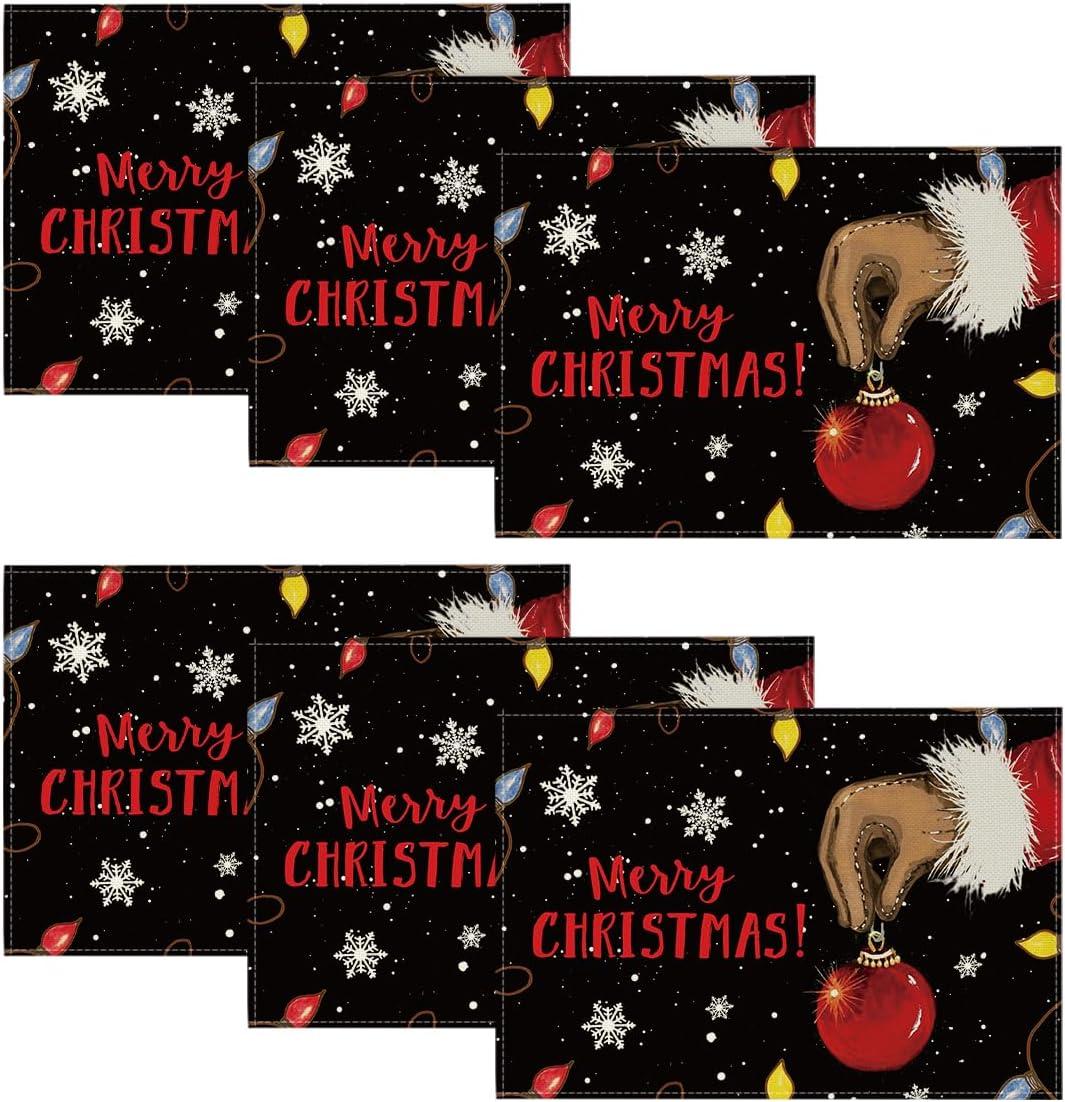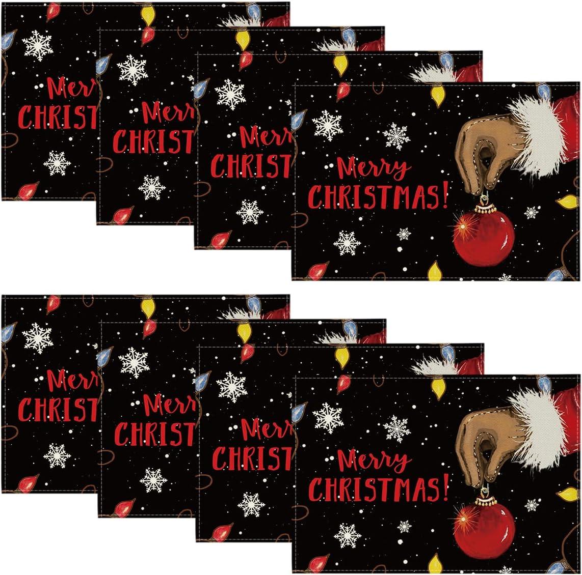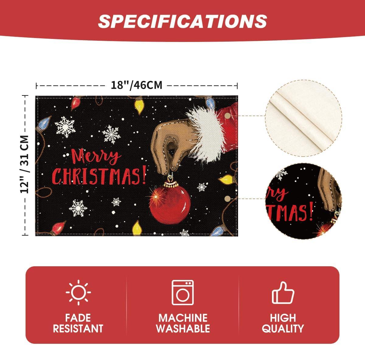 Artoid Mode Xmas Ball Merry Christmas Placemats Set of 4, 12×18 Inch Seasonal Winter Holiday Black Table Mats for Party Kitchen Dining Decoration(Black)