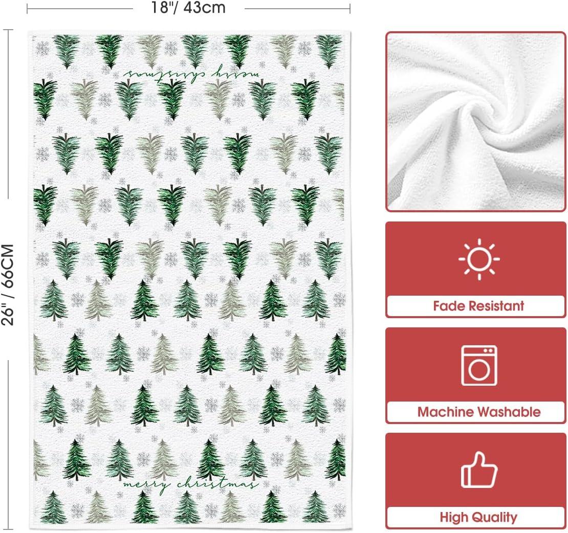Artoid Mode Xmas Tree Christmas Kitchen Towels Dish Towels, 18×26 Inch Farmhouse Snowflakes Holiday Decoration Cleaning Set of 2(Green)
