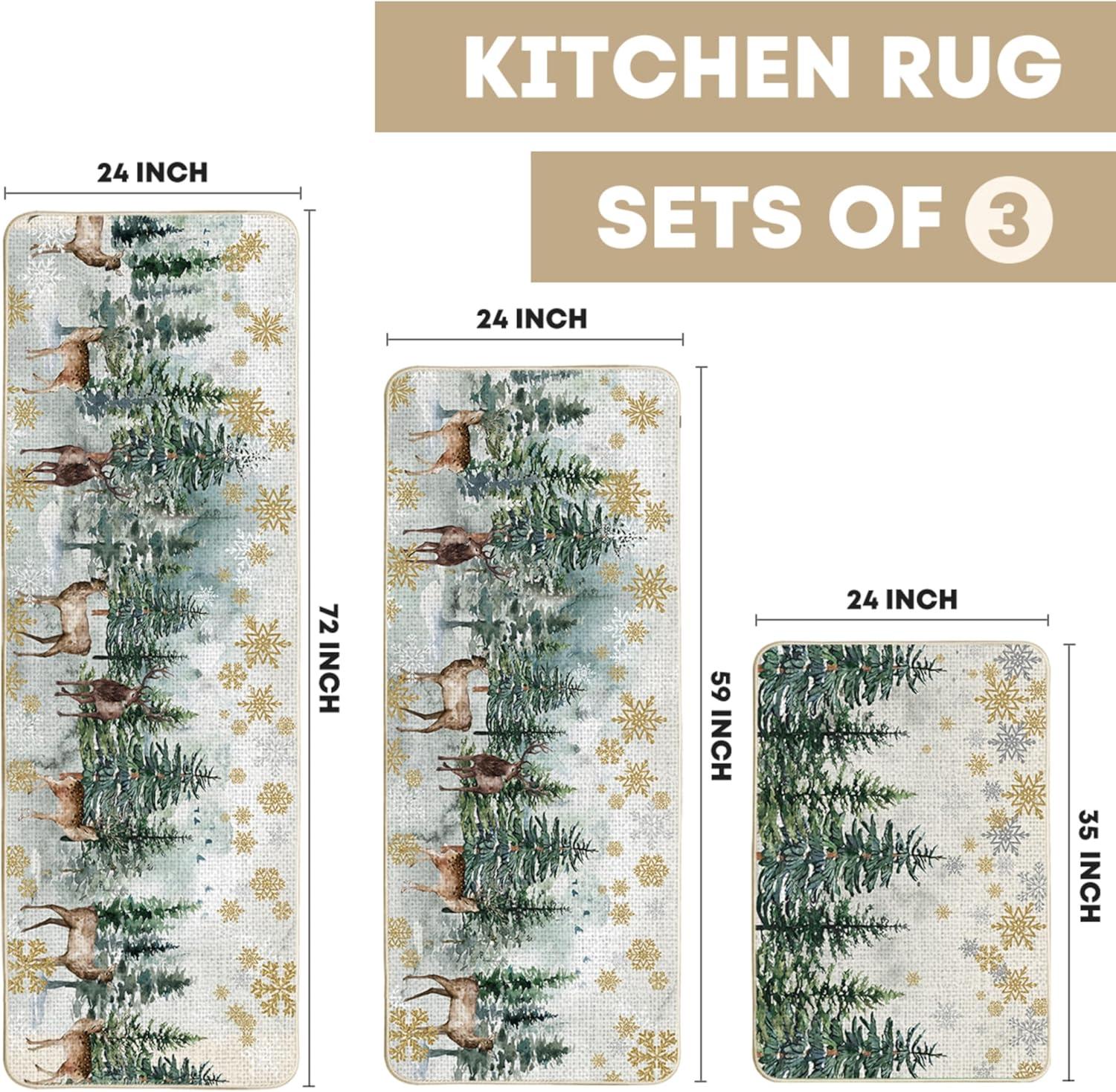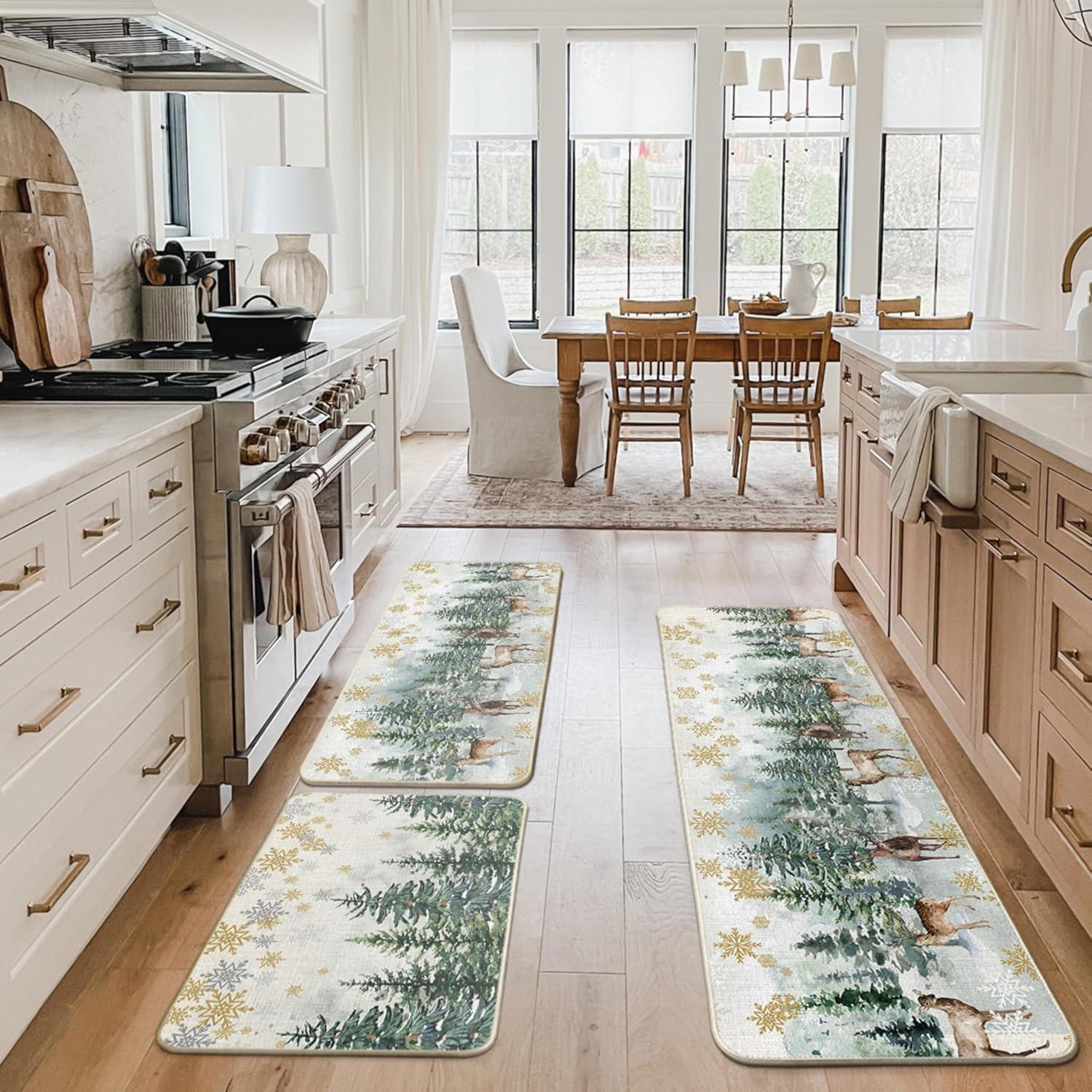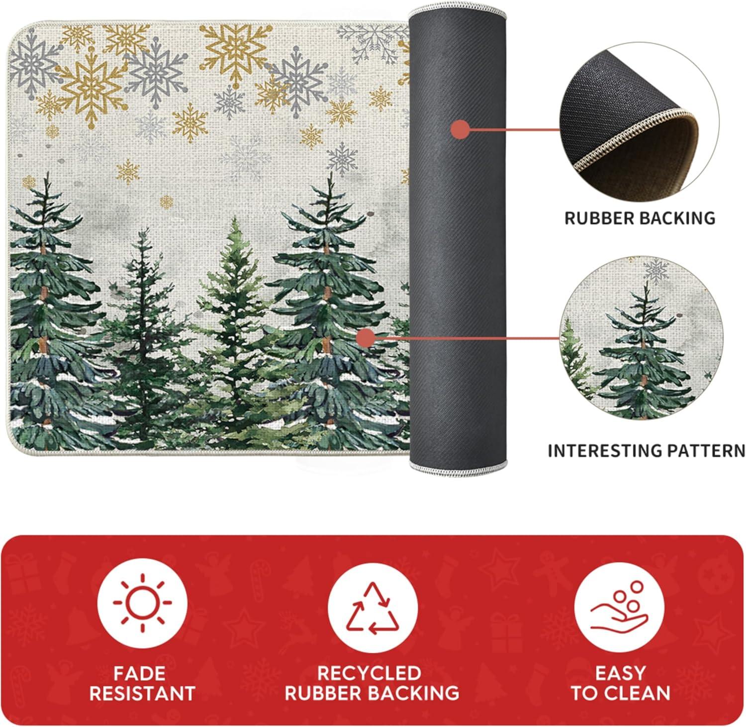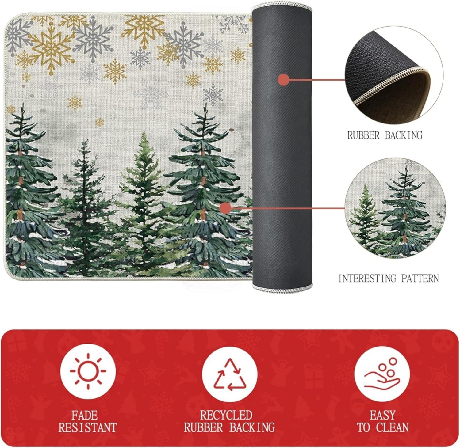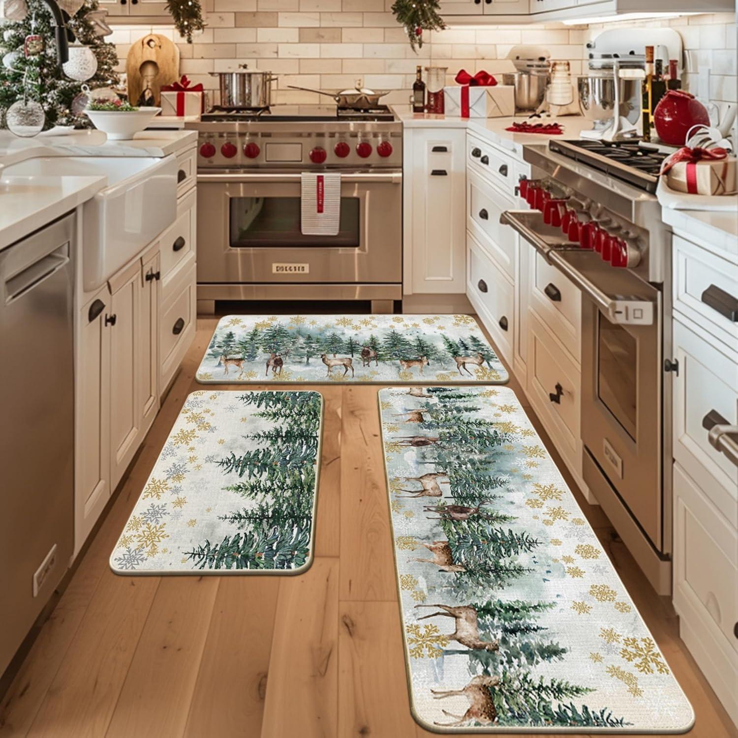 Artoid Mode Xmas Trees Deer Snowflakes Christmas Kitchen Mats Set of 2, Winter Home Decor Low-Profile Kitchen Rugs for Floor – 17×29 and 17×47 Inch(Green)