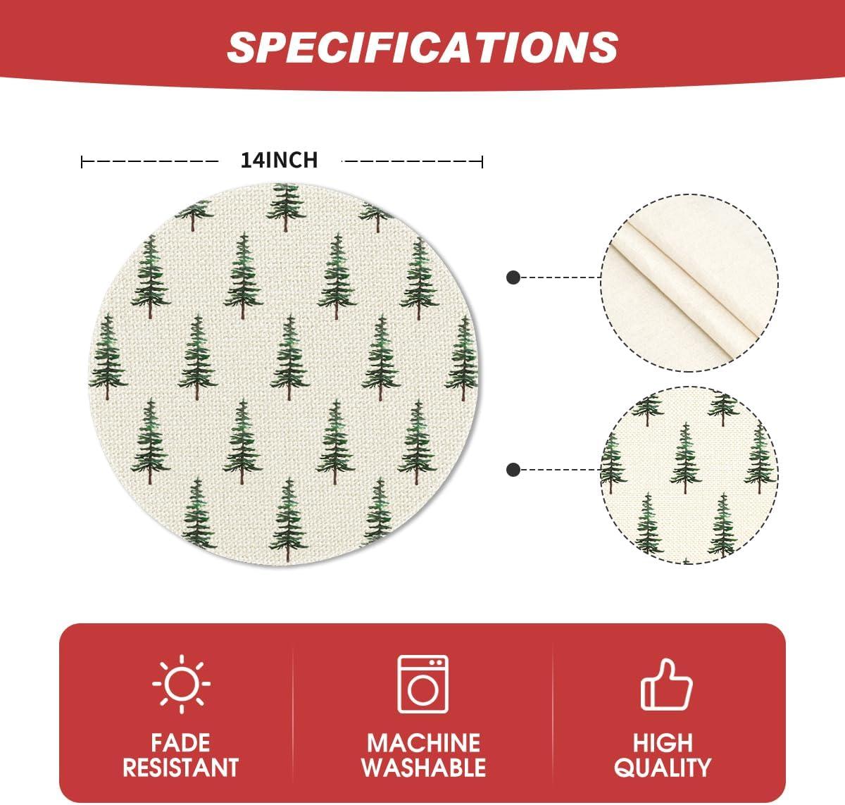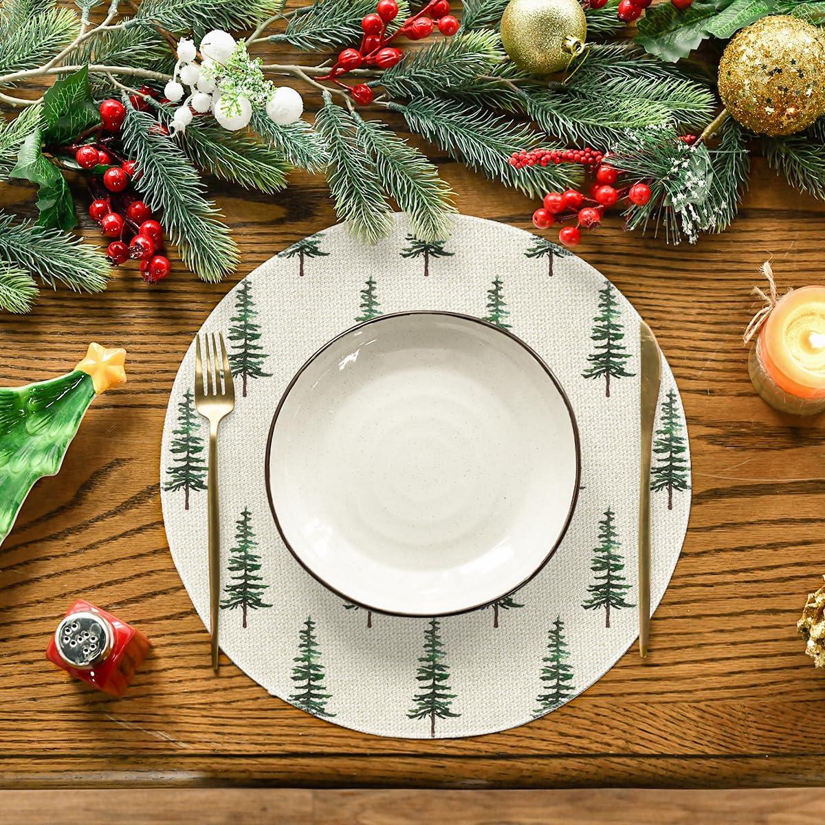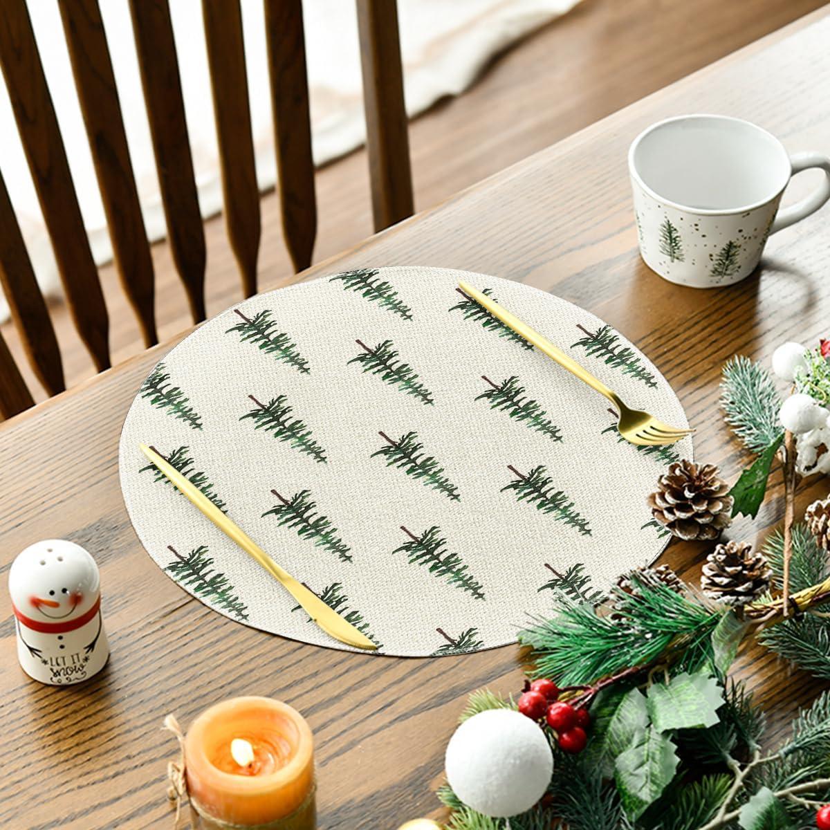 Artoid Mode Xmas Trees Merry Christmas Round Placemats Set of 4, 14 Inch Winter Round Table Mats for Dining Decoration(Beige/Green)
