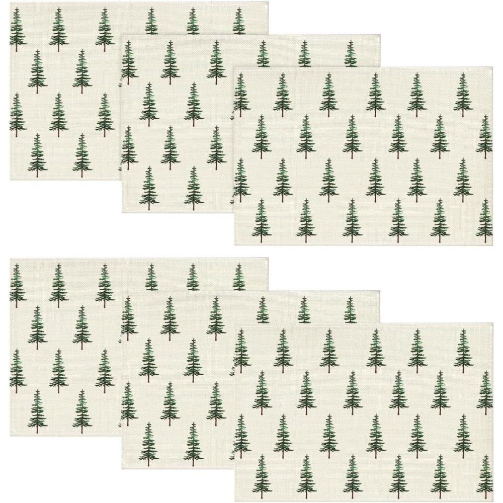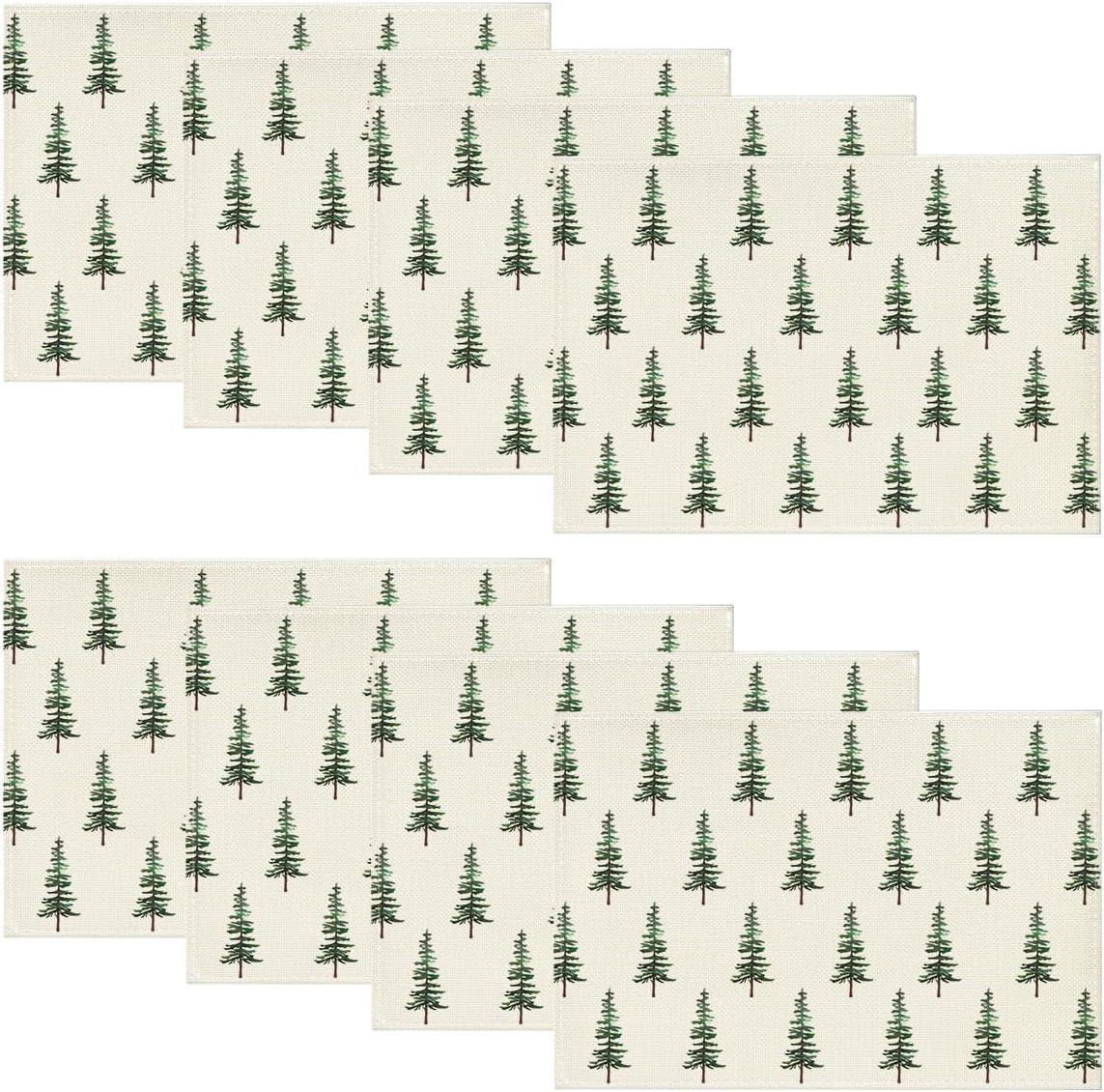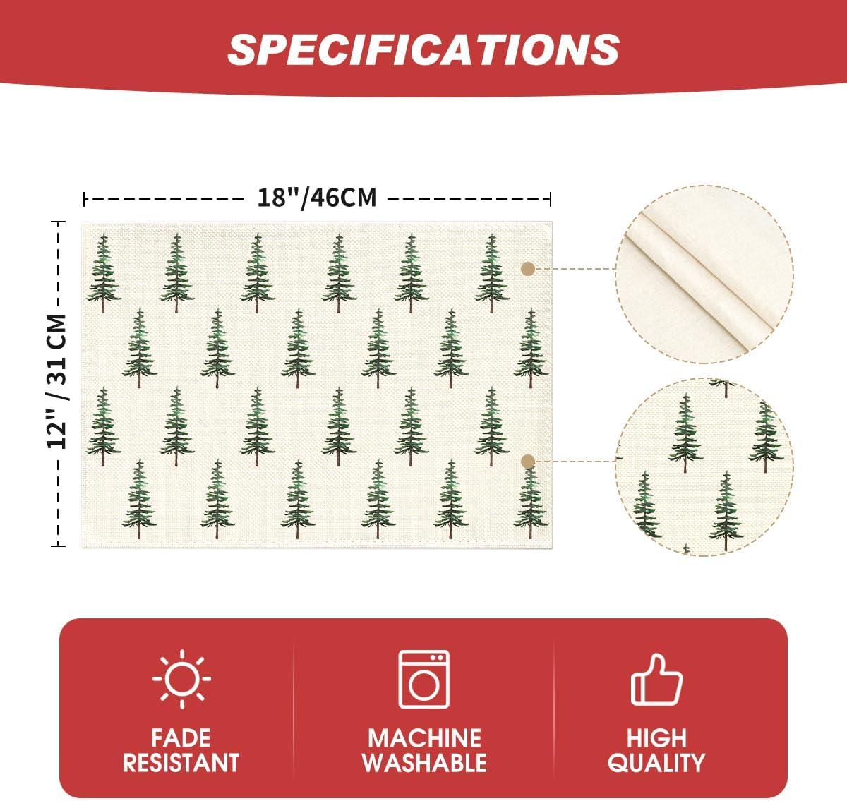 Artoid Mode Xmas Trees Merry Christmas Round Placemats Set of 4, 14 Inch Winter Round Table Mats for Dining Decoration(Beige/Green)