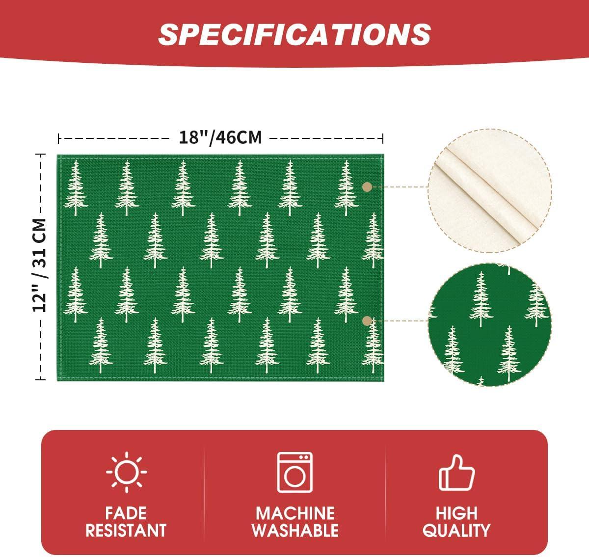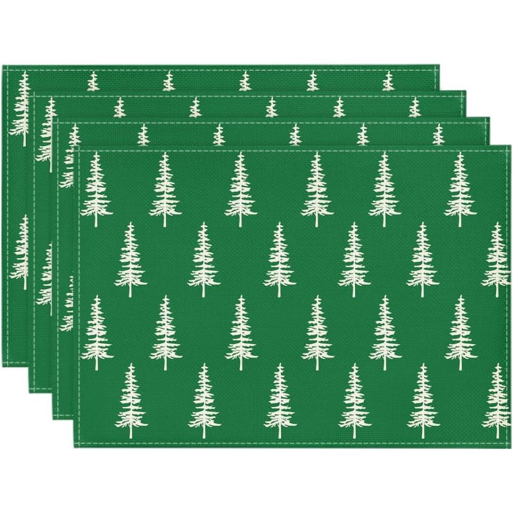 Artoid Mode Xmas Trees Merry Christmas Round Placemats Set of 4, 14 Inch Winter Round Table Mats for Dining Decoration(Green/Beige)