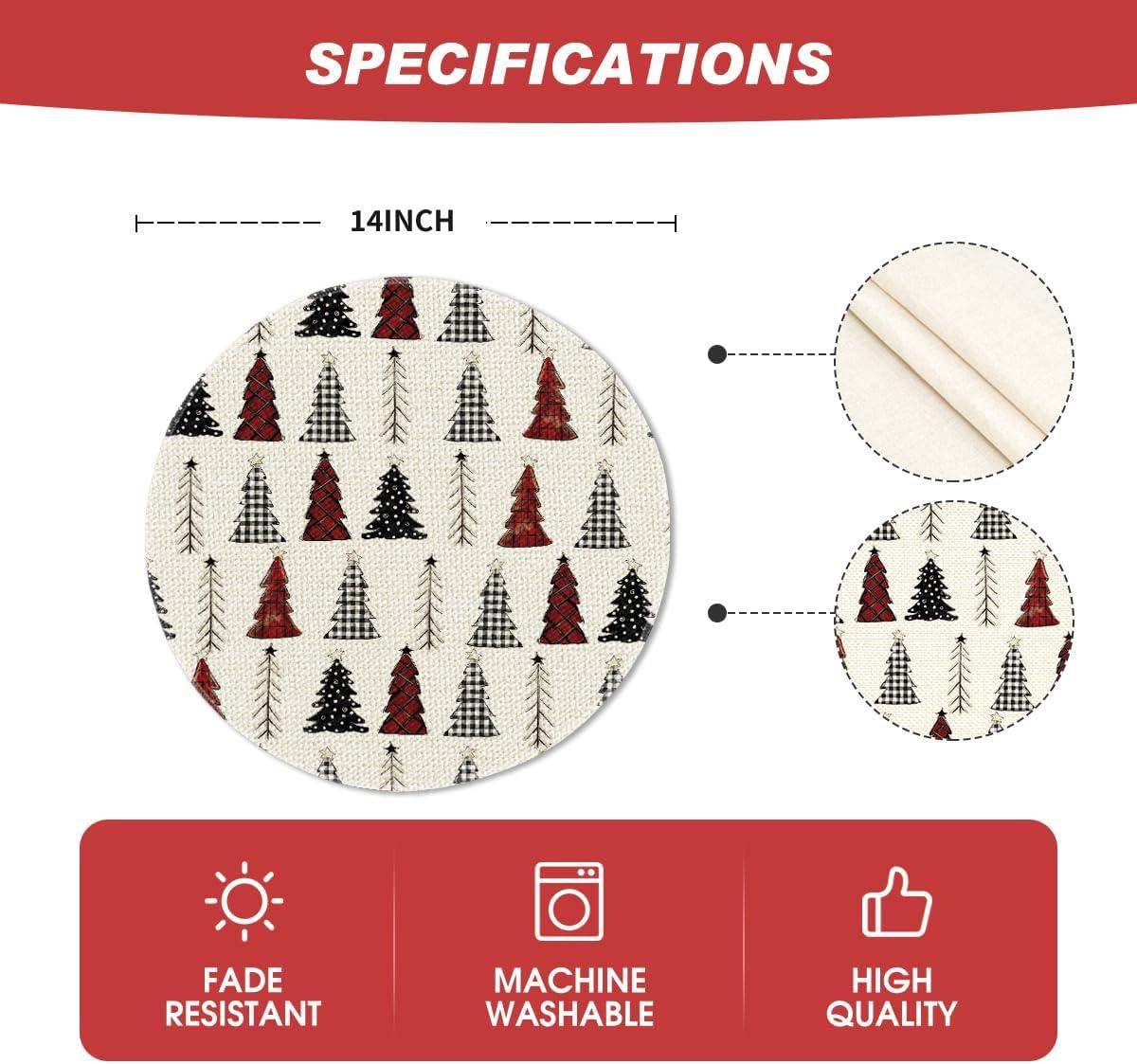 Be the first to review “Artoid Mode Xmas Trees Merry Christmas Round Placemats Set of 4, 14 Inch Winter Round Table Mats for Dining Decoration(Red/Beige)”