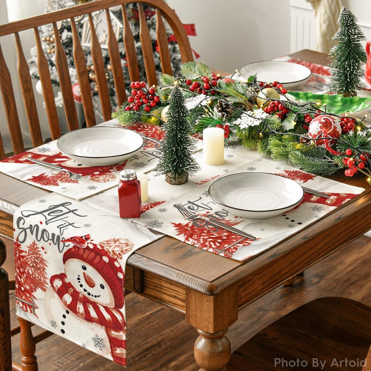 Artoid Mode Red Snowman Let It Snow Winter Placemats Set of 4, 15 Inch Seasonal Christmas Xmas Round Table Mats for Dining Decoration(Red)