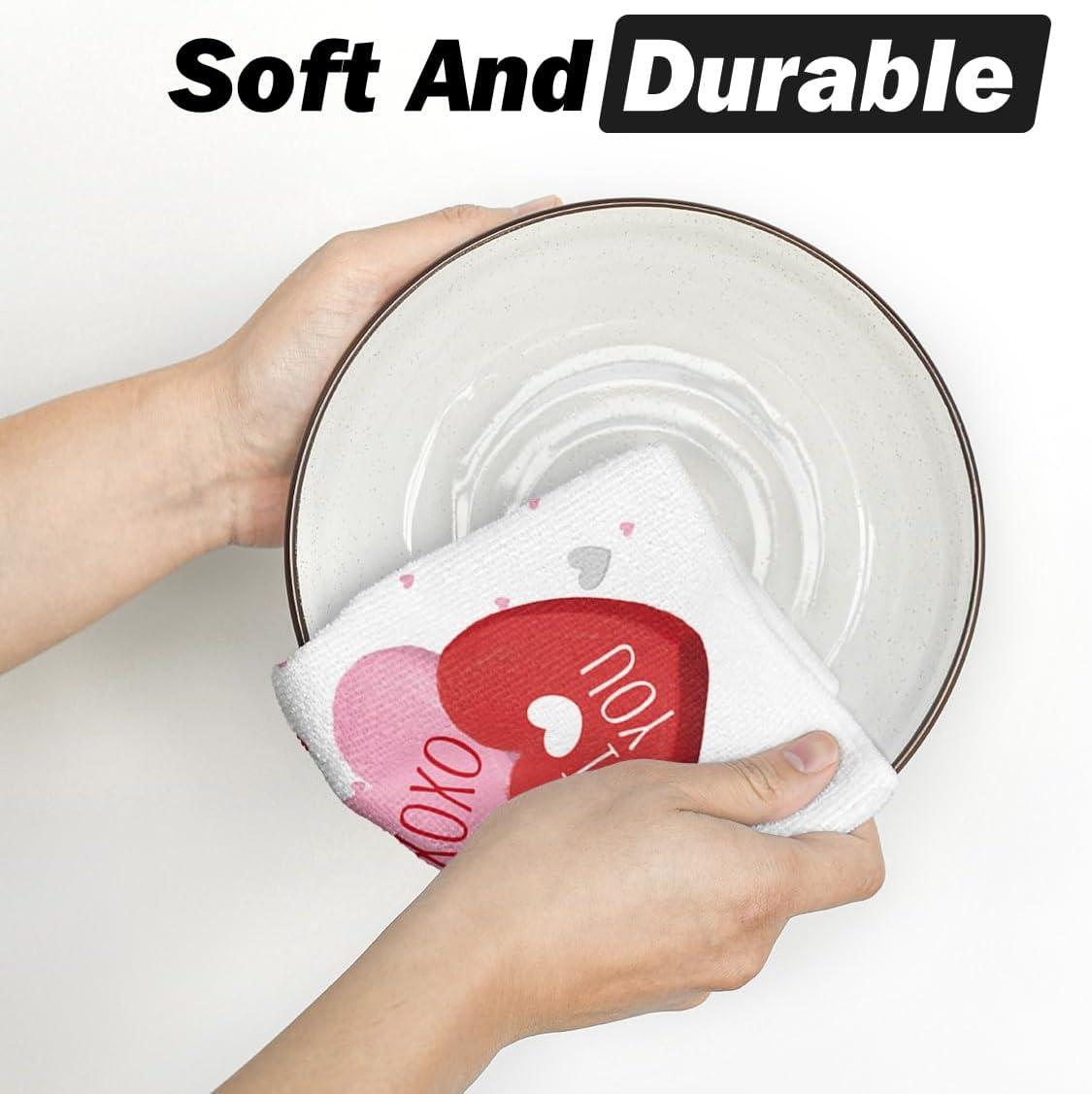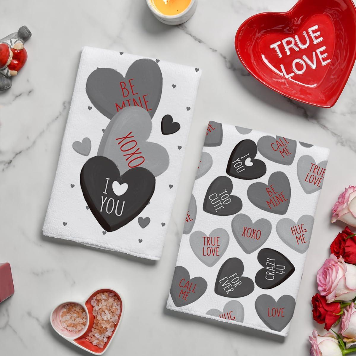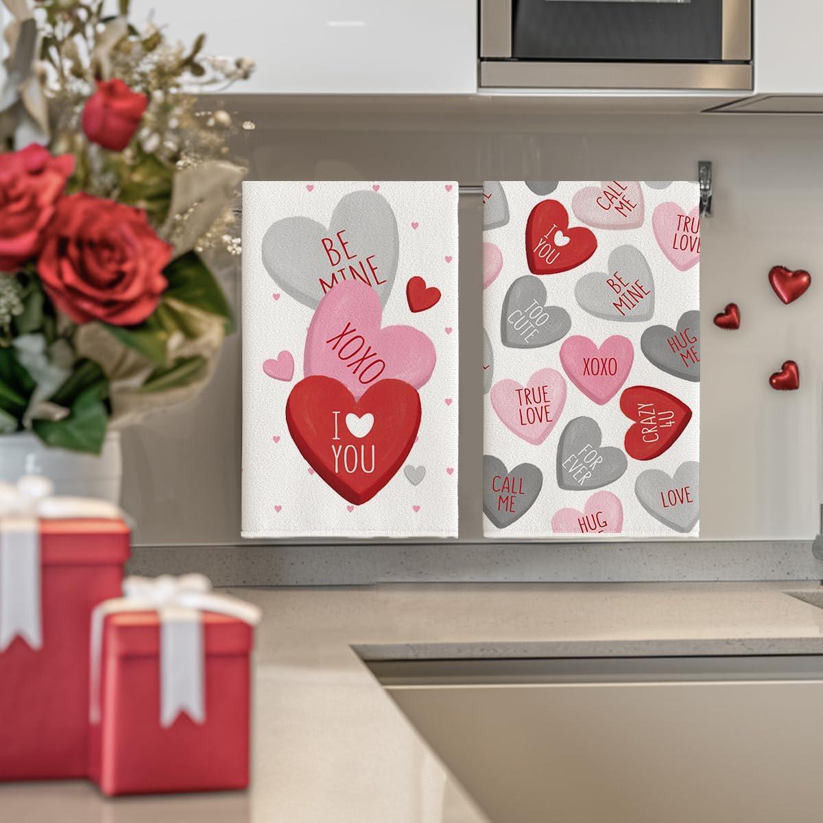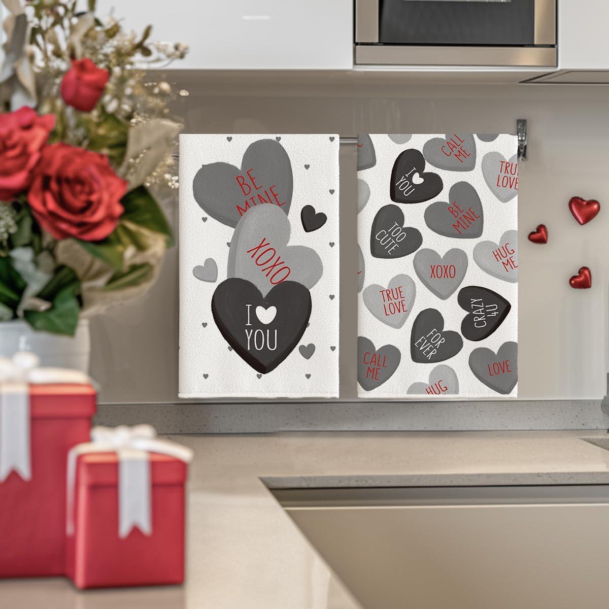 Artoid Mode Pink Heart True Love Forever Valentine’s Kitchen Towels Dish Towels, 18×26 Inch Anniversary Wedding Decoration Hand Towels Set of 2(Red/Grey)