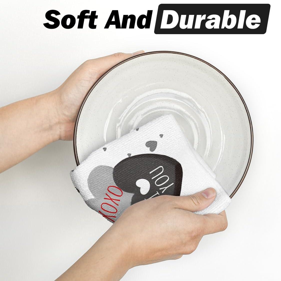 Artoid Mode Pink Heart True Love Forever Valentine’s Kitchen Towels Dish Towels, 18×26 Inch Anniversary Wedding Decoration Hand Towels Set of 2(Black)