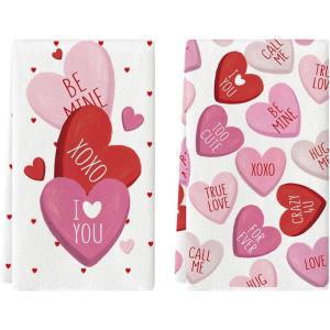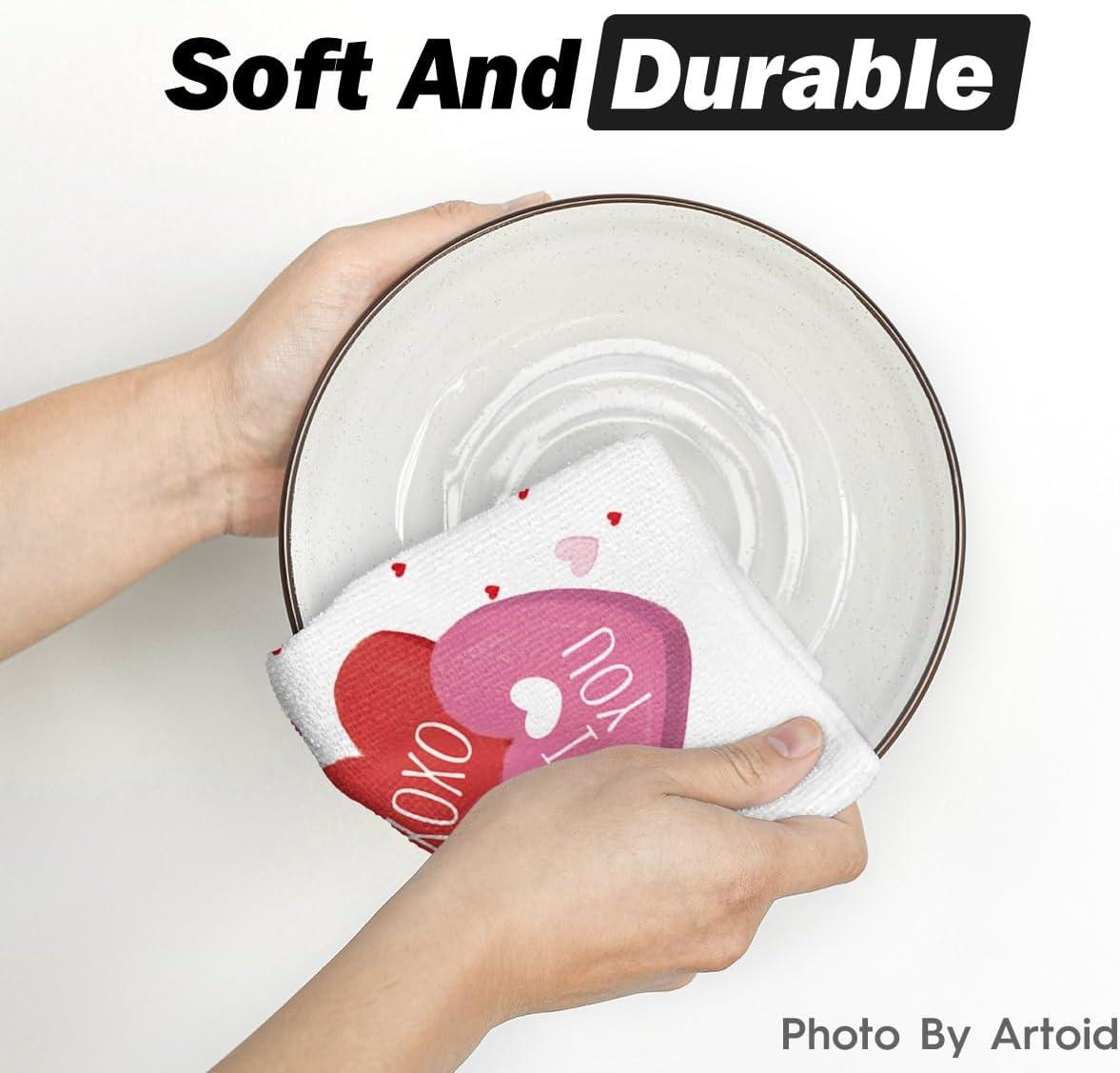 Artoid Mode Pink Heart True Love Forever Valentine’s Kitchen Towels Dish Towels, 18×26 Inch Anniversary Wedding Decoration Hand Towels Set of 2(Red)